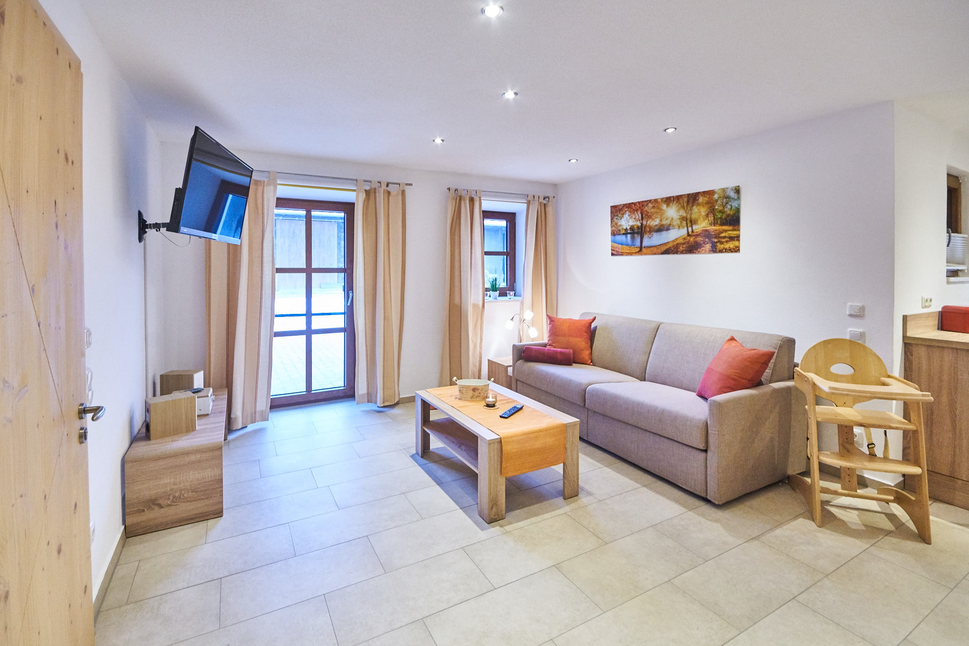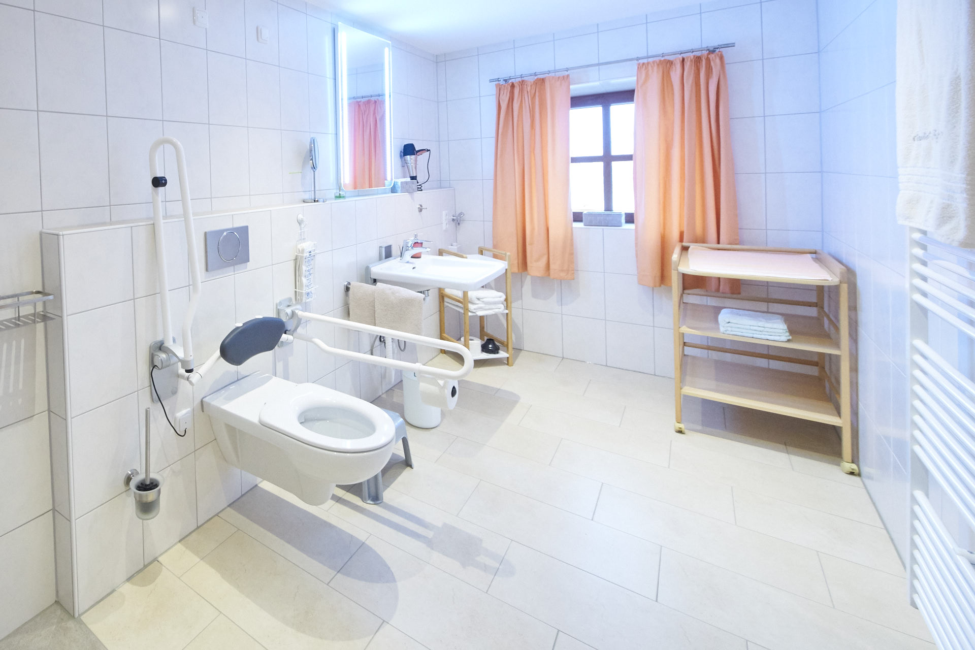 Mit 52 ² ist die barrierefreie Ferienwohnung Oberstadel für 1 bis 4 Personen geeignet. Die modern ausgestattete Ferienwohnung bietet nicht nur ein echtes Wohlfühlambiente, sondern auch alle Annehmlichkeiten die Sie sich für einen entspannten Urlaub in Altötting wünschen. Beim Neubau unserer Ferienwohnung haben wir auf eine barrierefreie Einrichtung geachtet. Konkret bedeutet dies, dass Sie mit dem Auto direkt bis zur Eingangstür der Ferienwohnung fahren können. Die gesamte Wohnung ist schwellenlos und alle Türen weisen eine Breite von 90 cm auf, damit Sie mit dem Rollstuhl bequem und ohne Stolpersteine alle Bereiche erreichen. Im Badezimmer sorgen eine befahrbare, schwellenlose Dusche mit 1,2 x 1,2 m Größe, Haltegriffen und Duschstuhl für einen hohen Komfort. Das Waschbecken ist unterfahrbar und auch die Höhe können Sie ganz nach Ihren Wünschen einstellen. Das behindertengerechte WC verfügt über Halterungen und einer Spülung direkt am Haltegriff. Auch der 1 m hohe Spiegel im Badezimmer ist für die Bedürfnisse von Rollstuhlfahrern angepasst.