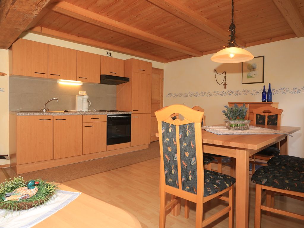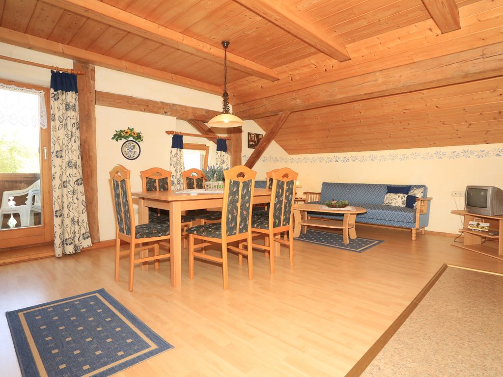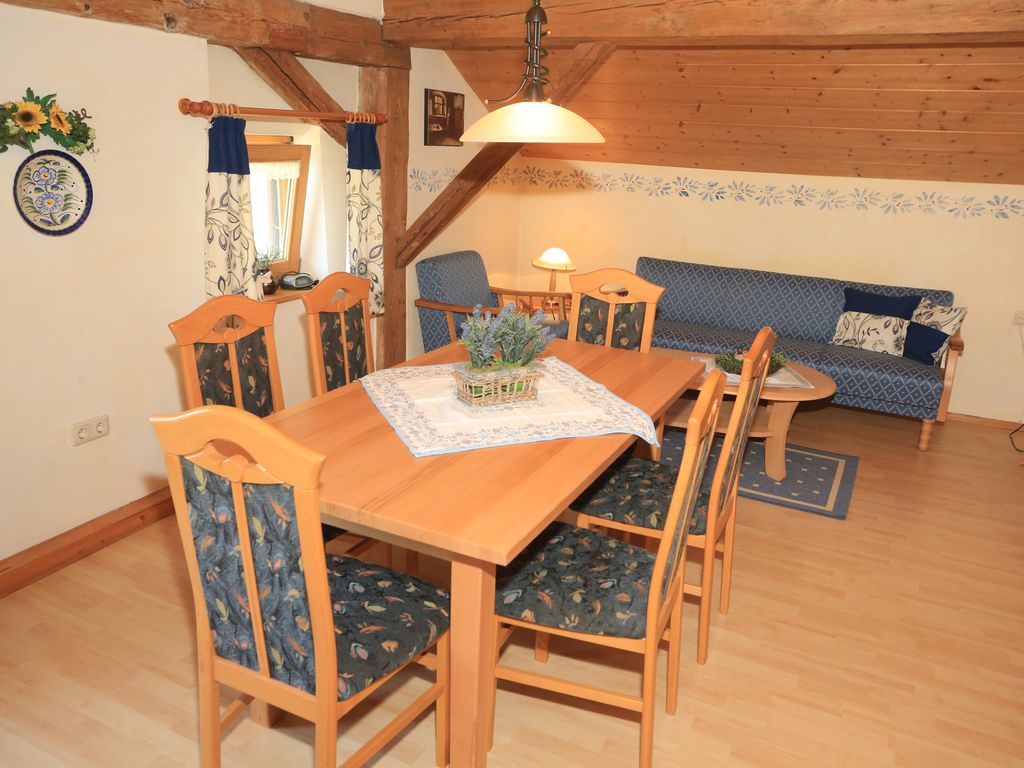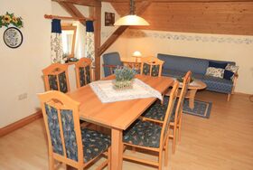 Unsere schöne, große Ferienwohnung befindet sich im Haupthaus und ist gemütlich im ländlichen Stil eingerichtet. Die Wohnung hat 1 Doppelzimmer mit Doppelbett und 1 Doppelzimmer mit 2 Einzelbetten. Die Wohnung ist perfekt geeignet für Familien mit Kindern. Nach einem erlebnisreichen Urlaubstag sorgen eine sonnigen Liegewiese mit Liegestühlen oder unsere Sauna mit Solarium für Wohlbefinden und Entspannung. Für unsere ganz kleinen Gäste stellen wir kostenlos unsere Kinderausstattung zur Verfügung (Kinderbett, Hochstuhl, Wickelauflage, Hocker, Kindertrage etc.).