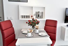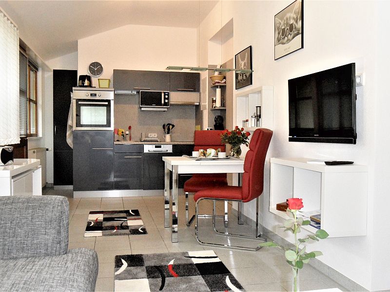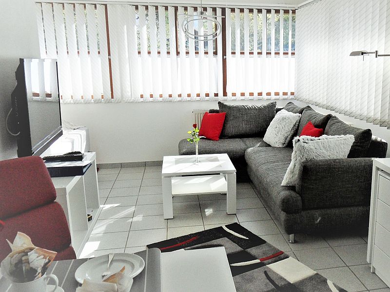 Komfortable, modern ausgestattete Ferienwohnung, Wohn- und Schlafraum kombiniert.