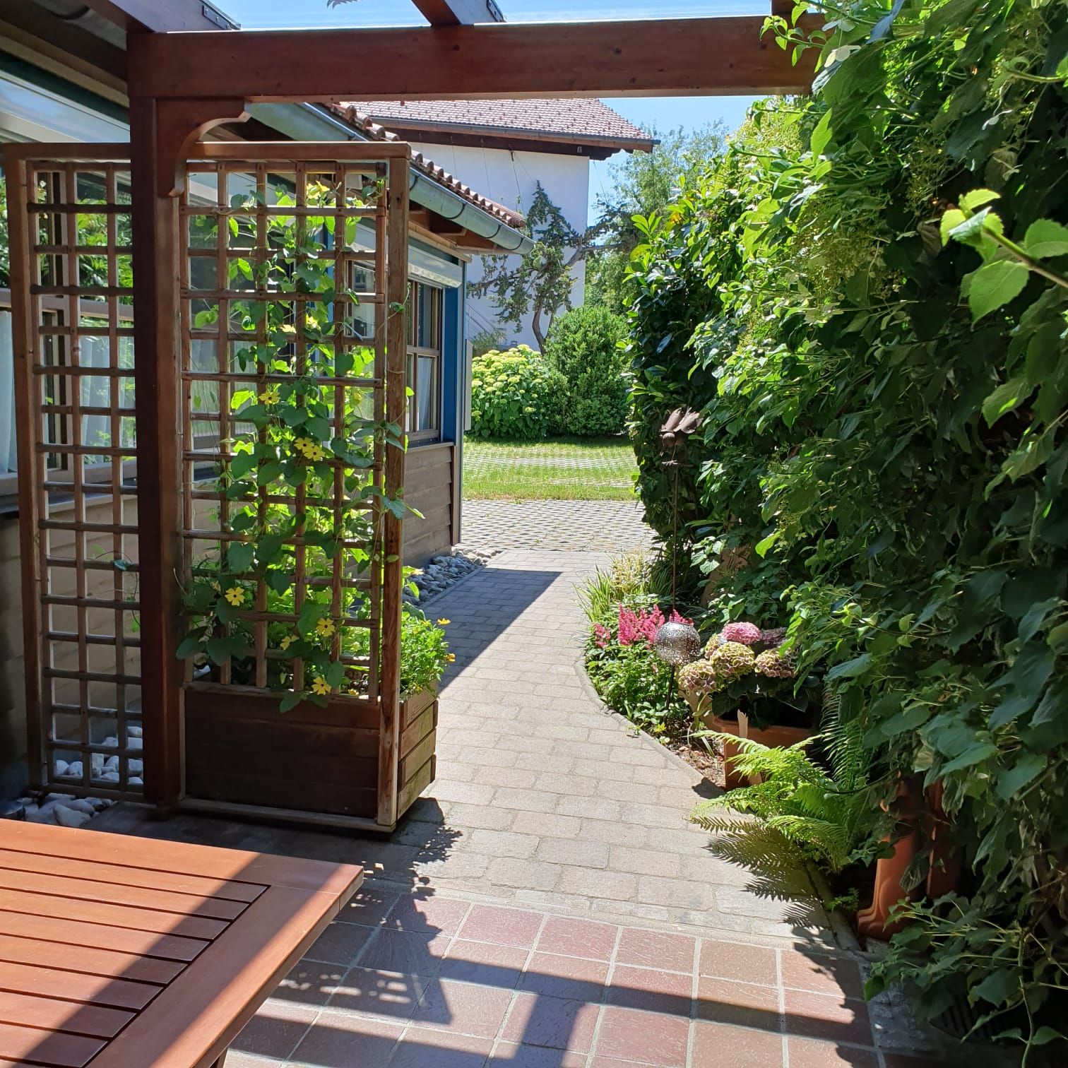 Gepflegtes Einfamilienhaus ca. 3km außerhalb von Frasdorf im kleinen Ort Wildenwart. Entfernung zum Chiemsee 5 km. Moderne, komfortable Ferienwohnung im Erdgeschoss mit überdachter Terrasse, separatem Eingang und PKW-Stellplatz. Wohn-Schlafraum kombiniert mit französischem Bett, gut ausgestattete Küchenzeile mit Geschirrspüler und Mikrowelle, Bad mit DU/WC, WLAN, SAT-TV und Zimmersafe. Nichtraucher, keine Haustiere, Fahrradgarage mit E-Bike-Ladestation,E-Auto-Ladestation, Parkplatz für Fahrrad- und Motorradanhänger vorhanden, englischsprachig. Handtücher und Bettwäsche inklusive.