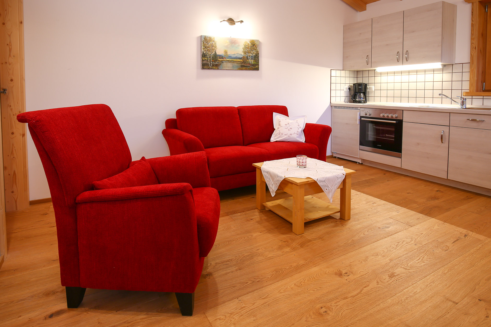 Neu eingerichtete 45qm große Ferienwohnung mit separatem Schlafzimmer, Wohnzimmer mit Couch und Essecke, hochwertiger Küchenzeile mit Geschirrspüler sowie Kühlschrank mit Gefrierfach. Die Wohnung hat sowohl einen Nordost-Balkon als auch einem Südwest-Balkon, auf dem Sie entweder die Morgensonne oder Abendsonne genießen können. Das geräumiges Badezimmer ist ausgestattet mit ebenerdiger Dusche. Die gesamte Wohnung ist mit Fußbodenheizung und echtem Holzboden ausgestattet, dadurch ergibt sich ein angenehmes, natürliches Wohnklima. Kostenloses WLAN. Sehr ruhige Lage, aber dennoch nur ca. 700 Meter vom Ortszentrum entfernt. Einkaufsmöglichkeit in nächster Nähe. Langlaufloipe sowie Einstieg in Rad- und Wanderwege direkt ab Haus möglich.