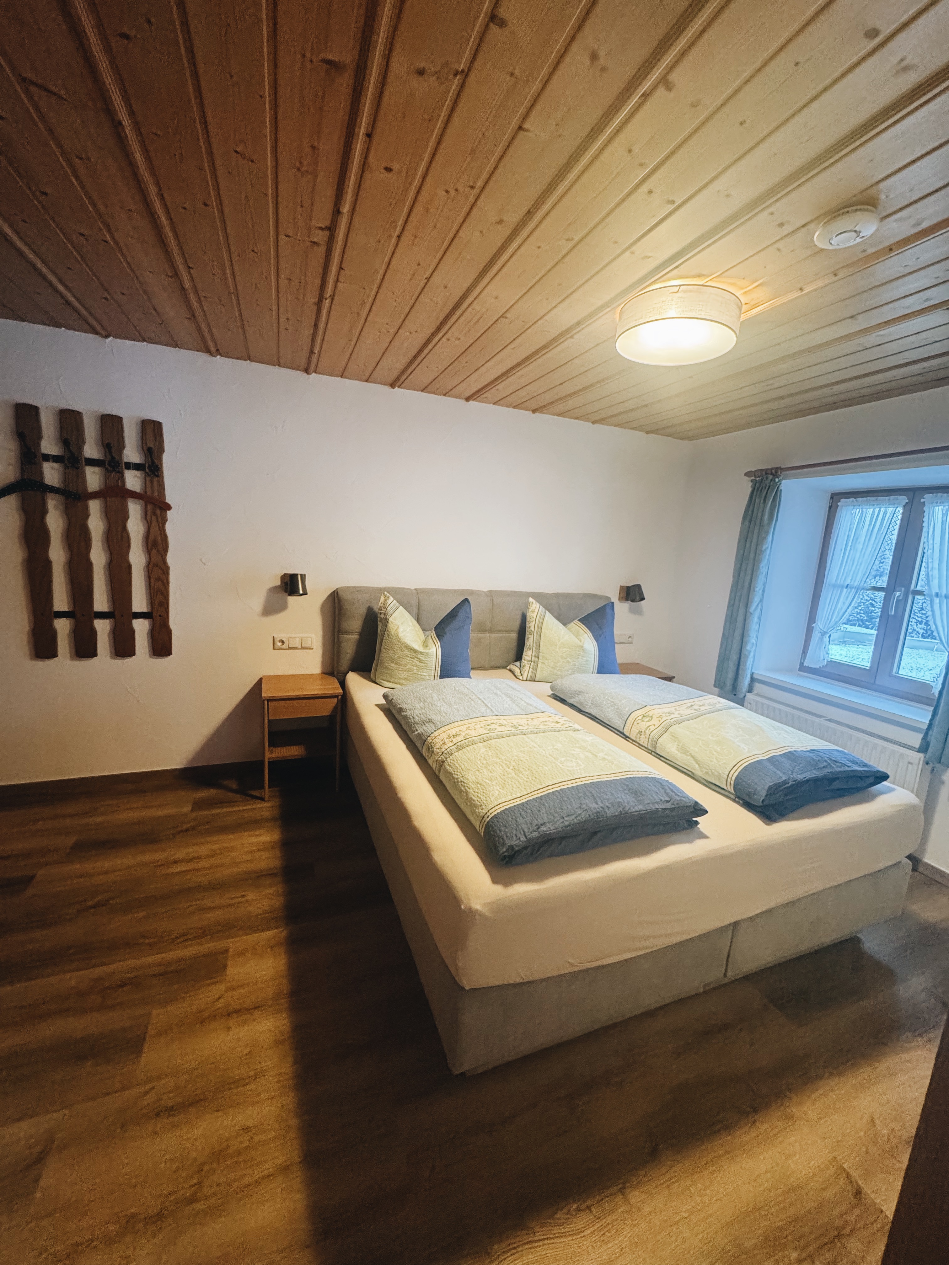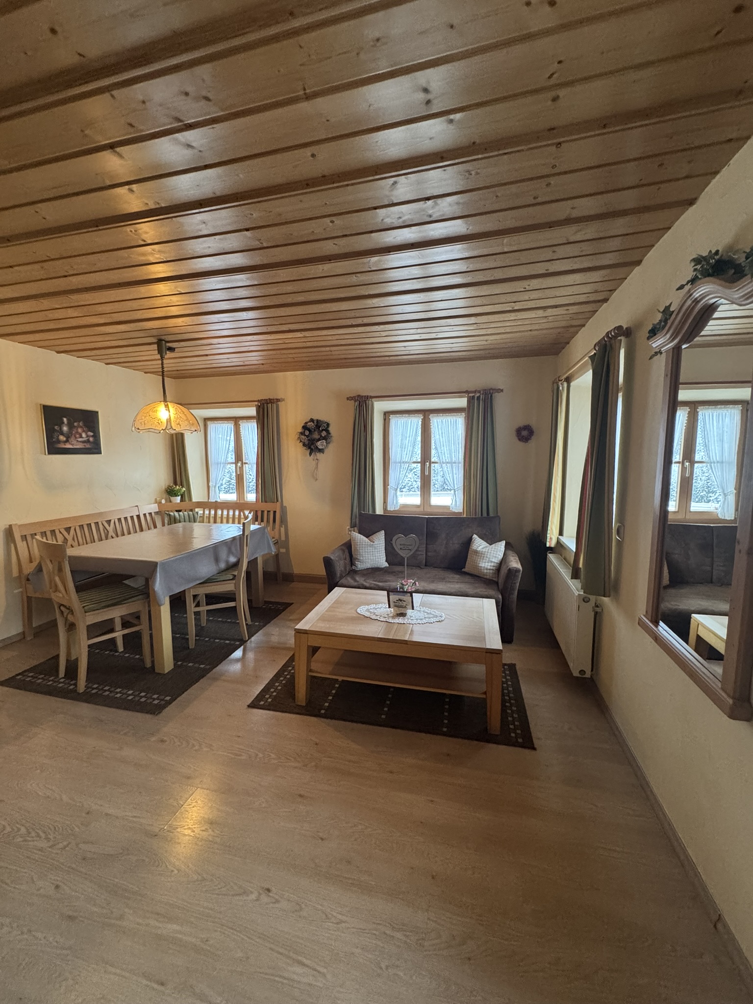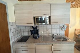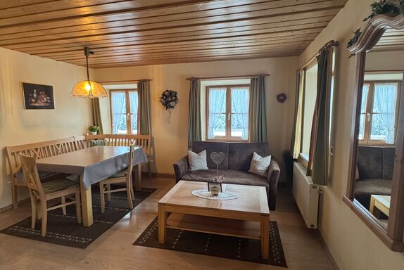 Im Bauernhaus: Ferienwohnung Kienberg, 3 Sterne,35 qm für 2 Personen. Ausstattung: rustikaler Wohnraum, 1 Schlafzimmer, Dusche/ WC, Essbereich und komplett ausgestattete Küche mit: Mikrowelle, Kochgelegenheit, Eierkocher, Wasserkocher und Toaster, Balkon mit Sitzgarnitur, Sat - TV, Wlan - Anschluss, Handtücher und Geschirrtücher vorhanden.
