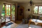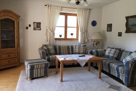 Es erwarten Sie großzügige Räumlichkeiten, aufgeteilt im Erdgeschoss in eine voll ausgestattete Wohnküche mit Essecke, Backofen, Geschirrspüler, Toaster, Brotschneidemaschine sowie einer Mikrowelle. Ebenfalls ebenerdig ist das gemütliche Wohnzimmer mit Kachelofen und Sitzgruppe. Von hier haben Sie auch Zugang zu den großen möblierten Terrassen mit Grill und Liegewiese. Zusätzlich befindet sich im Erdgeschoss ein Gäste-WC. Im Obergeschoss erwarten Sie zwei Schlafzimmer mit Doppelbett, verbunden durch einen durchgehenden Balkon mit Balkonmöbel. Das Badezimmer in der ersten Etage ist mit einer Dusche, WC sowie einer Eck-Badewanne ausgestattet. Natürlich steht Ihnen in unserem Haus freies W-LAN zur Verfügung.