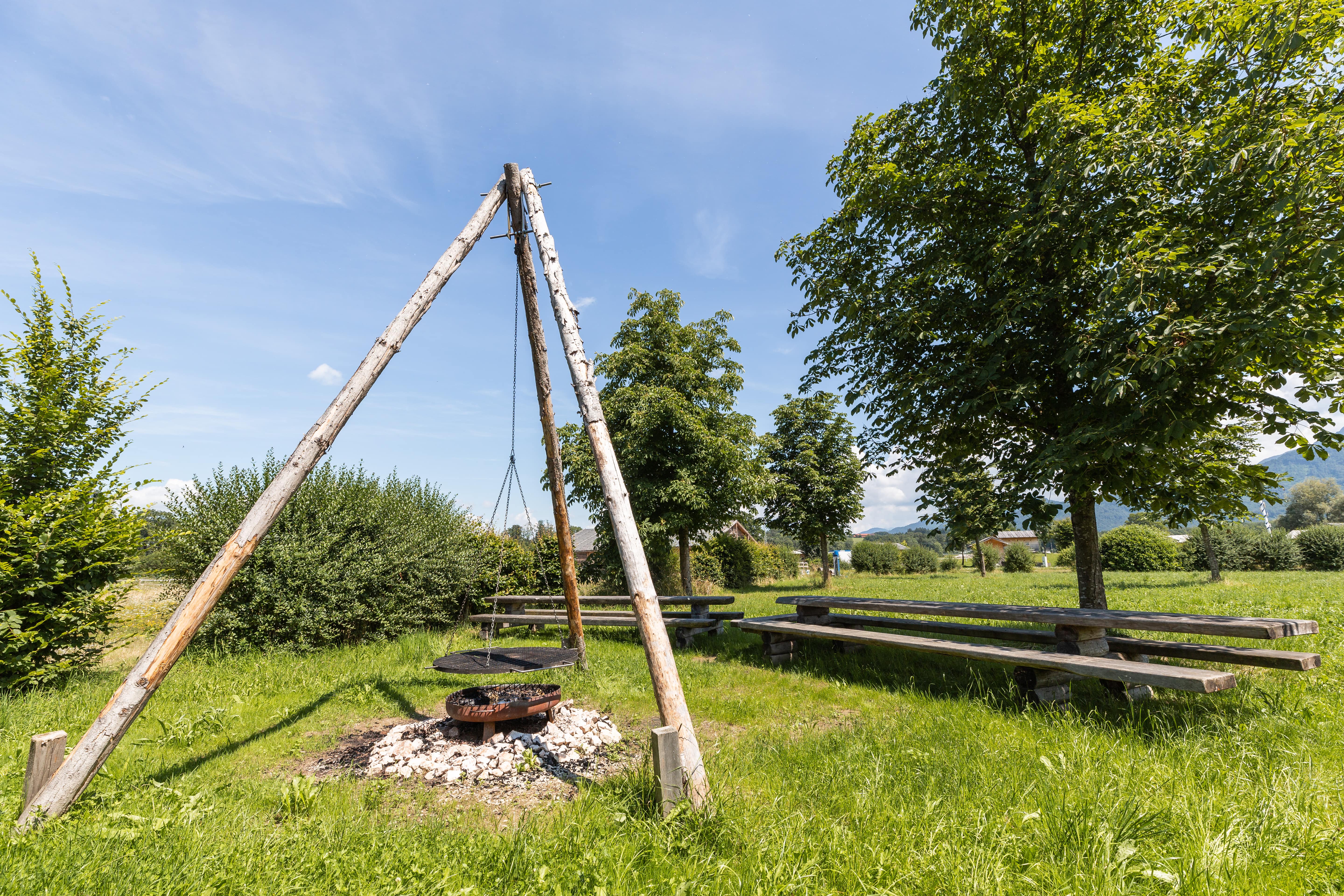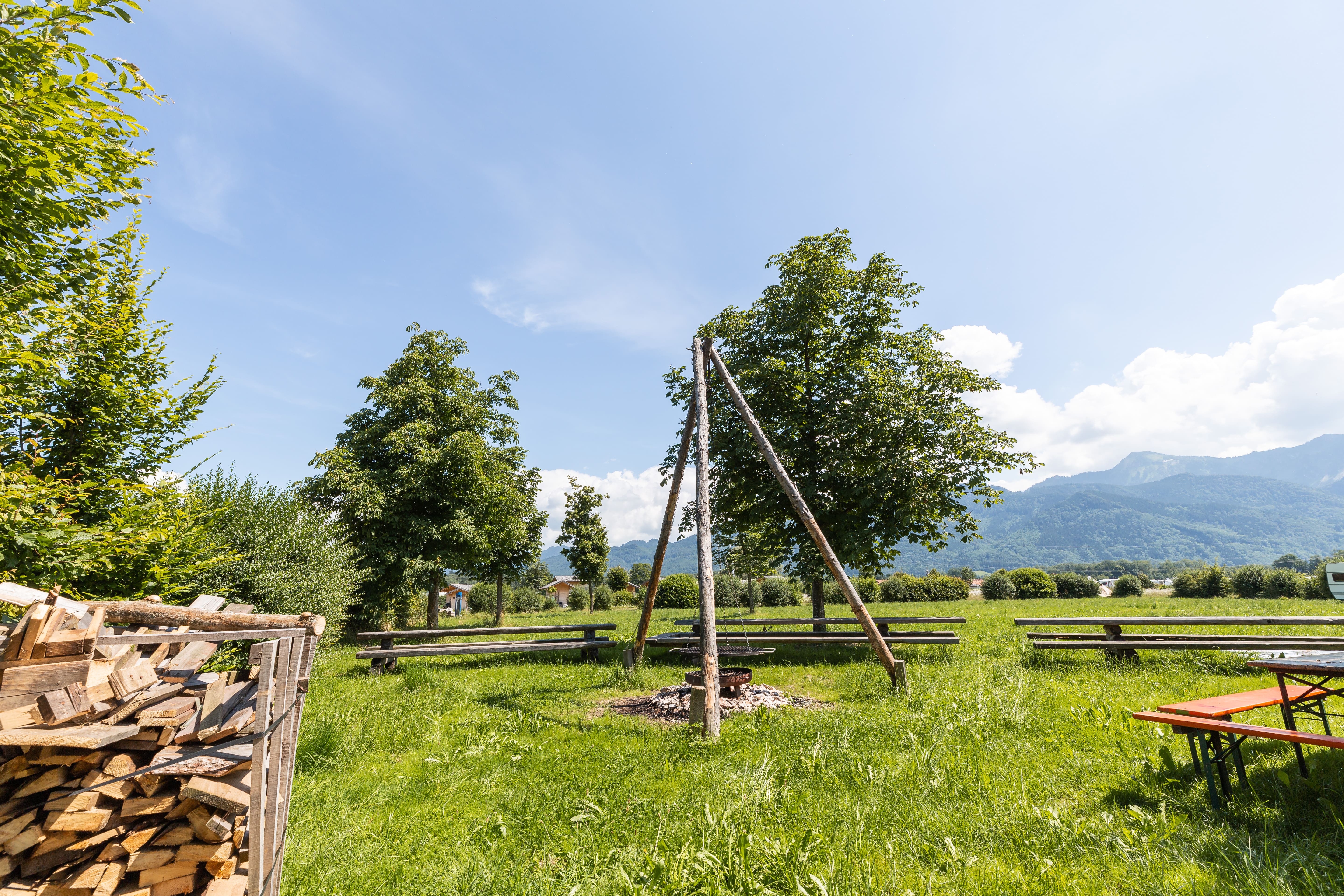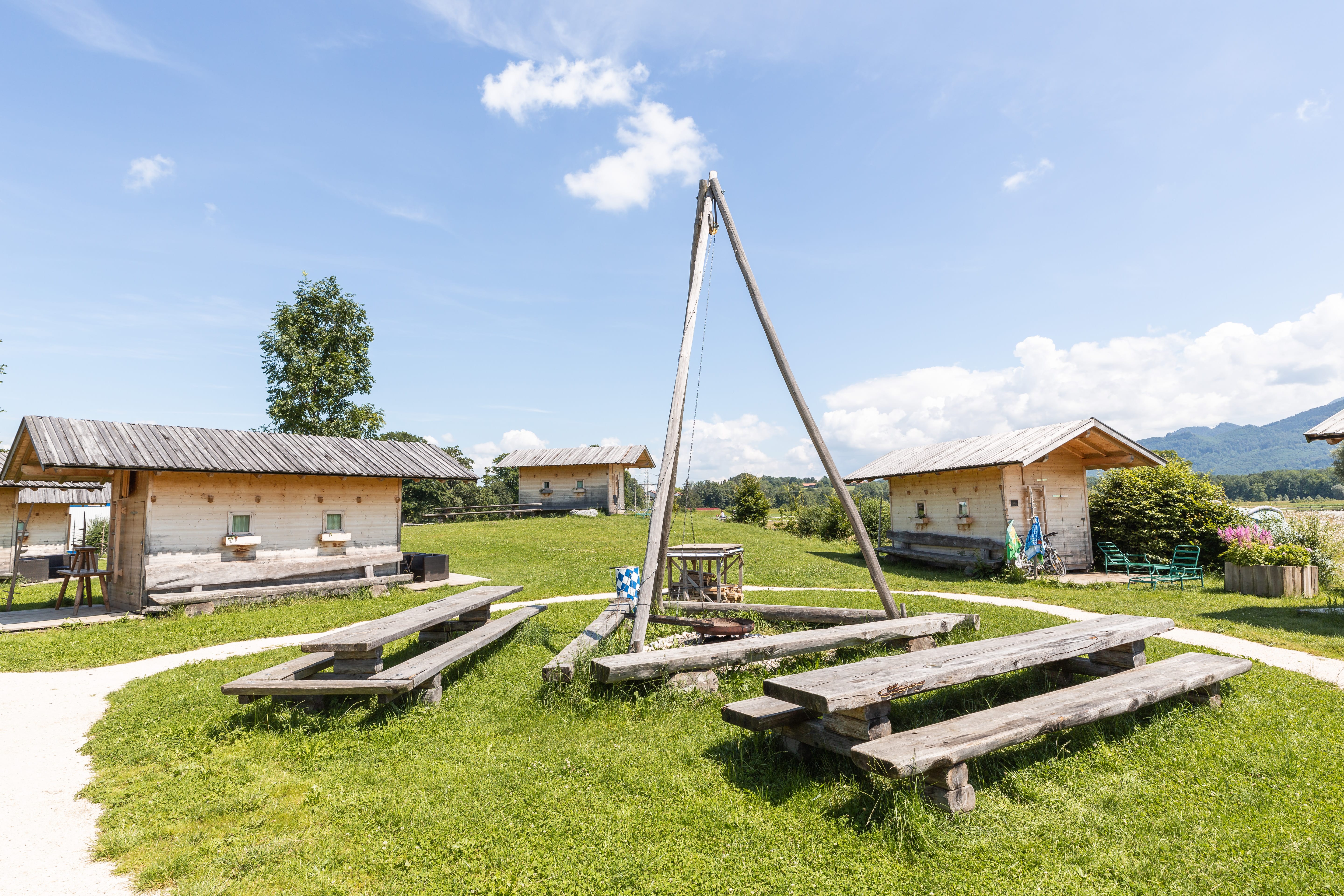 Vor dem Almhüttendorf gibt es schöne Grünflächen, die als Liegewiese dienen und große Massivholz-Sitzgruppen, die zum Picknick einladen. Am Abend können wir auf Wunsch Feuerholz zur Verfügung stellen, damit Sie grillen oder Ihren Tag am romantischen Lagerfeuer ausklingen lassen können.