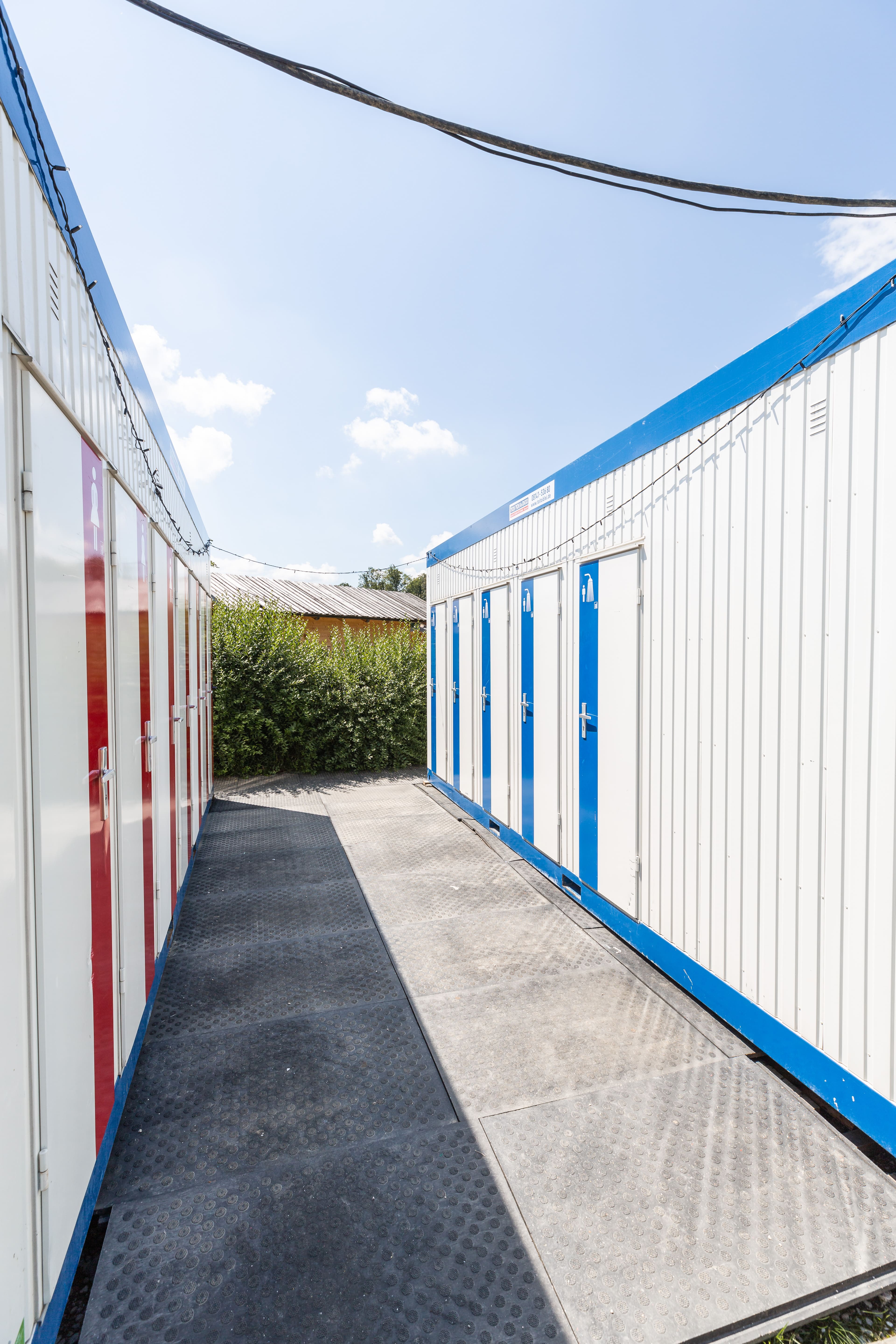 Fließend Wasser und sanitäre Anlagen befinden sich in einem Container auf dem Gelände.