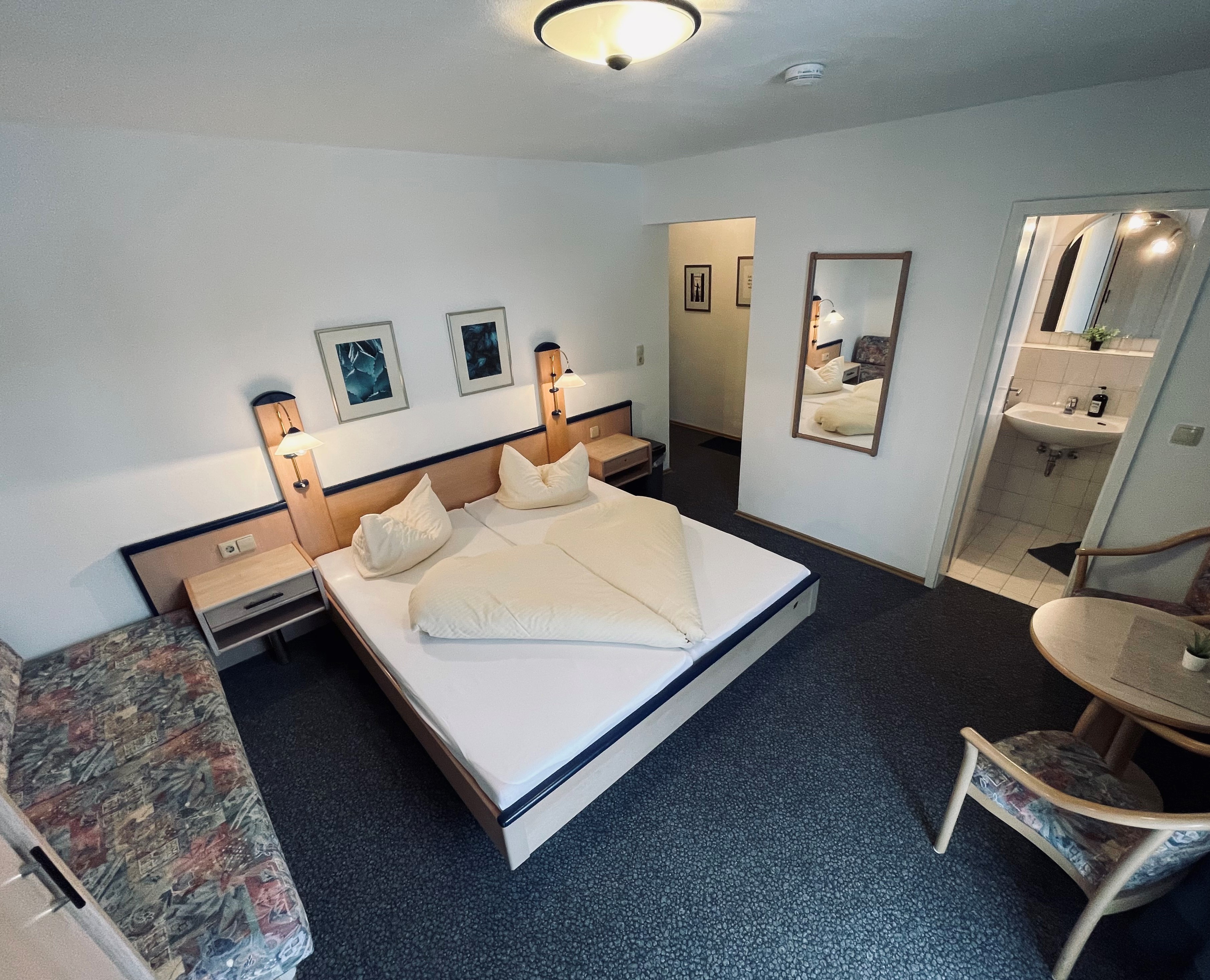 Für ihr leibliches Wohl ist mit zahlreichen Gaststätten, in nur wenigen Gehminuten gesorgt. Auch ein Supermarkt und eine Apotheke sind fußläufig in wenigen Minuten erreichbar. Ein Parkplatz ist direkt vor dem Haus für Sie reserviert, ebenso bieten wir Ihnen kostenloses WLAN.