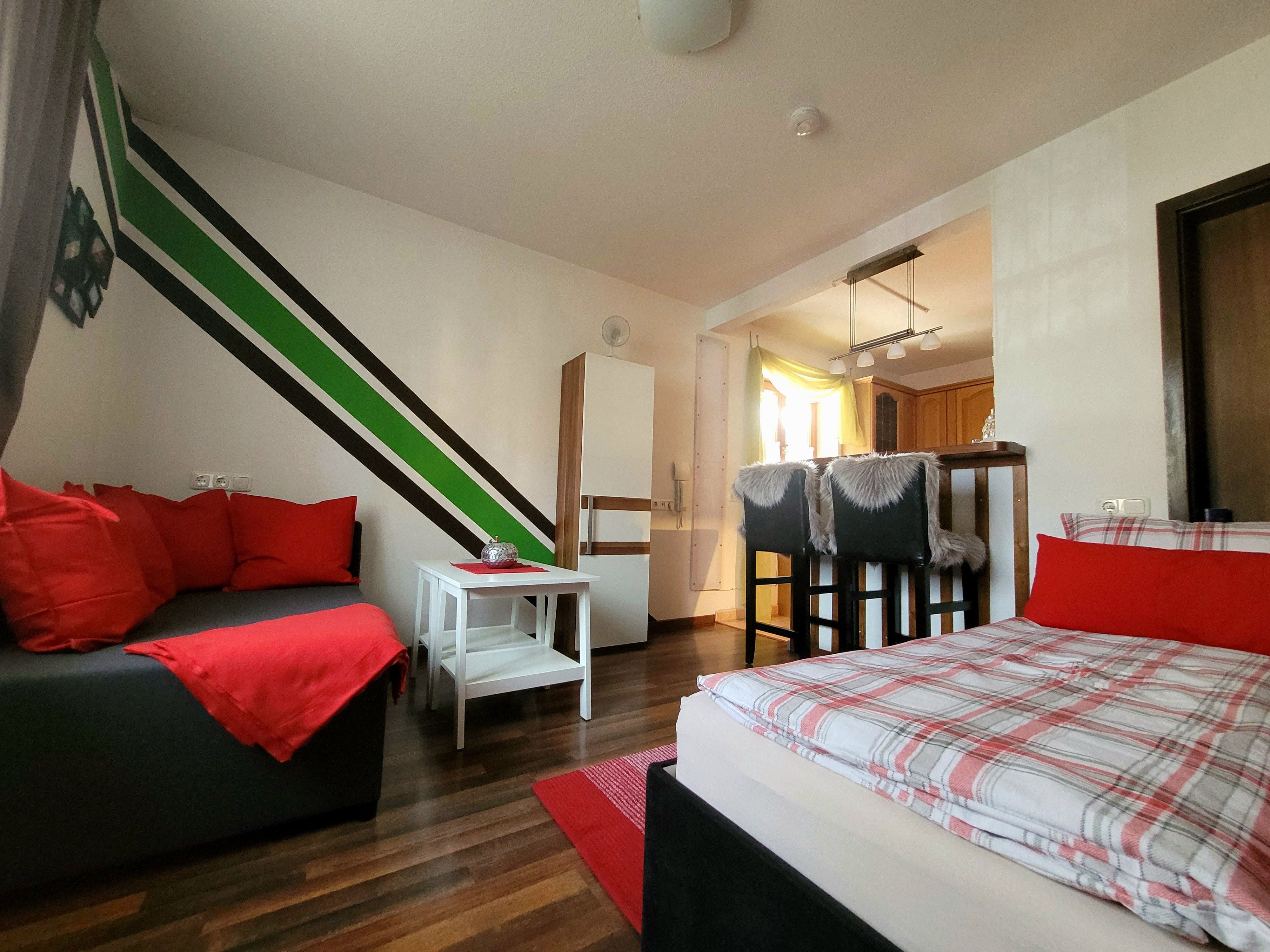 Unser Apartment ist ebenerdig und hat ca.35qm, ideal für Paare, sportlich Ambitionierte, Alleinreisende und Geschäftsreisende. Die Küche ist mit allem Wichtigen ausgestattet. Es steht ein großes Badezimmer zur Verfügung. Der Wohn/Schlafraum ist gemütlich eingerichtet mit Waipu TV (ca. 300 Sender). Freies WLAN steht selbstverständlich zur Verfügung.Egal ob du radeln, wandern oder am schönen Chiemsee einfach nur chillen willst. Das hast du hier bei uns alles nahezu vor der Haustür.