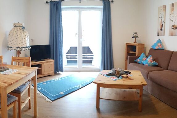 Landhaus Hochgern - Ferienwohnung Kampenwand, 48 m², 2 Personen, Wohn- u. Schlafzimmer, Küche, Bad, Balkon, WLAN