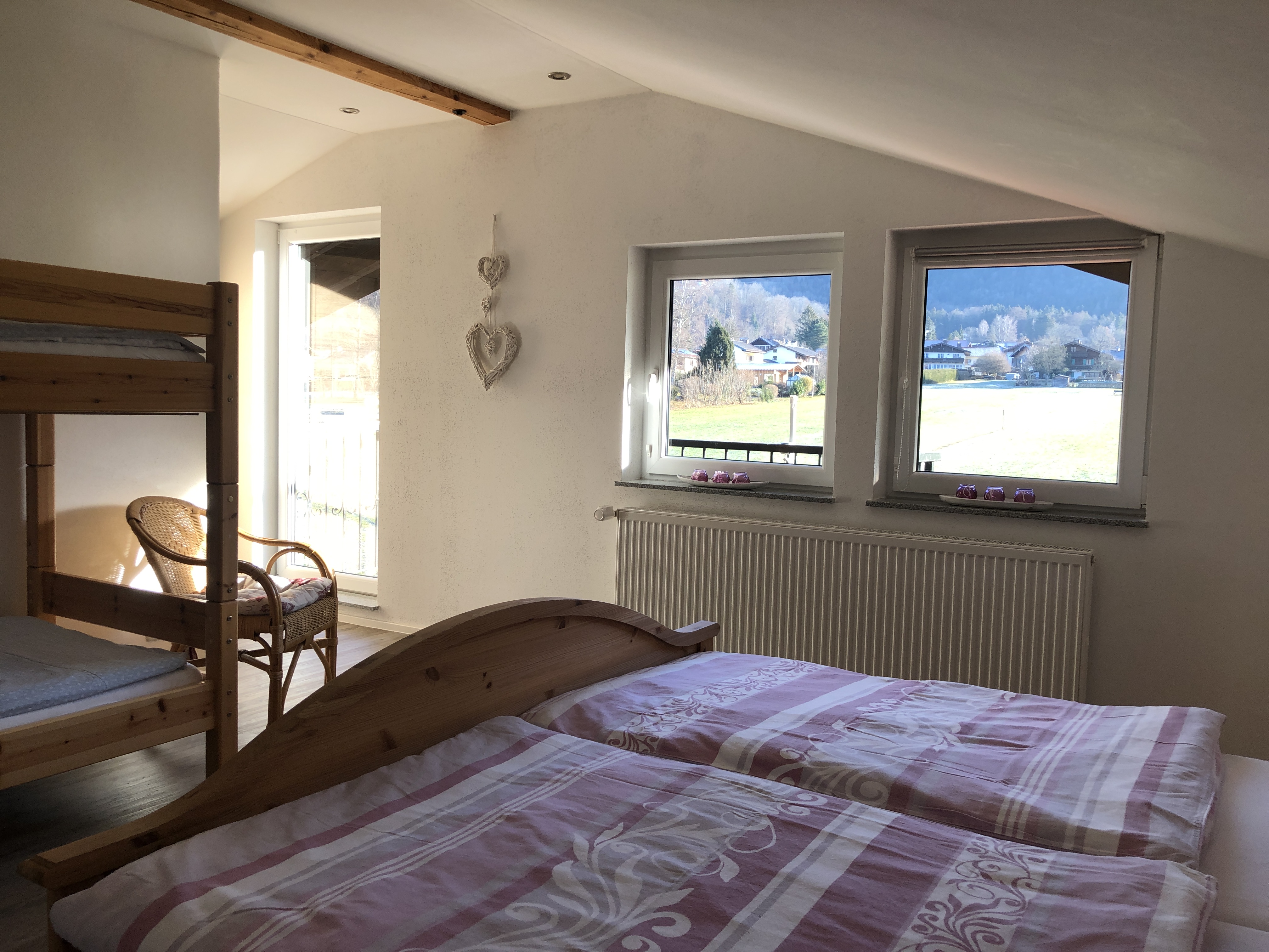 In unserer gemütlichen, neu renovierten und modernisierten Ferienwohnung Hochgern, können Sie im alpenländischen, sowie modernen Stil unvergessliche Urlaubstage erleben. Ob im großzügigen Wohn-Essbereich mit Schlafcouch und dem zusätzlichen Schlafbereich mit Doppelbett, oder im separaten Schlaf-/Kinderzimmer mit Doppelbett und zusätzlichem Stockbett / Etagenbett, steht der Erholung nichts im Wege. Die Wohnung bietet Ihnen ein modernes Badezimmer mit begehbarer Dusche, Badewanne, Radio & WC. Weiter besteht die Möglichkeit auf dem Balkon mit Blick zum Hochgern das Panorama der Chiemgauer Berge zu genießen. Nichtraucherwohnung!