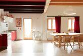 Der 60 qm große Wohnbereich ist mit einer Küche, Schwedenofen, TV, zwei Couchen und einer zusätzlichen Schlafmöglichkeit (zum auswandern für Schnarchgeplagte) ausgestattet. Ein großer Esstisch für bis zu 8 Personen lädt zum Spaghettikochen ein.
