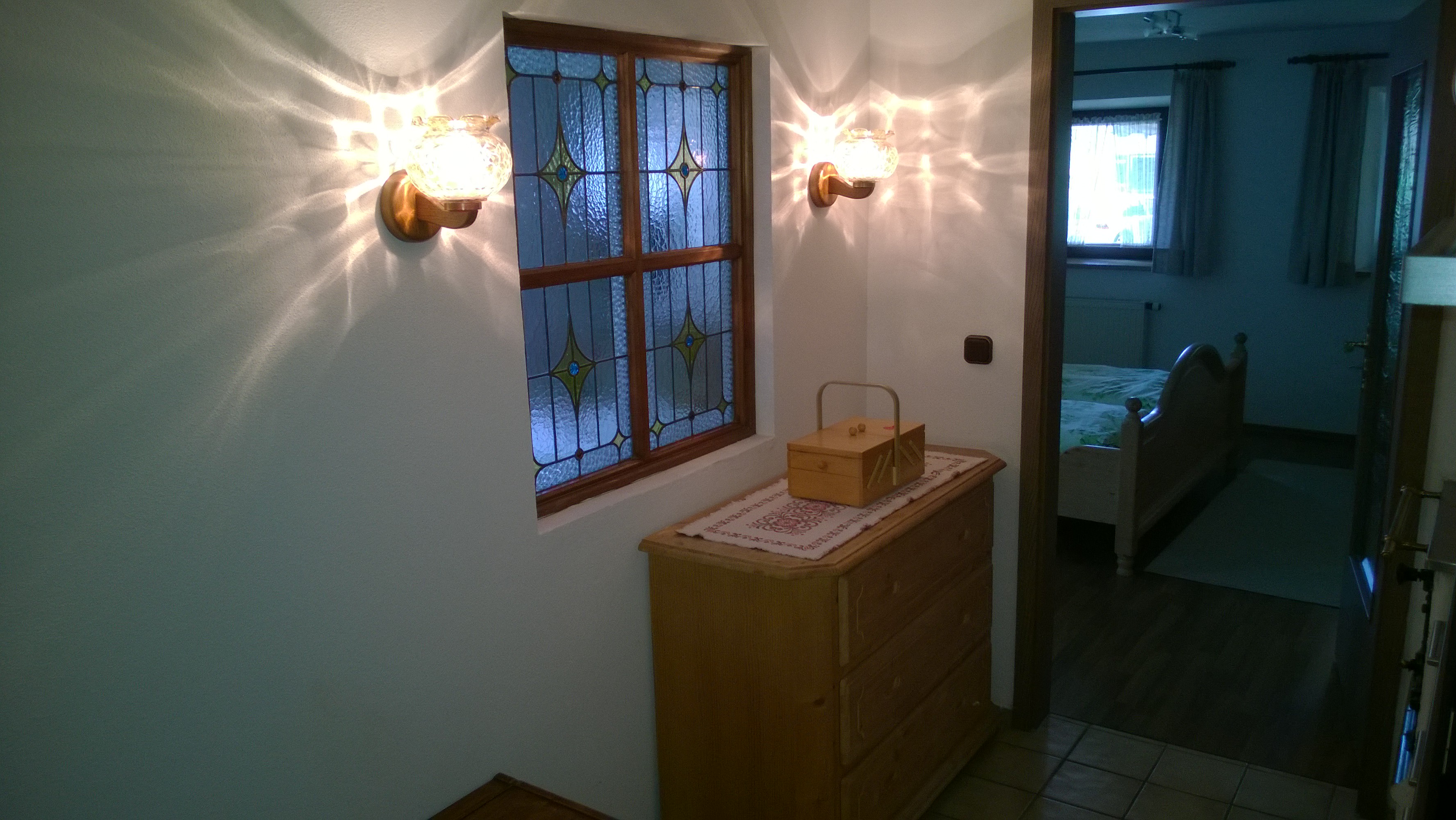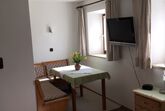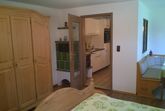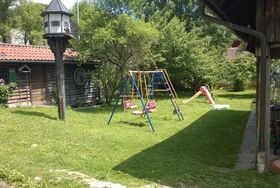 Unsere Ferienwohnung besteht aus einem Hauptwohnraum mit einem Doppelbett und einem großen Kleiderschrank. Außerdem finden Sie in einer gemütlichen Nische eine Eckbank sowie einen Tisch. Im Eingangsbereich der Ferienwohnung befindet sich eine praktische Küchenzeile und der Zugang zum Badezimmer. Im Außenbereich gibt es Spielgeräte, eine Rutsche, eine Schaukel und ein Spielhaus. Außerdem dürfen unsere Gäste die Hausbänke und den Tisch auf der Terrasse verwenden.