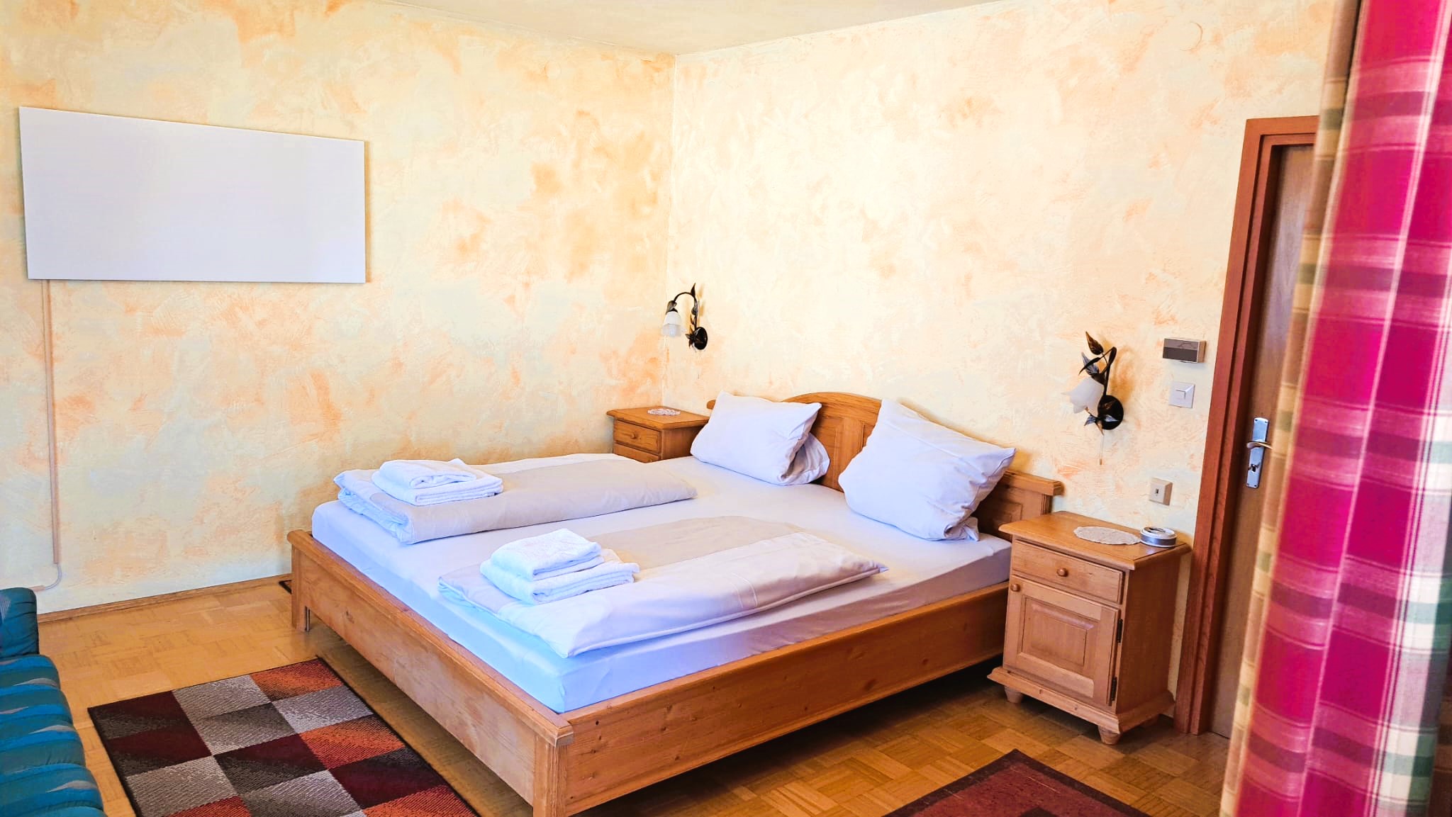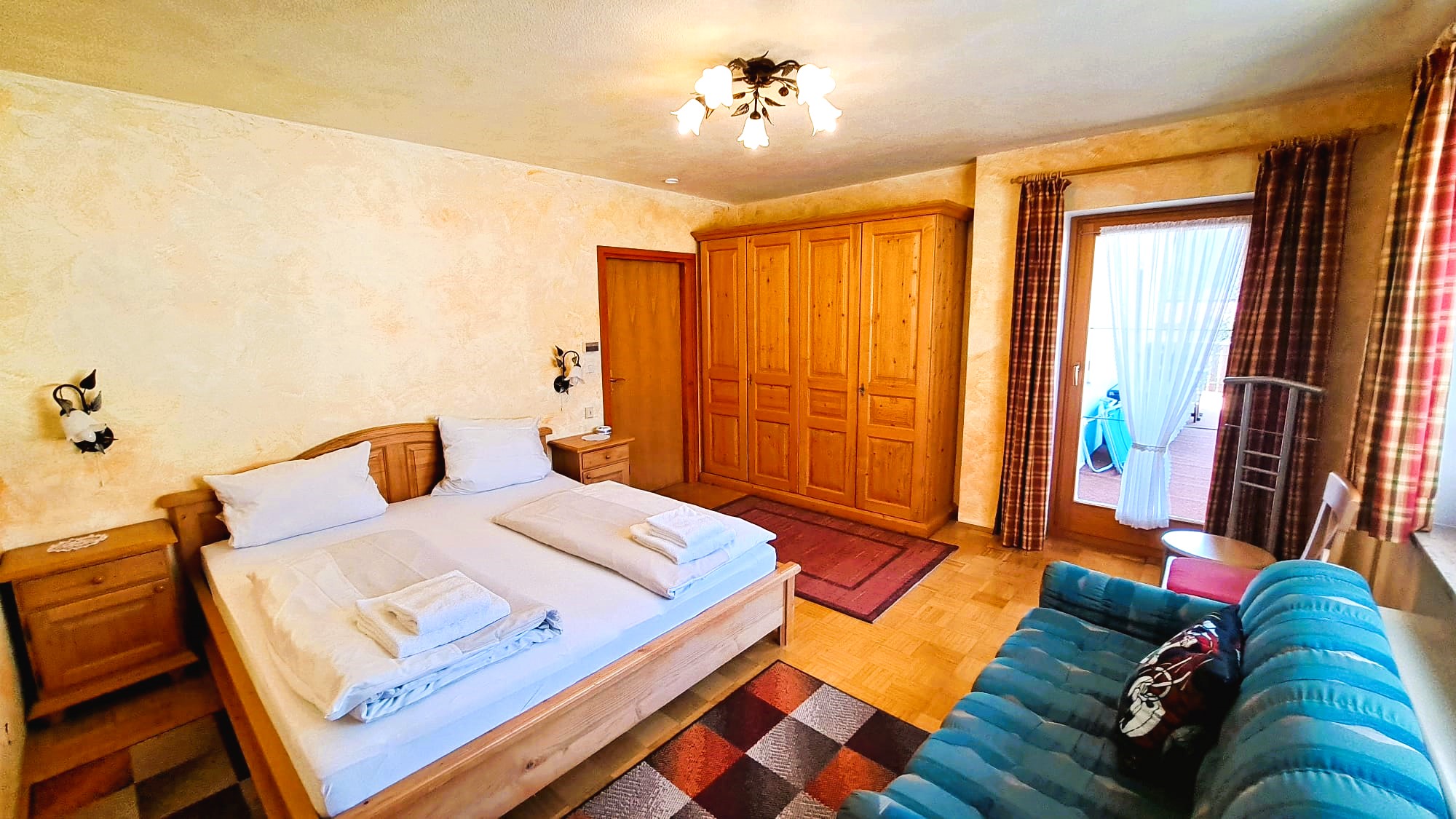 Das Wohnzimmer verfügt über eine Essecke im Landhausstil sowie eine bequeme Couch und verspricht gemütliche Abende. Die beiden Schlafzimmer sind jeweils mit einem Doppelbett und einem Schrank möbliert. Zur voll ausgestatteten, modernen Küche gehören neben einem Kühlschrank auch ein 4-Plattenherd, ein Backofen und eine Mikrowelle. Weiters verfügt die Wohnung über ein modernes Bad mit WC und Dusche, sowie eine separate extra Toilette. Der sonnige Südbalkon lädt jederzeit zum Verweilen ein und bietet eine Aussicht zum Genießen. Für unsere Gäste steht zudem freies WLAN, Kabel TV, eine Stereoanlage, ein eigener Parkplatz und ein beheizter Skiraum zur Verfügung.