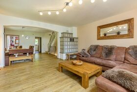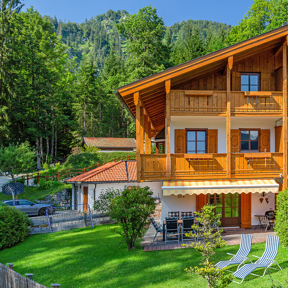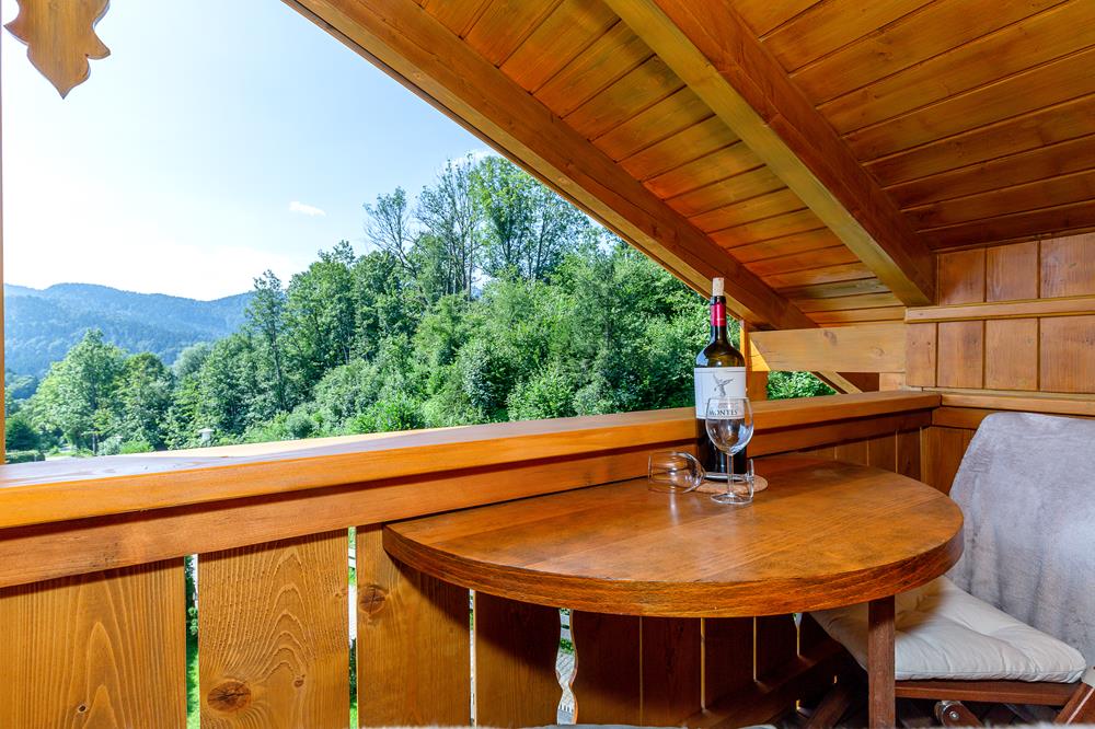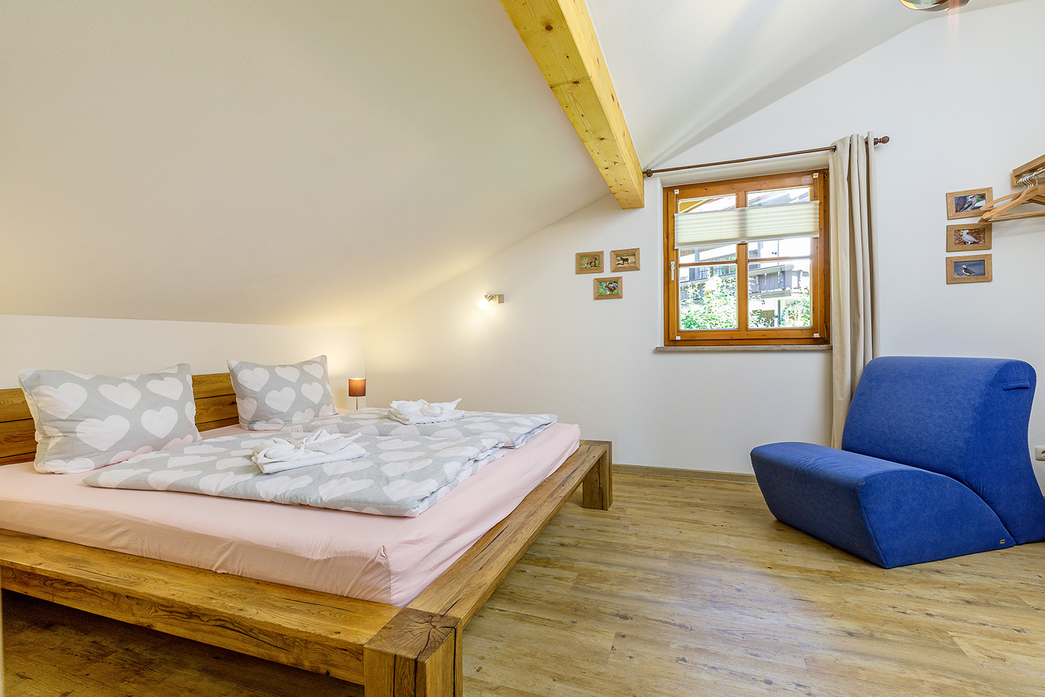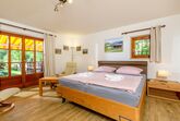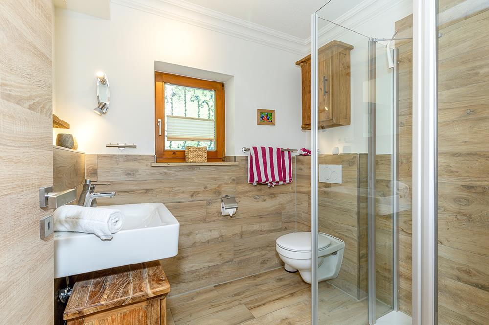 In der unteren Etage befindet sich die Garderobe, das Kinderzimmer, die Waschküche mit Waschmaschine und Trockner, ein sehr modernes Bad mit Dusche und WC. Außerdem ist hier das größte Schlafzimmer mit Zugang zum Garten und eigenem Fernseher und zwei gemütlichen Ausruhsesseln. Ein gepflegtes offenes Treppenhaus führt in die mittlere Etage und trägt zum großzügigen Wohngefühl bei. In der mittleren Etage des dreistöckigen Häusles befindet sich das große und gemütliche Wohnzimmer mit großem Fernseher mit DVD -Player und ein großes Esszimmer. Am massiven Essentisch können alle Gäste gemütlich sitzen. Die putzige Landhausküche ist bestens ausgestattet, so dass die Zubereitung der eigenen Speisen Spaß macht. Durch zwei Kühlschränke mit je einem Eisfach gibt es genug Platz für die Eigenversorgung. Außerdem befindet sich im zweiten Stock noch ein kleines Zimmer mit kleinem Fernseher. Die Doppelausziehcouch dieses Zimmers bietet eine zusätzliche Schlafgelegenheit (Ausweichplatz). Darüber hinaus ist in dieser Etage noch ein kleines Gäste-WC. Aus dem großzügigen Wohnzimmer mit gemütlicher Couch geht es auf den Eckbalkon mit wunderbarem Ausblick in die Natur. Das Bachplätschern und das Vogelgezwitscher sind die einzigen Geräusche, die hier zu hören sind. In der obersten Etage findet sich das größere hochwertige Bad mit übergroßer Dusche, sowie zwei große Schlafzimmer, wobei eines den Zugang zum kuscheligen obersten Giebelbalkon hat. Für Kinder: 2 große Lego -Duplo Kisten, Basketballkorb im Hof und Gesellschaftsspiele, Babyhochstuhl, Kinderbett und Töpfchen vorhanden.