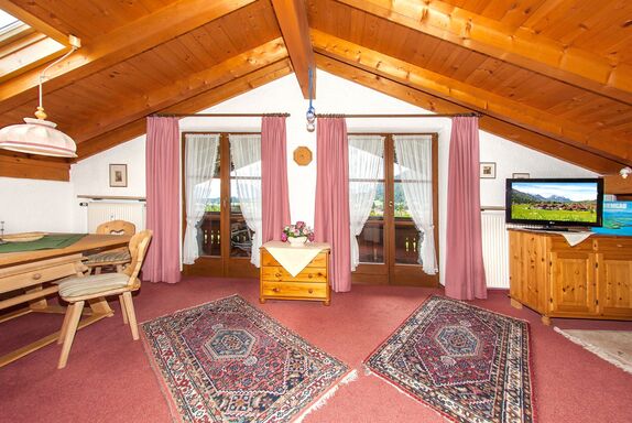 Die im traditionsreichen Zentrum von Reit im Winkl gelegene Ferienwohnung „Mahlert“ befindet sich im Haus Sonnenschein und überzeugt mit einem traumhaften Ausblick auf das Dorf und das nahegelegene Kaisergebirge vom sonnigen, möblierten Balkon aus.Die Wohnung überzeugt mit einem altmodisch, wohligem Einrichtungsstil und eignet sich perfekt für vier Personen. Das Wohnzimmer verfügt über einen Essbereich im Landhausstil, sowie eine große Sitzgruppe mit Sofa und zwei Fernsehsesseln und lädt zu gemütlichen Abenden ein. Es gibt zwei separate Schlafzimmer, wobei eines mit einem Doppelbett, und das andere mit zwei Einzelbetten ausgestattet ist. Die voll eingerichtete Küche bietet alles, was man so braucht und eignet sich auch zum Zubereiten größerer Mahlzeiten. Das moderne Badezimmer verfügt über WC und Dusche.Weiters stehen Ihnen im Haus Sonnenschein viele Extras wie Sauna, Solarium, Liegebänke, Tischtennistisch, Kinderspielraum, Waschmaschine, Skiständer und elektrischer Schuhtrockner zur Verfügung.In einer ruhigen Sackgasse gelegen, ist das Ortszentrum in nur wenigen Gehminuten zu Fuß bequem erreichbar. Einige der besten Restaurants und Cafés, sowie eine Vielzahl an Geschäften laden zu einem gemütlichen Ortsbummel ein. Auch Wanderer kommen hier auf ihre Kosten, denn viele der Wege starten direkt im Zentrum.