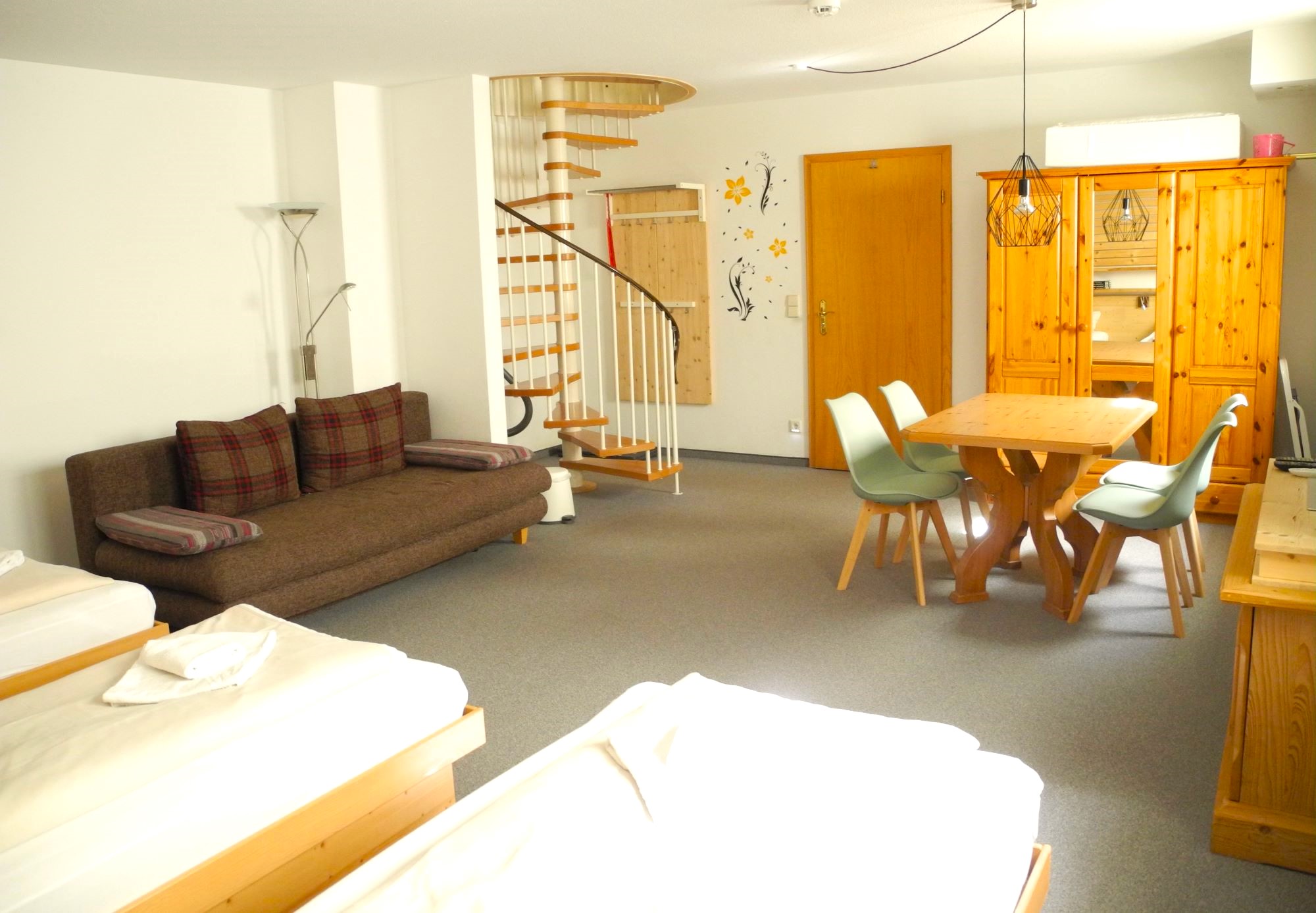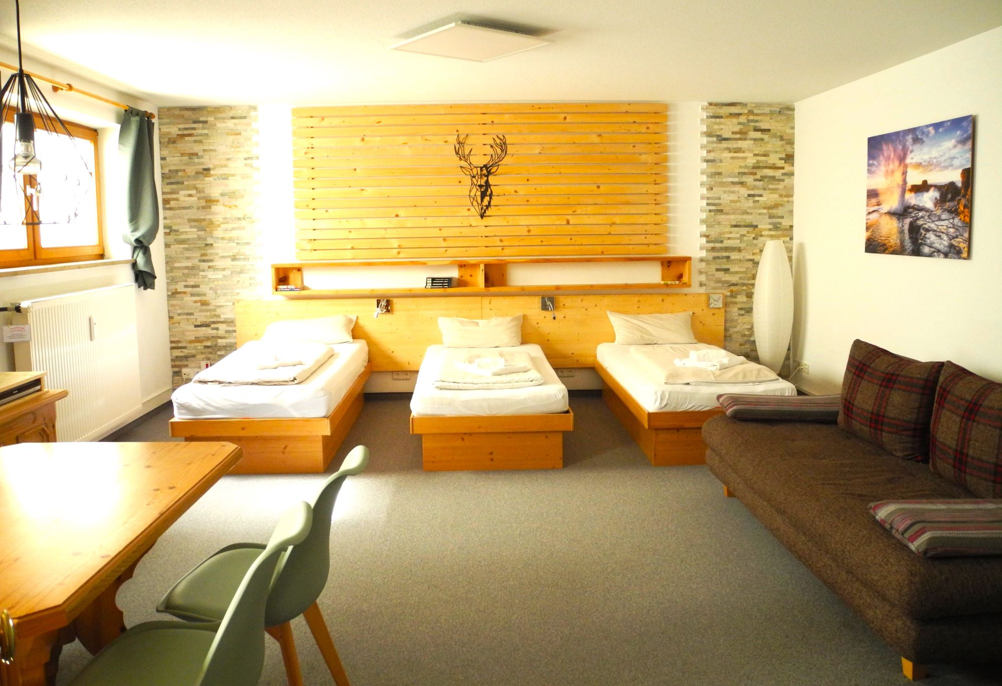 Die ruhig gelegene Ferienwohnung Bettina befindet sich in der naturnahen Siedlung Loferpark, südöstlich des Ortskerns in sonniger Lage und bietet Platz für bis zu sieben Personen. Sie verfügt über zwei Schlafzimmer und einen Wohnbereich mit Essecke. Die gemütliche, liebevoll eingerichtete Wohnung besticht durch ihre großzügige Südterrasse, die jederzeit zum Verweilen einlädt. Der hochwertig eingerichtete Essbereich ist mit einer modernen, voll ausgestatteten Küche ausgestattet. Im großzügigen Wohnzimmer lädt eine gemütliche Sitzecke zu geselligen Abenden oder zum Entspannen ein. Ein Flachbildfernseher mit Kabelanschluss und eine Stereoanlage sorgen für eine gemütliche Atmosphäre. Während das kleinere Schlafzimmer über ein Doppelbett und einen großen Kleiderschrank verfügt, ist das größere mit drei Einzelbetten und einer Schlafcouch ausgestattet. Das Badezimmer verfügt über eine Dusche und WC. Darüber hinaus stehen unseren Gästen zwei Parkplätze in der Tiefgarage zur Verfügung. Hunde sind in dieser Wohnung herzlich willkommen.