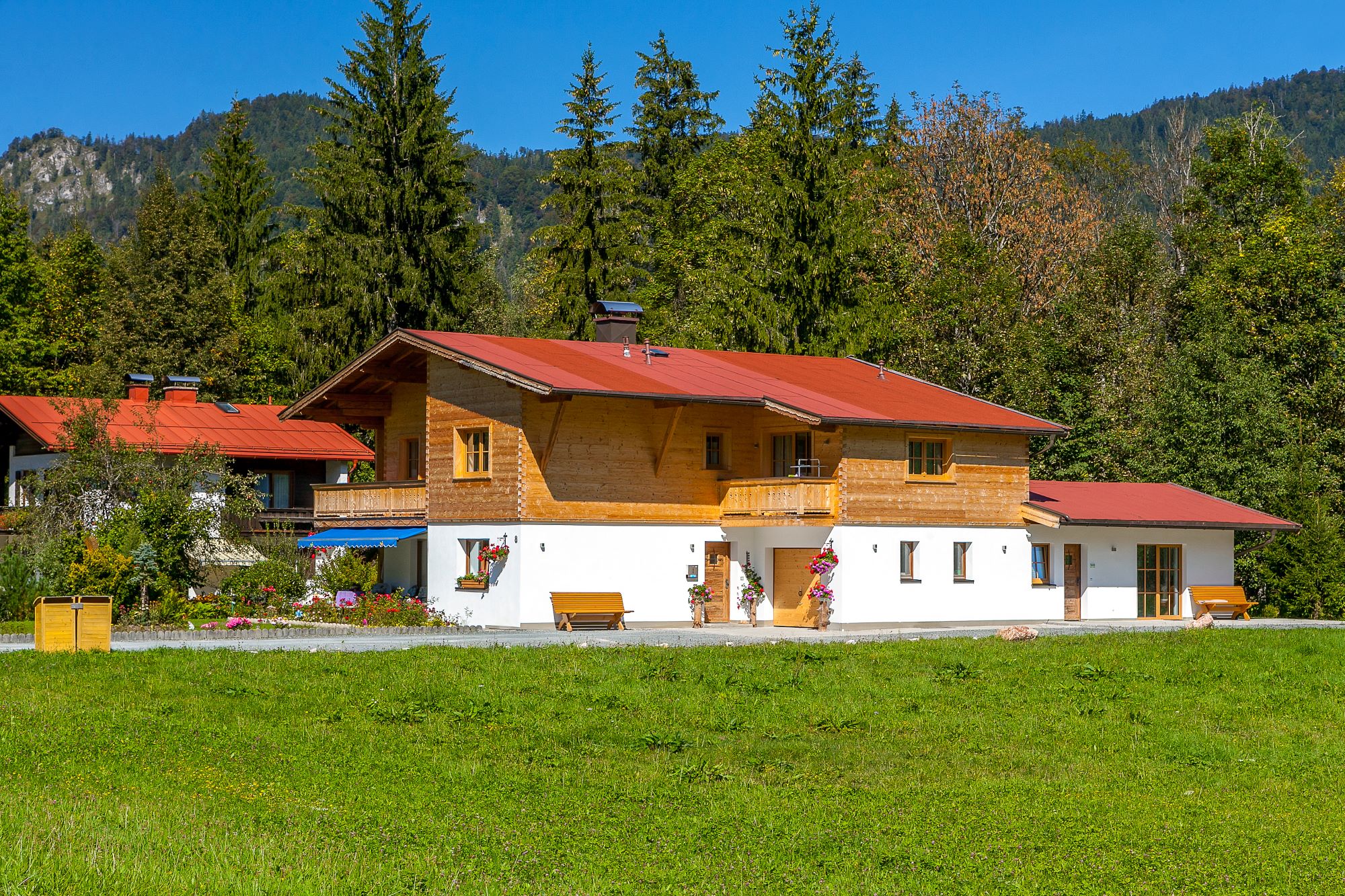 Als besonderer Service ist unter anderem die Nutzung der Skilifte im Skigebiet am Benz-Eck (Luftlinie 1,2km) sowie der Freibäder Reit im Winkl und Kössen für Sie als unser Gast kostenlos.