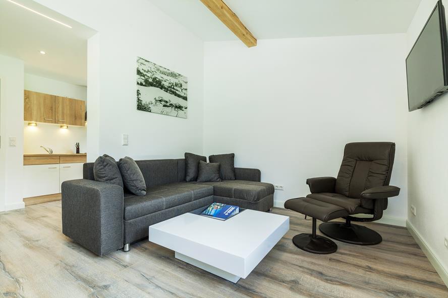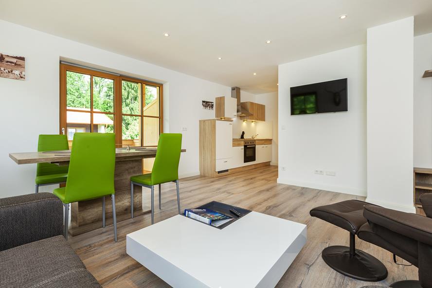 Die lichtdurchfluteten 2-Raum-Wohnungen (für 2 bis 4 Personen) bieten Ihnen alles, was Sie für einen entspannten Urlaub benötigen: ein gemütliches Schlafzimmer, ein Wohnzimmer mit Schlafsofa, eine voll ausgestattete Küchenzeile mit Esstisch, ein modernes Badezimmer und einen großzügigen Balkon, auf dem Sie die frische Bergluft genießen können. Die Wohnung „Steinplatte“ bietet zusätzlich eine Terrasse, und für alle, die das Zusammensein unter freiem Himmel lieben, steht ein Grillplatz zur Verfügung. Ob Wandertour im Sommer oder Skiabenteuer im Winter – hier beginnt Ihr Urlaub direkt vor der Tür.