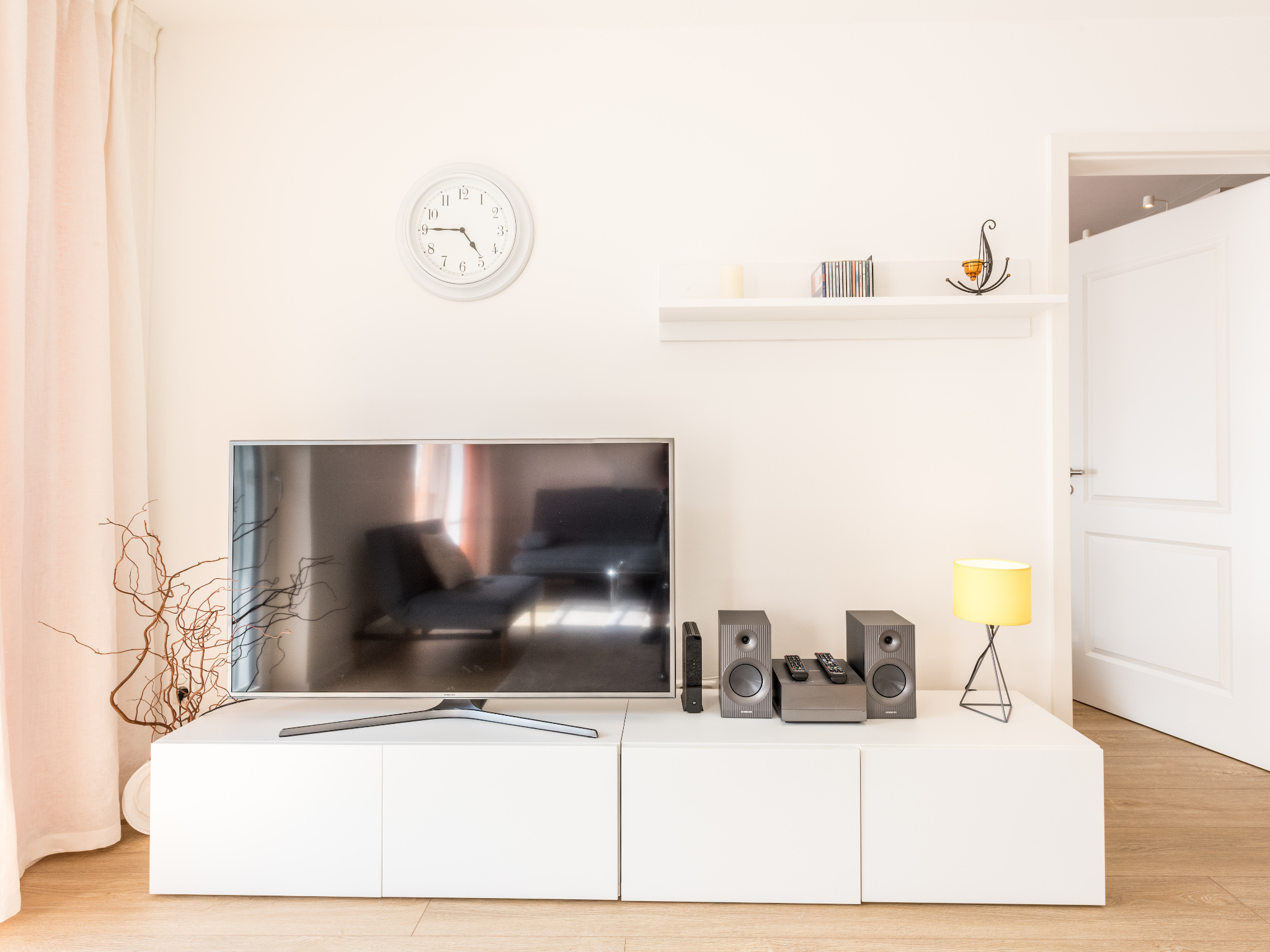 Die helle Wohnung mit einem separaten Schlafzimmer befindet sich im 1. Stock und wurde mit viel Liebe zum Detail eingerichtet. Sie ist sehr komfortabel ausgestattet, so dass Sie sich hier wie zuhause fühlen können. Vom geräumigen S/W-Balkon (11 qm) mit einer Sitzgruppe für 4 Personen und 2 Liegen blicken Sie auf den nahegelegenen Kurpark und können hier schöne Sonnenuntergänge erleben.