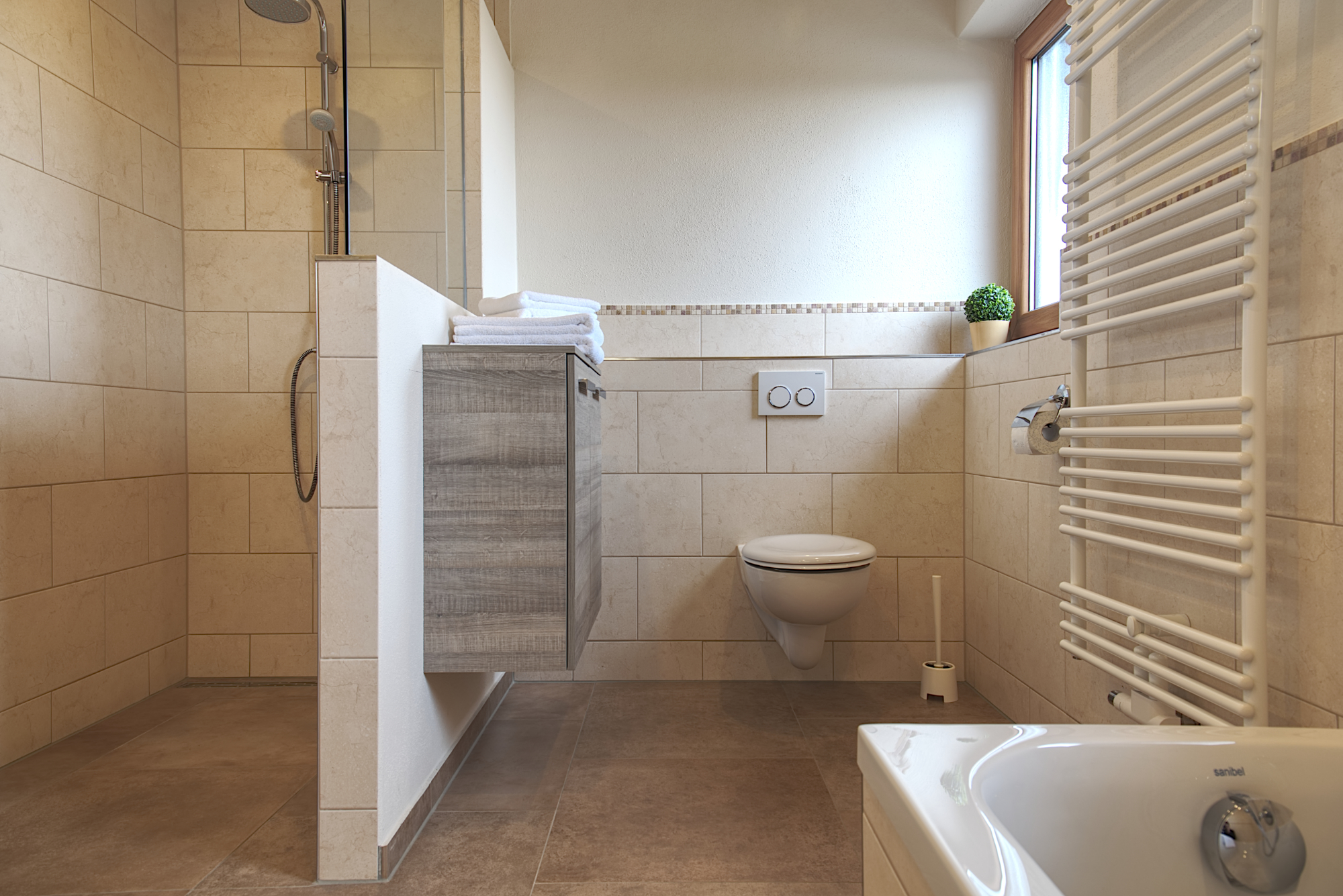 ERDGESCHOSS: Großes lichtdurchflutetes Wohnzimmer mit Sat TV + DVD und gemütlicher Couchlandschaft, voll ausgestatteter Küche mit Essbereich, ein Schlafzimmer mit Doppelbett, ein Schlafzimmer mit zwei Einzelbetten, sowie ein neues Bad mit Badewanne/Dusche/WC. OBERGESCHOSS: Zwei Schlafzimmer mit Doppelbett (Baby- oder Zustellbett möglich), ein neues Bad mit Dusche/WC. WEITERE AUSSTATTUNG: Garage und Parkplätze am Haus, abschließbarer Nebenraum für Ski oder Fahrräder, geschützte Terrasse mit Grillgelegenheit, Spiel- und Liegewiese, Waschmaschine und Bügeleisen, WLAN inklusive.