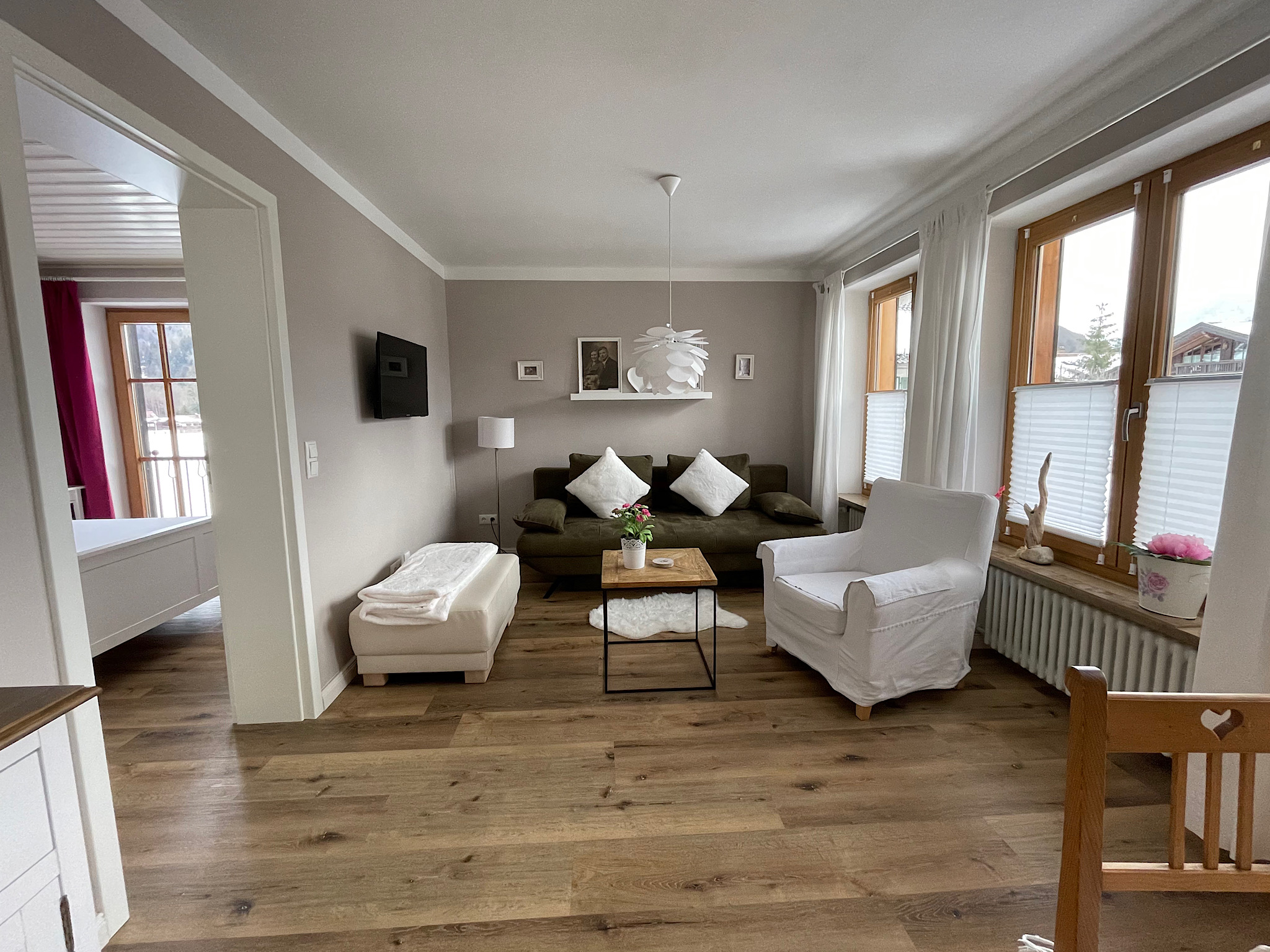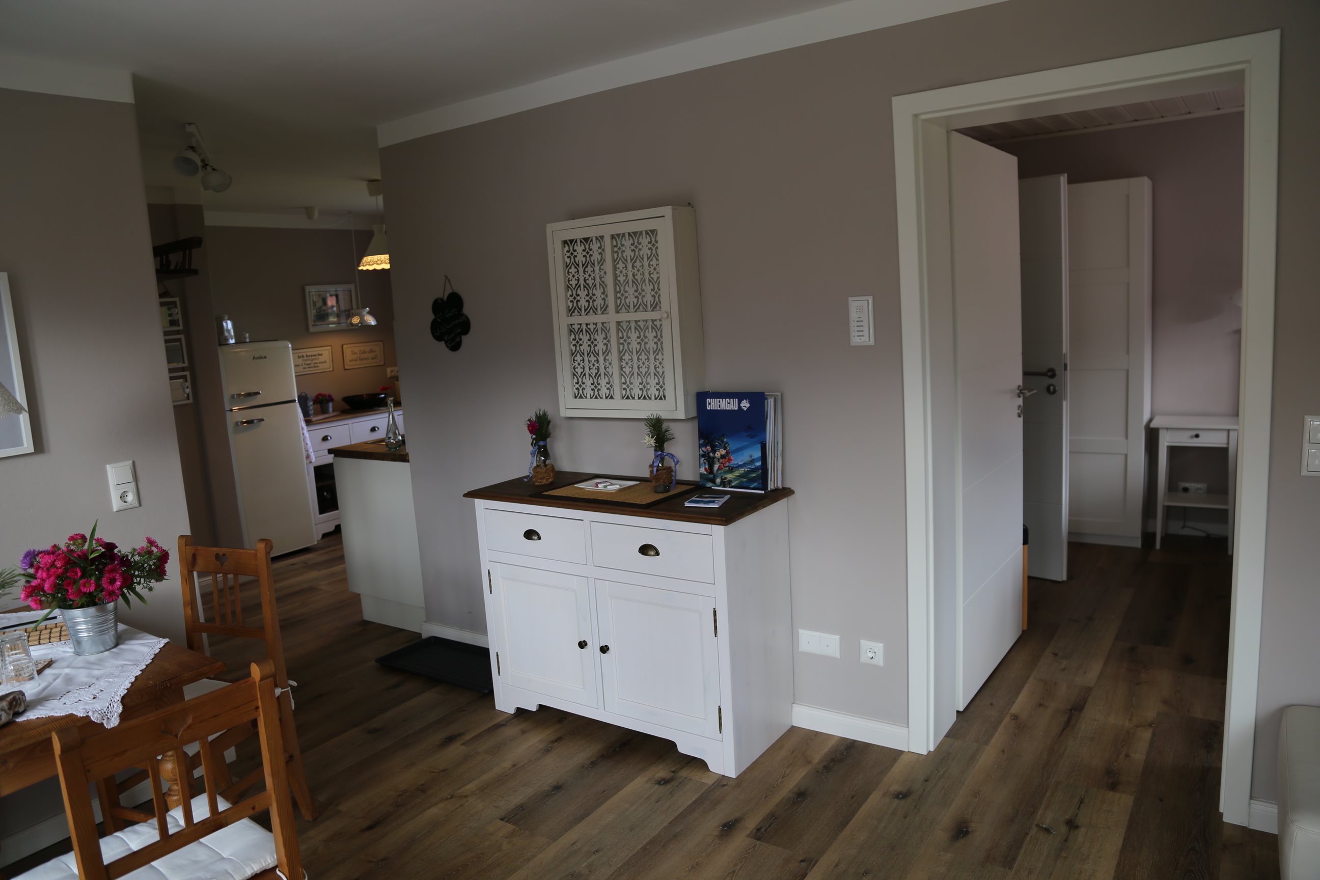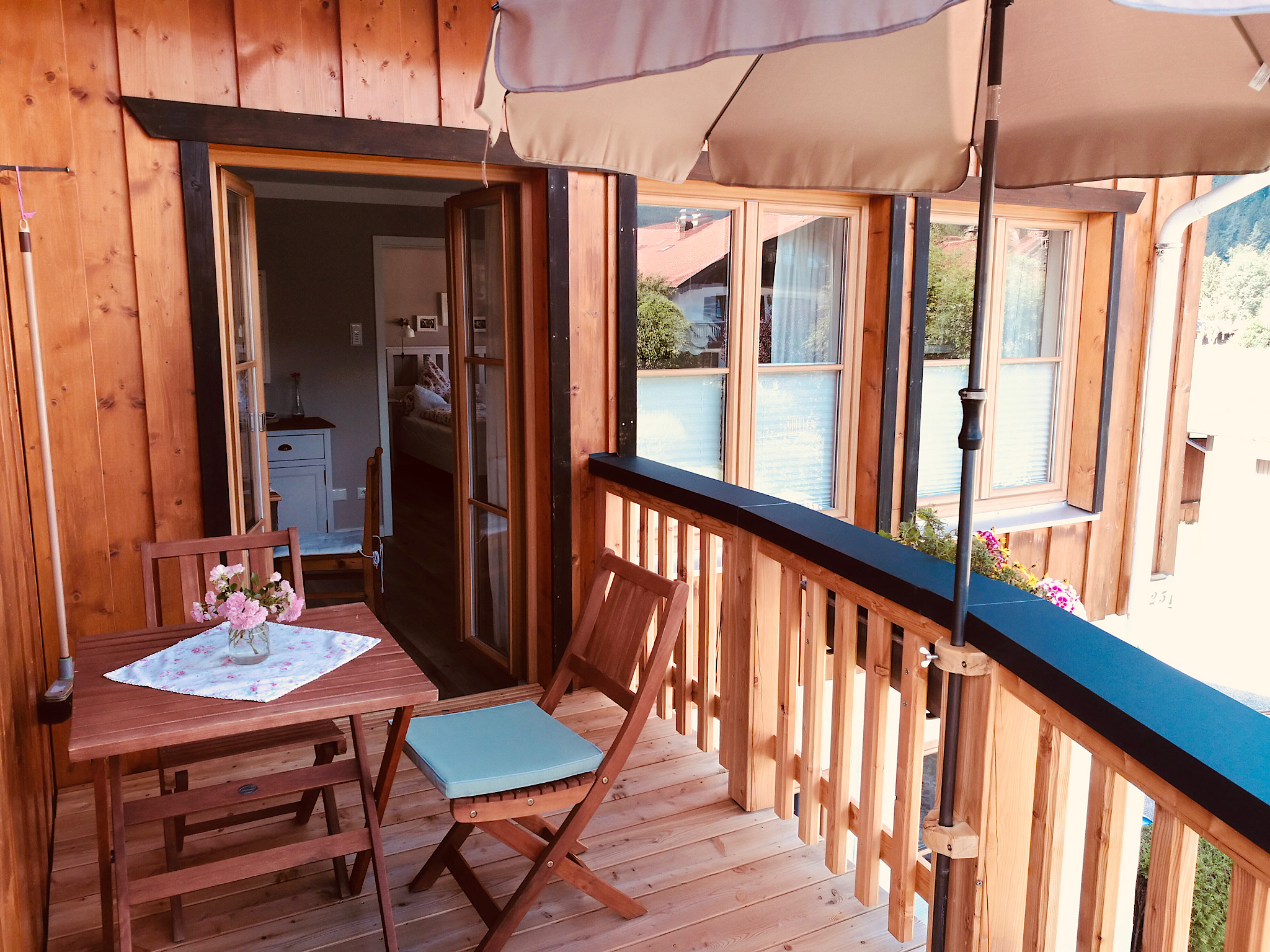 Liebevoll eingerichtete Ferienwohnung in ruhiger und zentraler Lage mit Blick auf den Rauschberg. Die Wohnung (45qm) ist gemütlich und verfügt über Balkon, Küche, Schlafzimmer, Wohnzimmer, kleines renoviertes Bad mit Dusche und WC. Zur Ortsmitte, Bushaltestelle, Bahnhof und Loipen sind es nur 5 Gehminuten. Einkaufsmöglichkeiten zu Fuß in 5 - 8 Minuten erreichbar, Bäckerei in 3 Minuten.