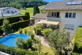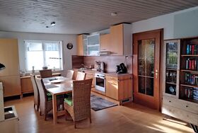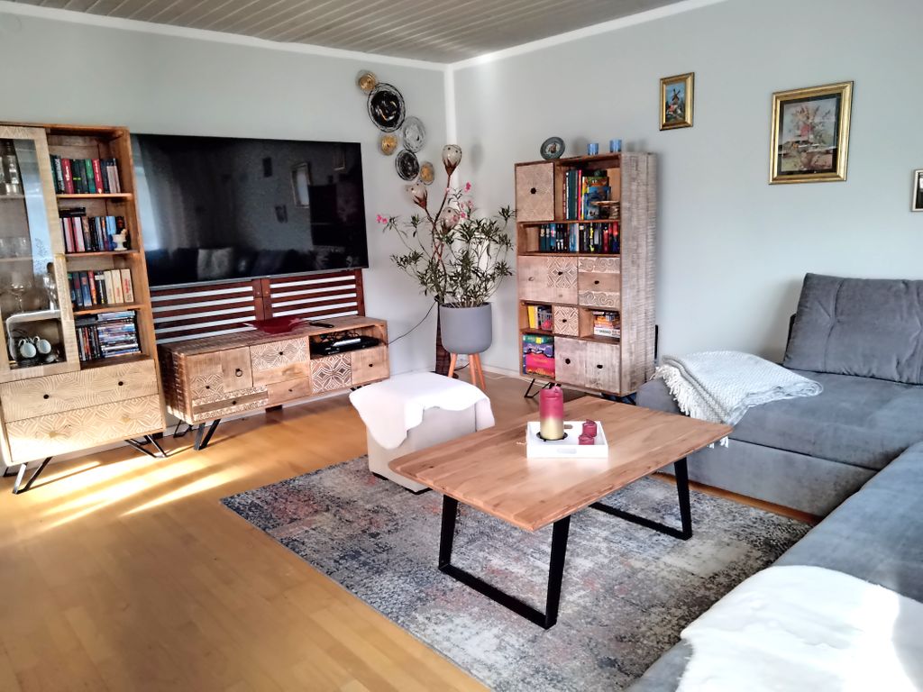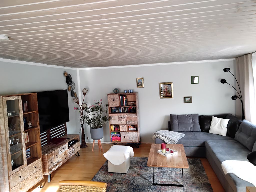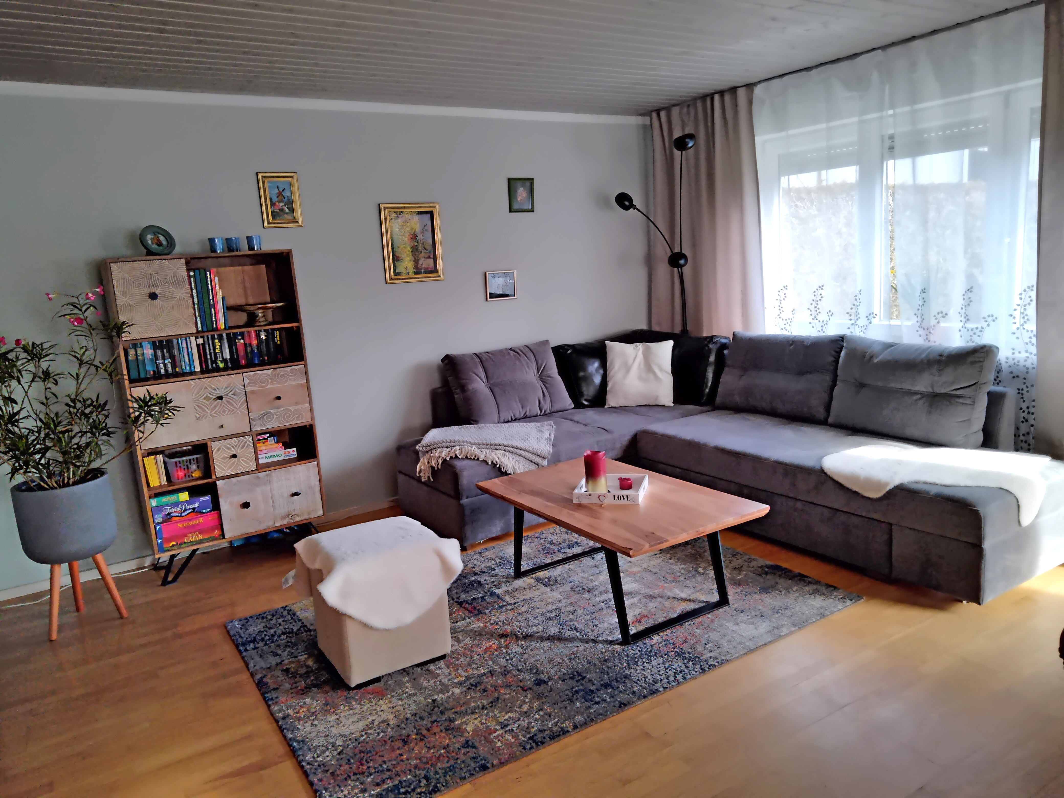 Nichtraucher Erdgeschoss-Wohnung 75 qm mit herrlichem Blick auf die Berge. Terrasse mit gemütlichen Rattan Möbeln und schönem Garten. Großzügiger und heller Wohnraum mit offener Küche und Esstisch. Fühlen Sie sich wohl im gemütlich eingerichteten Wohnraum mit großer Couch, Flat-Kabel-TV und kostenloses WLAN. Vollausgestatte Küche mit Spülmaschine, Herd mit Backofen, Kaffee-Pad-Maschine und großem Esstisch. Ein separates Schlafzimmer mit Doppelbett und zwei Einzelbetten als Stockbett. Badezimmer mit Dusch-/Badewanne, WC, Fön und Waschmaschine. Für Kinder haben wir eine Spielecke mit Spiel-Küche eingerichtet. Ein Hund darf gegen Aufpreis gerne mitgebracht werden.