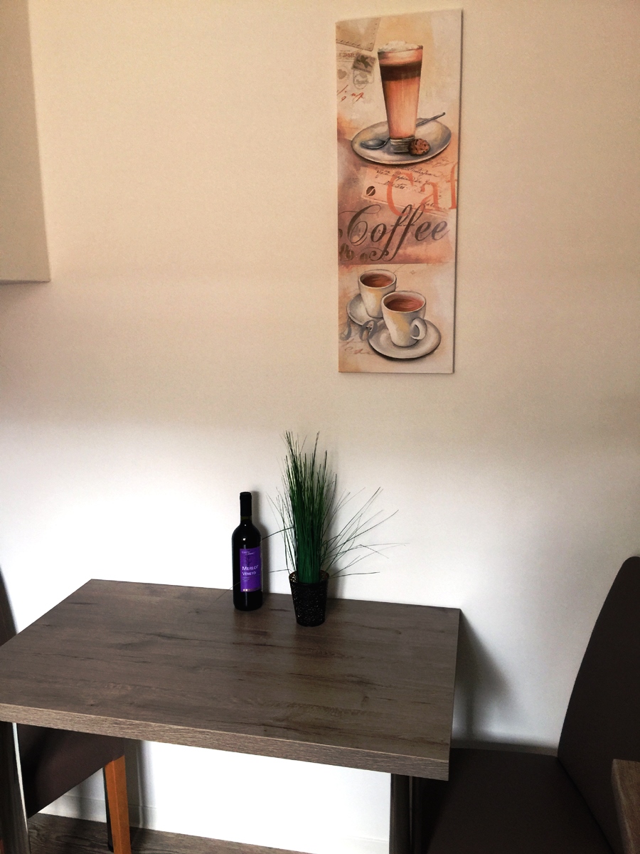 Das schöne moderne Appartement mit ca. 40 m² Wohnfläche lädt Sie zum Wohlfühlen ein. In der Wohnung befindet sich ein Schlafzimmer mit Doppelbett (1,80 x 2,00m) sowie ein Wohnraum mit Schlafcouch (1,60 x 2,00m). Die Wohnung ist ideal für zwei Erwachsene, aber auch für eine Familie mit zwei Kindern. Weitere Personen sind bei telefonischer Anfrage beim Gastgeber möglich. Die Wohnung verfügt über ein Bad mit großer Dusche, einen Fernseher sowie kostenfreies WLAN. Eine voll ausgestattete Einbauküche mit Wasserkocher, Kaffeepadmaschine sowie Salz, Pfeffer etc. ermöglicht es Ihnen, sich Ihr Frühstück oder Essen selbst zuzubereiten.