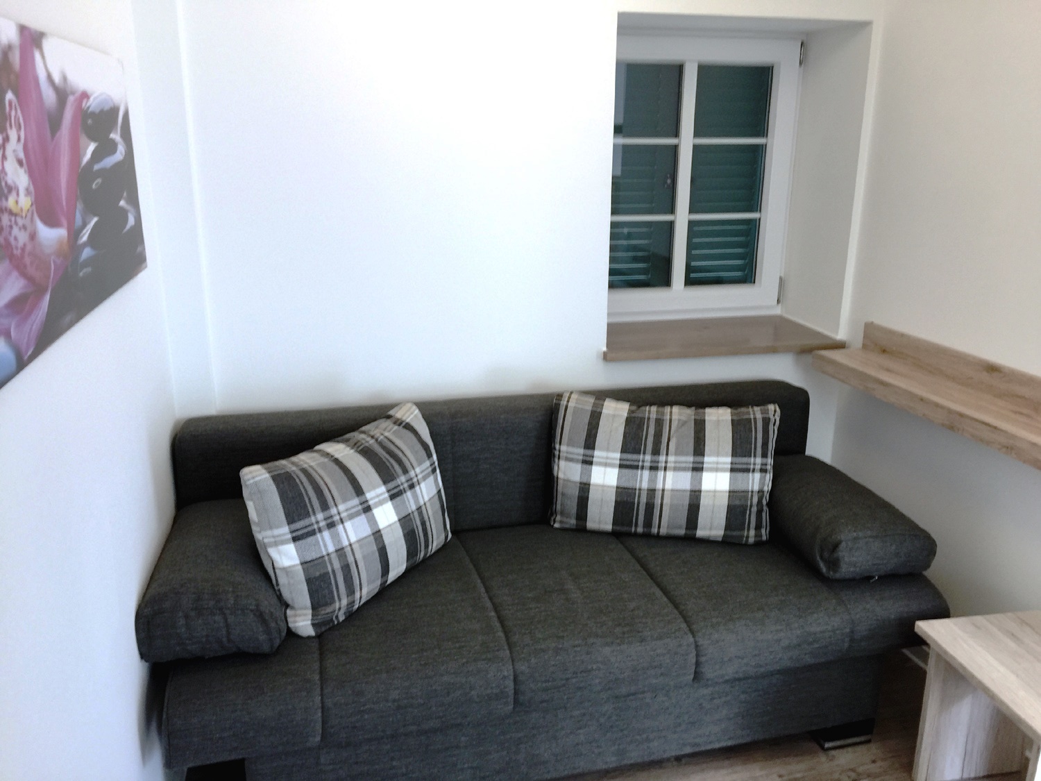 Das schöne moderne Appartement mit ca. 38 m² Wohnfläche lädt Sie zum Wohlfühlen ein. In der Wohnung befindet sich ein Schlafzimmer mit Doppelbett (1,80 x 2,00m) sowie ein Wohnraum mit Schlafcouch (1,60 x 2,00m). Die Wohnung ist ideal für zwei Erwachsene, aber auch für eine Familie mit zwei Kindern. Weitere Personen sind bei telefonischer Anfrage beim Gastgeber möglich.