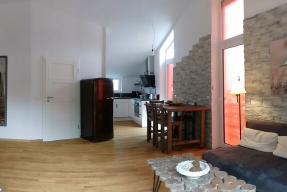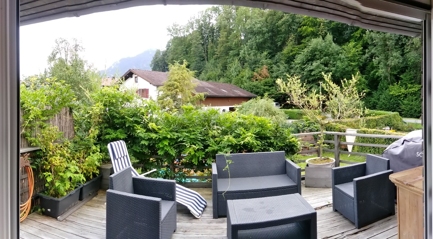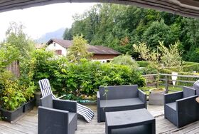 Neubau Loft-Wohnung mit großer Terrasse und bequemen Gartenmöbeln. In einer sehr ruhigen Lage im Ortsteil Brannenburg in der Nähe von Schloss Brannenburg. Direkt an den Wanderwegen.