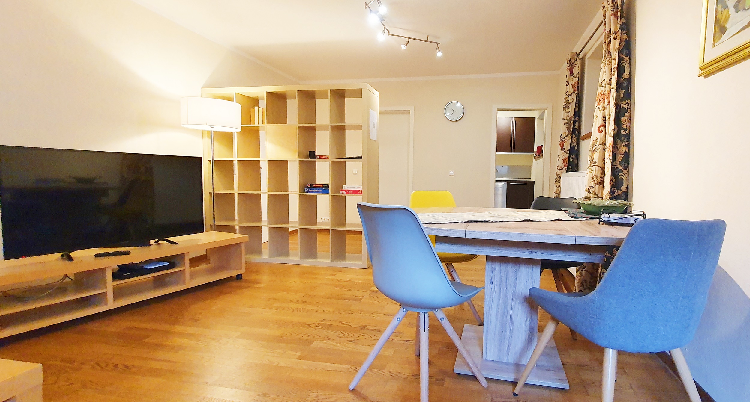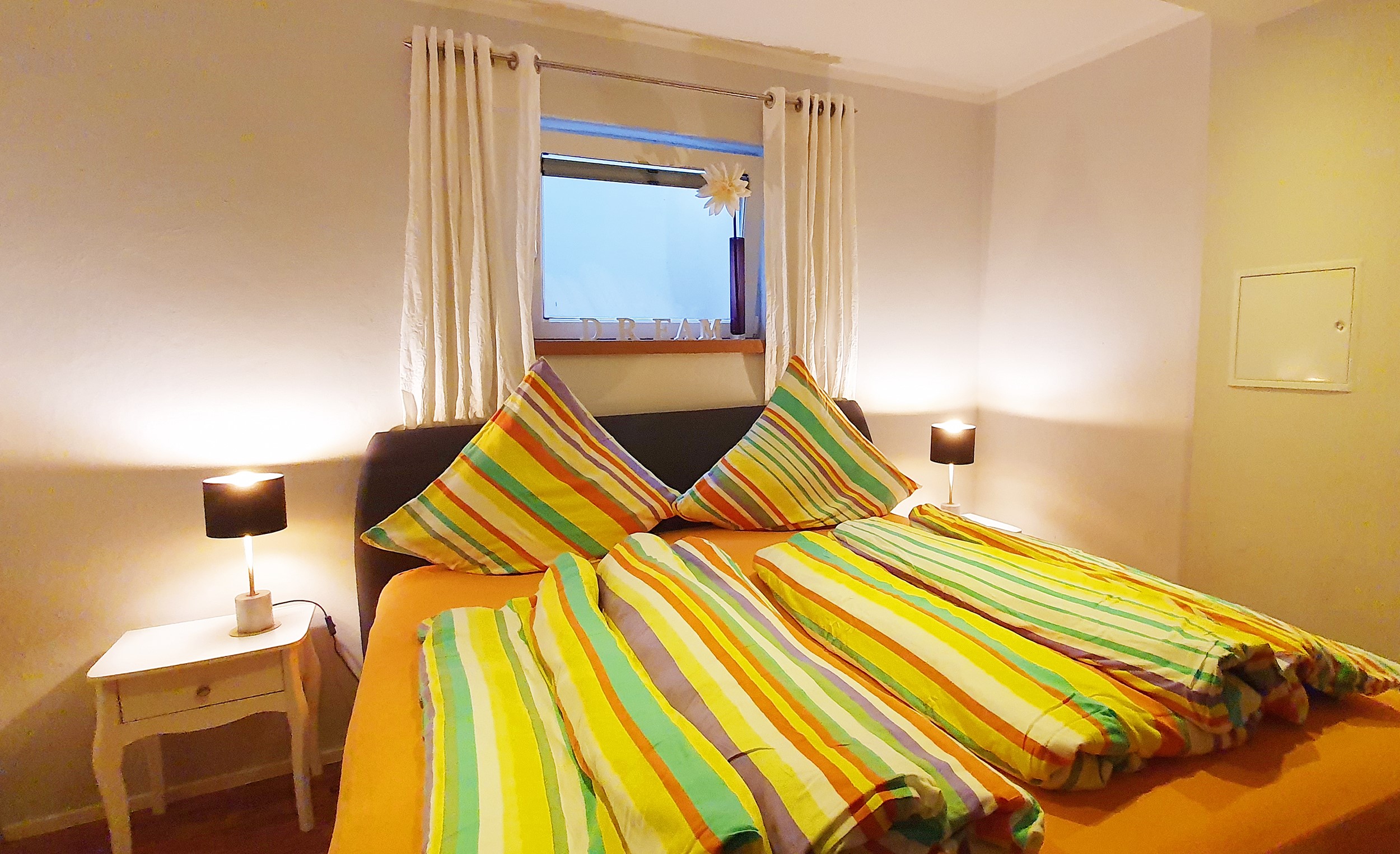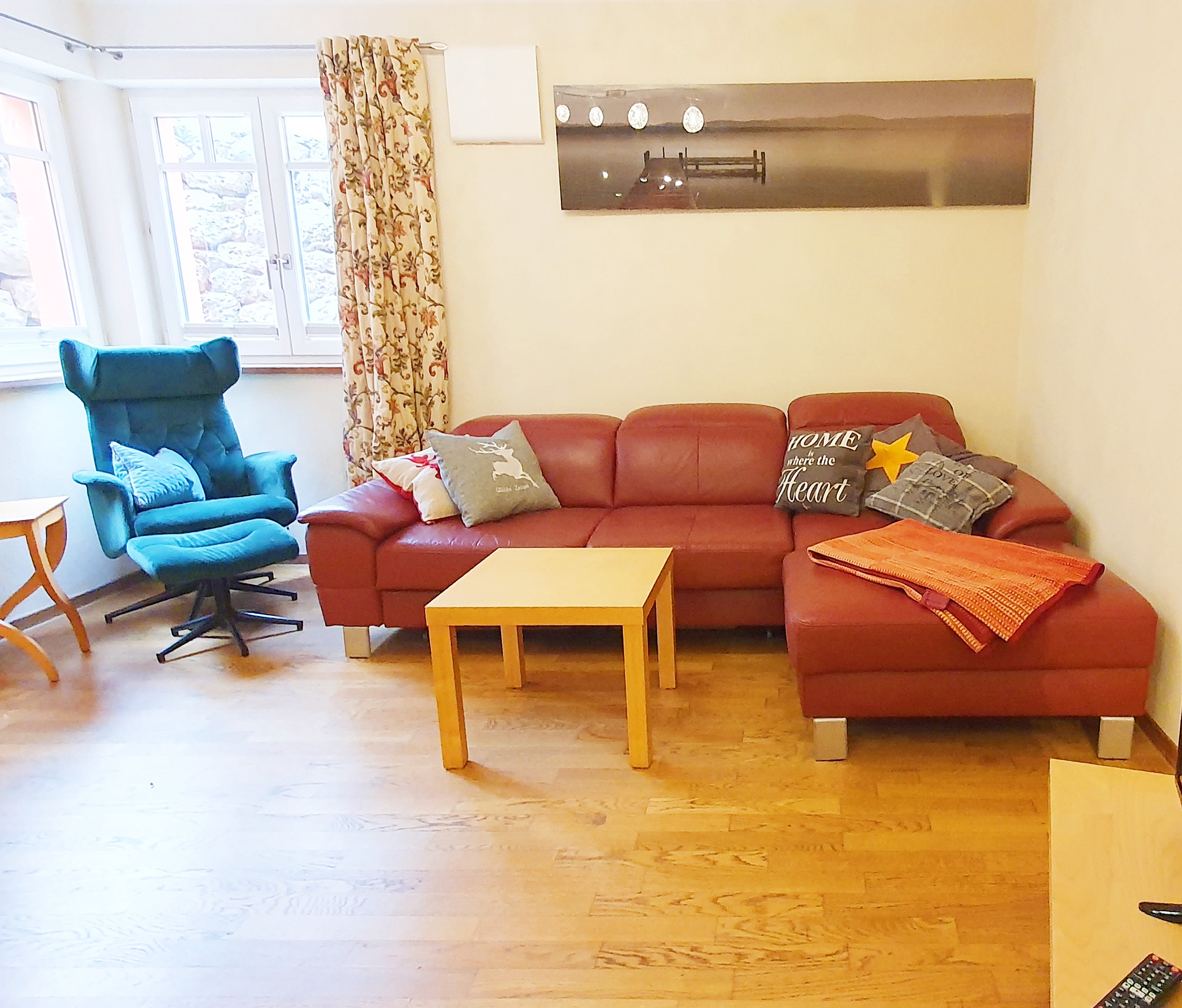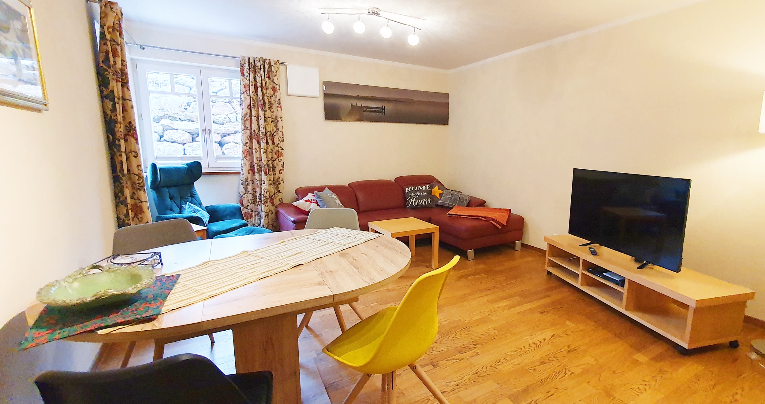 Die gemütliche Ferienwohnung im Souterrain verfügt über eine Küche, ein Schlafzimmer, Bad, Flur mit Garderobe sowie einen Wohn-Essbereich mit Schlafcouch. Ein eigener Zugang ist vorhanden. der Garten kann mitbenutzt werden. Parkplätze sind vor dem Haus vorhanden. Küche: voll ausgestattet mit Spüle, Geschirrspülmaschine, Kühlschrank mit Gefrierfach, Herd mit Cerankochfeld und Backofen, Kaffeeautomat und notwendiges Geschirr und Besteck. Schlafzimmer: Das Schlafzimmer verfügt über ein Boxspringbett. Nachtkästchen mit Nachtischlampen. Wohn-Esszimmer: Das Wohn-Esszimmer ist mit einer ausziehbaren Ledercouch, einem Tisch sowie einem Esstisch(ausziehbar) mit 4 Stühlen, einen Flachbildfernseher mit Satellitenempfang Blue-Ray-Player sowie einem Radio ausgestattet. Badezimmer: Das Badezimmer ist mit einem WC, einem Waschbecken sowie einer bodenebenen Dusche ausgestattet. Sonstiges: Kostenloses WLAN. Im Apartment sind Haustiere erlaubt, Waschmaschine vorhanden, Wäschetrockner kann vom Vermieter mitbenutzt werden. Endreinigung ist im Preis enthalten. Spülmaschinentabs und Spülmittel stehen kostenlos zur Verfügung. Bereitstellung der Bettwäsche, Regelmäßiger Handtuchwechsel, Nichtraucher