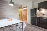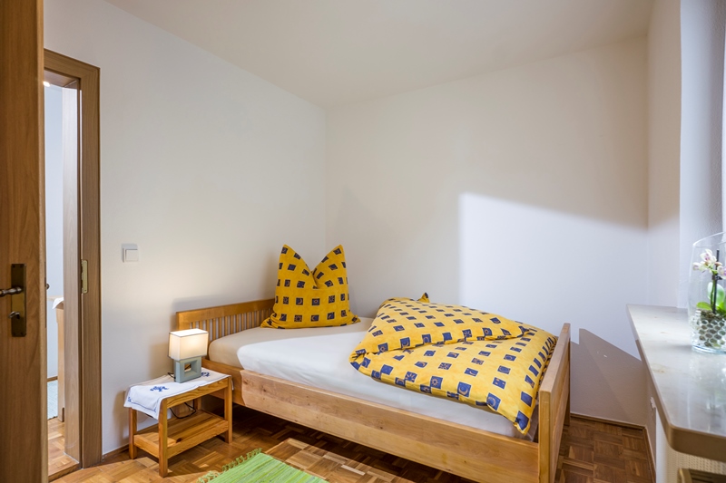 Die Ferienwohnung verfügt über ein Schlafzimmer mit einem Doppelbett und ein Schlafzimmer mit einem Bett (1,20m breit und 2m lang). Großes Badezimmer mit WC und Dusche. Das große Wohnzimmer wird mit einem großem Essbereich ergänzt; direkter Zugang zur Hochterrasse. Die neuwertige Küche ist mit Toaster, Wasserkocher, Kaffeemaschine, Geschirrspüler, Backofen, großen Kühlschrank und einem Essbereich ausgestattet.