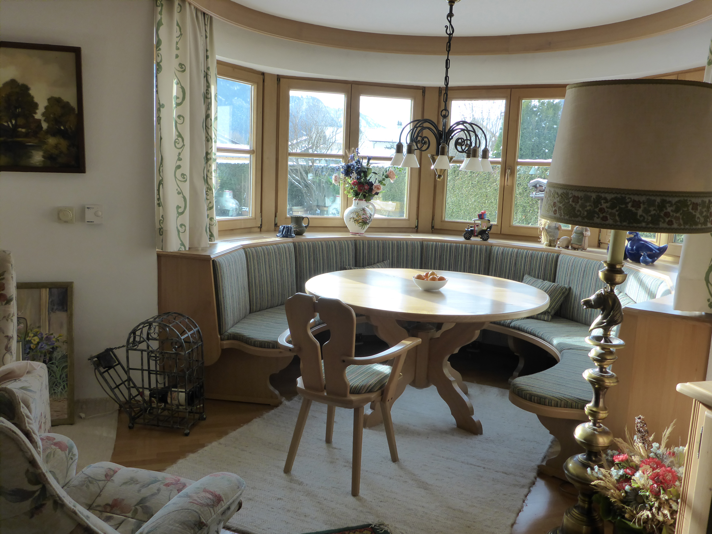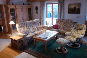 Liebevoll eingerichtete 106 qm Komfortwohnung mit schöner Süd-Terrasse und Garten, Sie haben einen herrlichen Blick auf die Berge. Großzügiges und geschmackvoll eingerichtetes Wohn- und Esszimmer mit Sitzgruppe zum Fernsehen, TV, kostenloses WLAN und einem großen Tisch zum Essen, ein heller Erker mit rundem Tisch lädt zum Zusammensitzen ein. Voll ausgestattete extra Küche mit allen elektrischen Geräten und Geschirrspüler. Ein separates Schlafzimmer mit Doppelbett, zusätliche Schlafmöglichkeit im Lesezimmer mit Schreibtisch und versenkbarem Einzelbett. Zwei Bäder: 1x mit Badewanne, Bidet und WC und 1 x mit Dusche/WC und Fön. Hunde und Haustiere dürfen nicht mitgebracht werden.