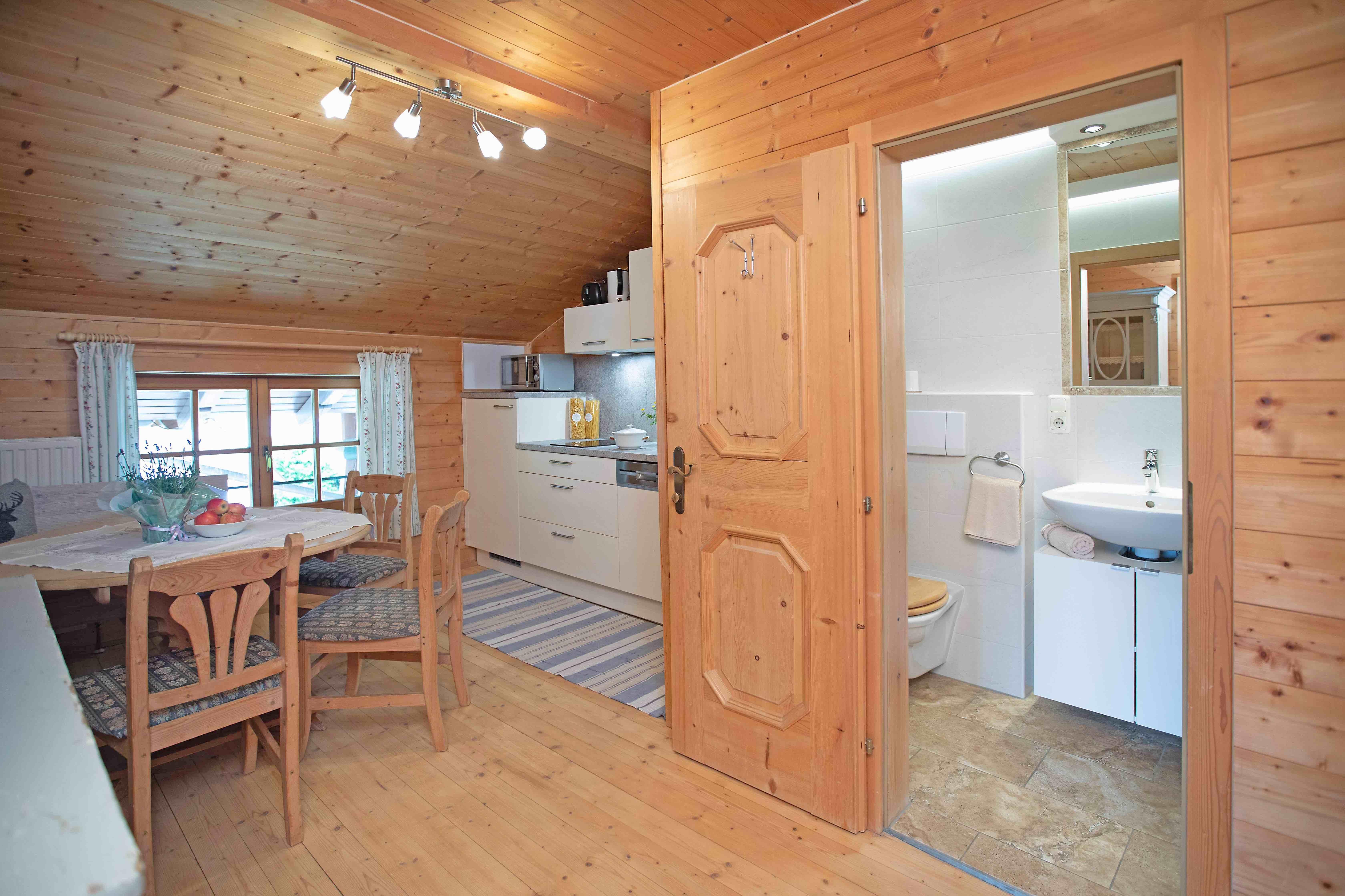 Kostenloser W-Lan,Komfortabel, hell und gemütlich eingerichtete Ferienwohnung, voll ausgestattete Küche, 2 Schlafzimmer je mit Du/WC und TV, großer Balkon mit freiem Blick auf den Walchsee und das Kaisergebirge