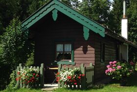 Unsere Ferienhütte liegt ruhig und edyllisch neben einem Gebirgsbach und unseren Bauernhaus. Von den zwei Terassen haben Sie direkten Blick auf die Wiese, auf der unsere Schafe den Sommer genießen dürfen. Die Hütte ist bäuerlich - rustikal eingerichtet und für eine bis zu drei Personen (auf Anfrage ggf. 4 Personen möglich) ausgestattet. Eine seperate Küche sowie ein abgetrennter Essbereich laden zu netten Abenden ein. Das Schlafzimmer mit Doppelbett ist vom Wohnzimmer mit Schlafsofa ebenfalls abgetrennt. Jedoch ist bei Buchungen ab 3 Personen zu beachten, dass das ausziehbare Schlafsofa im Wohnzimmer als Schlafplatz genutzt wird. (Wohnzimmer = Durchgangszimmer)