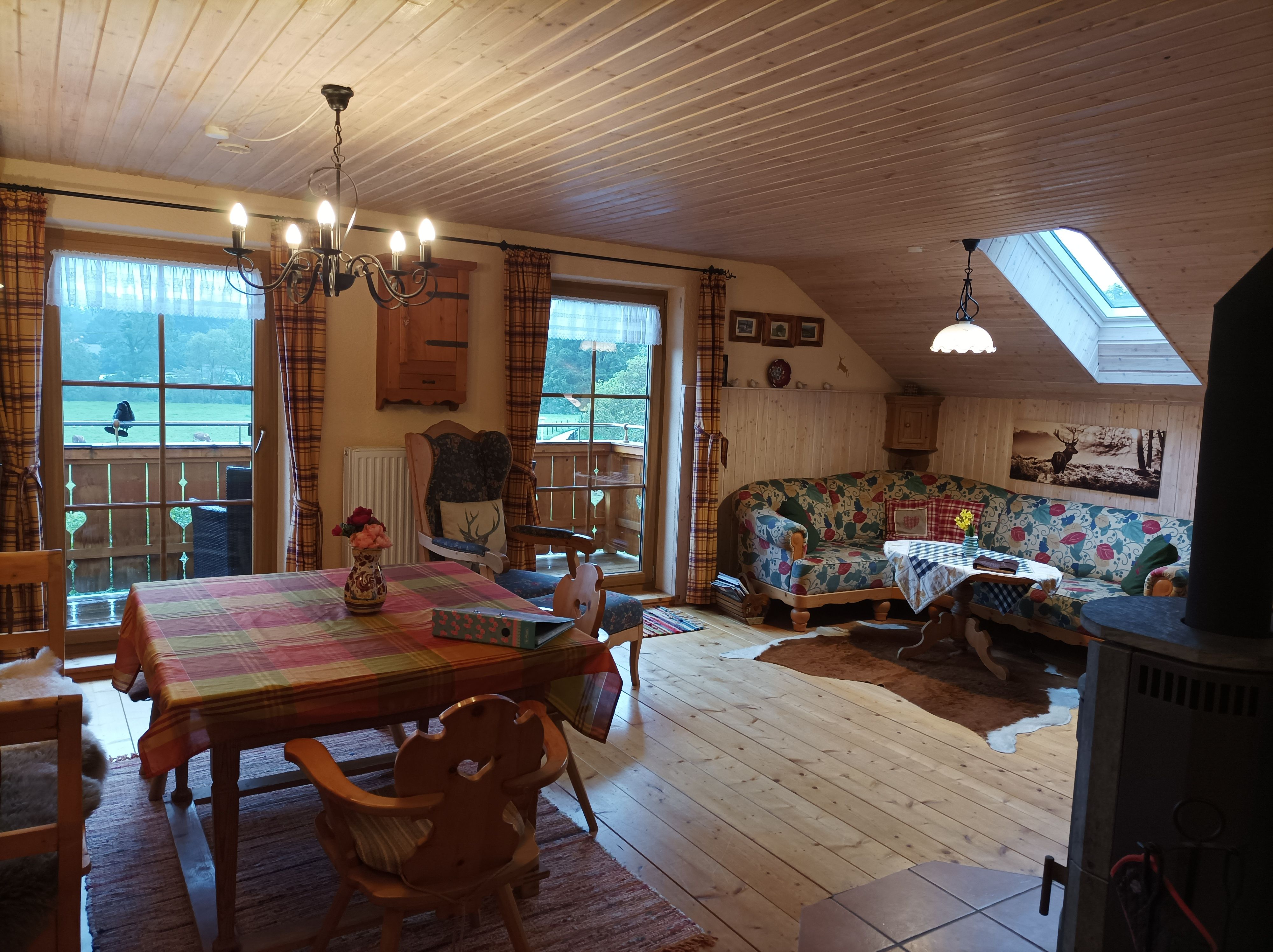 Die im Landhausstil eingerichtete F**** Ferienwohnung Bergstation für 1 bis 4 Personen befindet sich im 2. Obergeschoss des Dopplerhofs. Die Bergstation hat einen Balkon, Richtung Osten mit Blick auf den Untersberg. Es steht Ihnen zusätzlich ein separater Garten mit Wintergarten und Grill zur gemeinsamen Nutzung mit den Gästen der Wohnung Schutzhütte zur Verfügung. In der Bergstation befindet sich ein Schwedenofen, Brennholz ist inclusive. 2 Schlafzimmer mit Doppelbetten. Klapp- und Babybett auf Wunsch. Großes Wohnzimmer mit Essgruppe, Sofa, Fernseher, Sat-Anschluss, kostenloses WLAN, Stereoanlage und DVD-Player (Filme zum Ausleihen) stehen zur Verfügung. Offene Gestaltung der Küche mit Bartheke, Backofen, Cerankochfeld, Kühl-Gefrierkombi, Spülmaschine. Badezimmer mit Duschkabine und WC. Abschließbarer Raum für Fahrräder und Skier. Kostenloser Schlitten- und Fahrradverleih. Buchbar ab 4 Nächte.