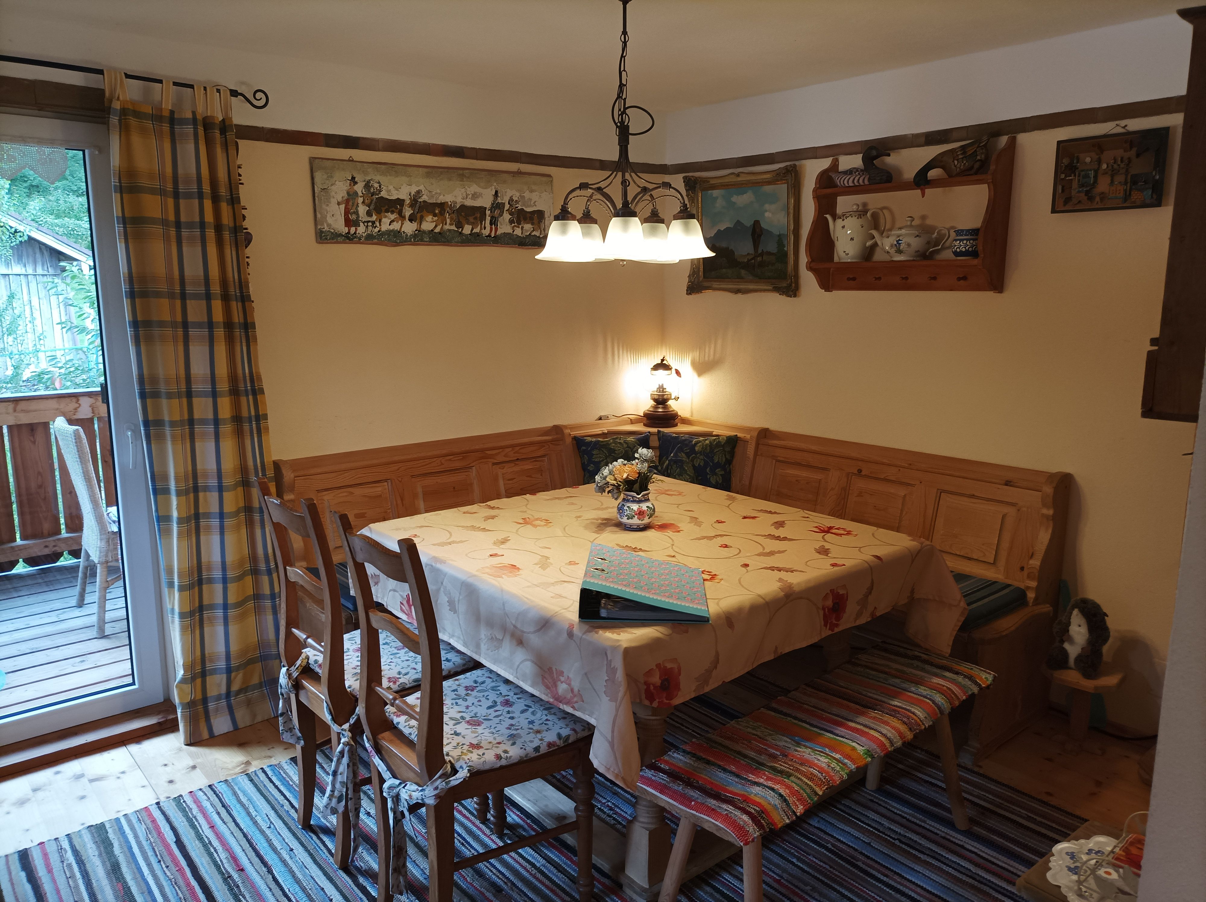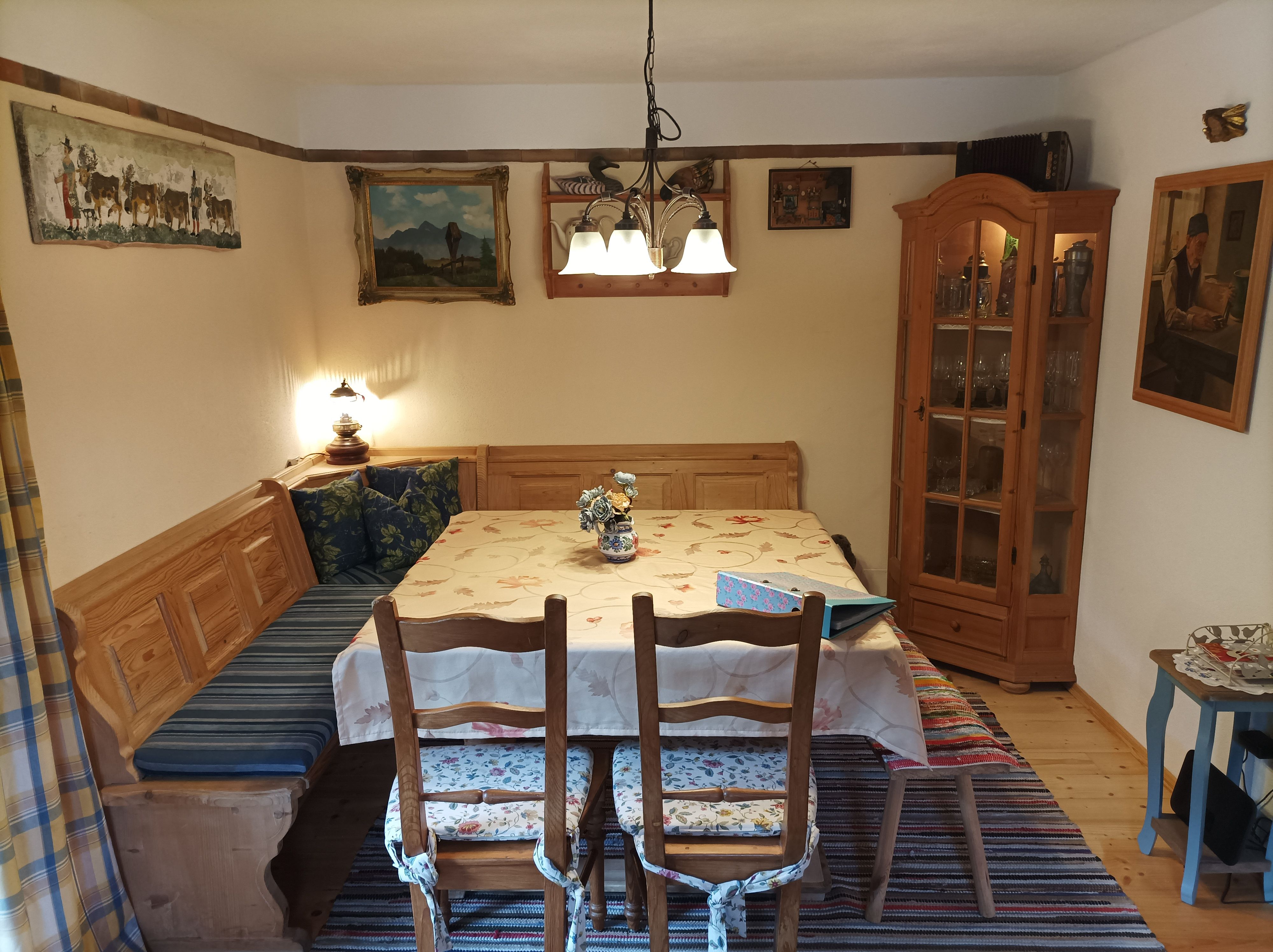 Die im Landhausstil eingerichtete F**** Ferienwohnung Schutzhütte für 1 bis 7 Personen befindet sich im 1. Obergeschoss im Nebenhaus des Dopplerhofs. Die Schutzhütte hat ein Wohnzimmer, eine offene Küche mit extra Esszimmer, 4 Schlafzimmer, davon 2 mit je einem Doppelbett, 1 mit einem Einzelbett und 1 mit 2 Einzelbetten, 1 Leseraum, Dusche/WC und einen großen Balkon zur Straße gerichtet, sowie einen Balkon zur großen Wiese gerichtet. Richtung Süd-Osten mit Blick auf den Untersberg. Auf dem großen Balkon steht Ihnen ein Grill mit Gartenmöbeln zur Verfügung. Unter diesem Balkon befindet sich ein Garten / Spielplatz. Es steht Ihnen zusätzlich ein separater Garten mit Wintergarten und Grill zur gemeinsamen Nutzung mit dem Gäste vom Dopplerhof zur Verfügung. Sehr großes Wohn-Esszimmer mit Bartheke zur offen Küche. Abschließbarer Raum für Fahrräder und Skier. Kostenloser Schlitten- und Fahrradverleih. Bitte beachten Sie, dass die Wohnung nur 1 Bad, bzw. 1 Toilette hat. Somit kann es bei größerer Belegung zwangsläufig zu Wartezeiten kommen. Buchbar ab 5 Nächte.