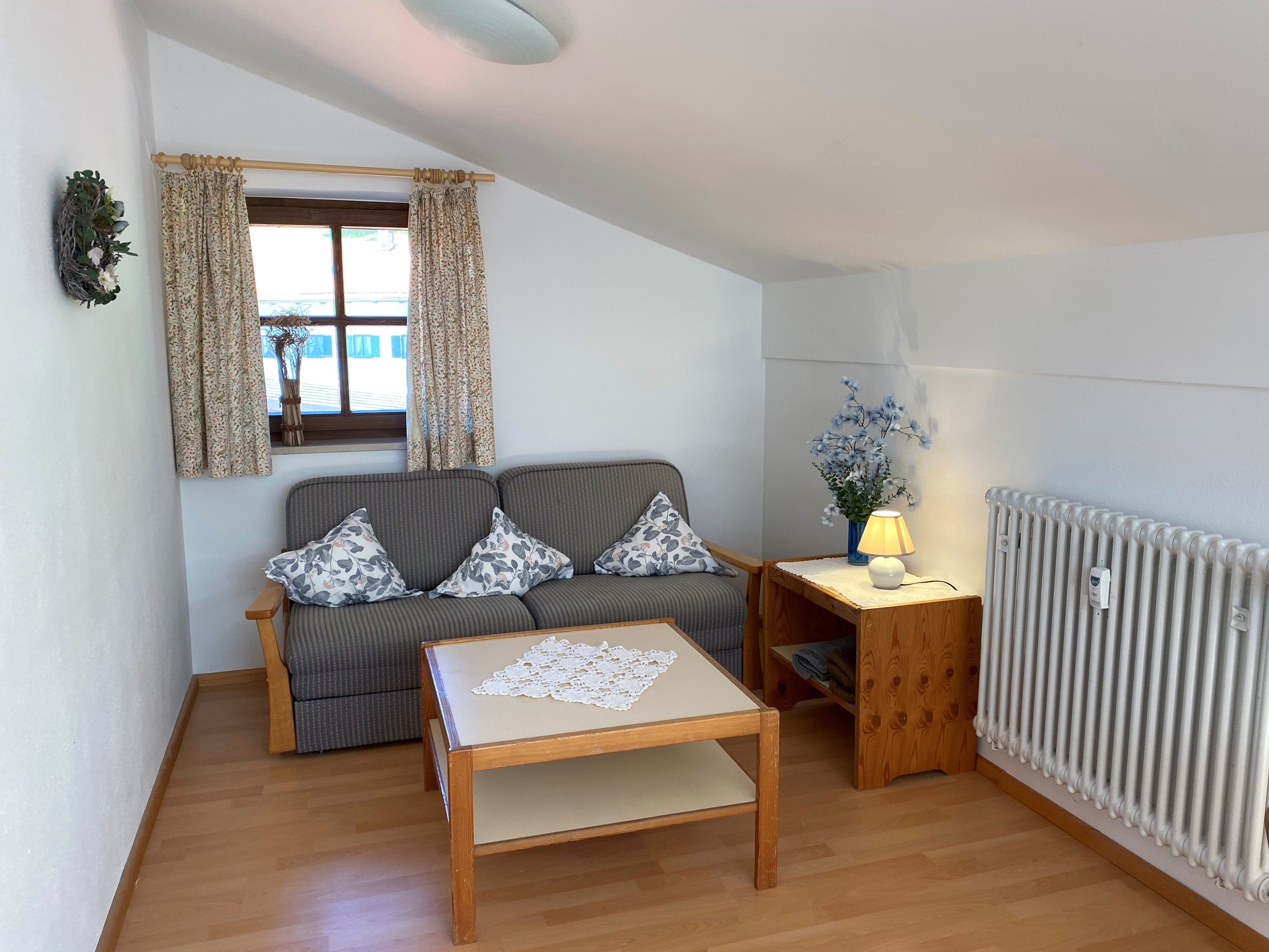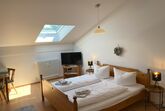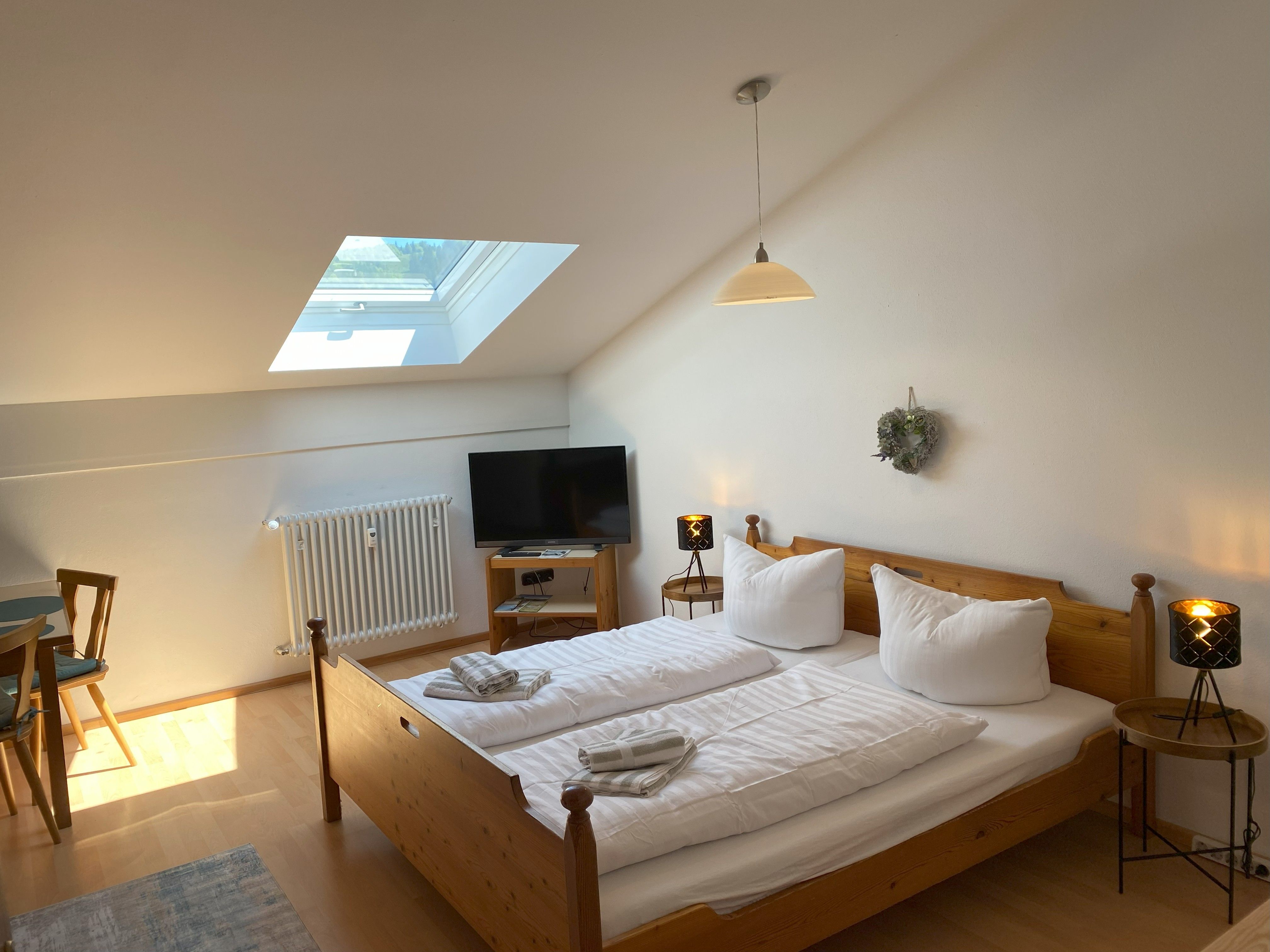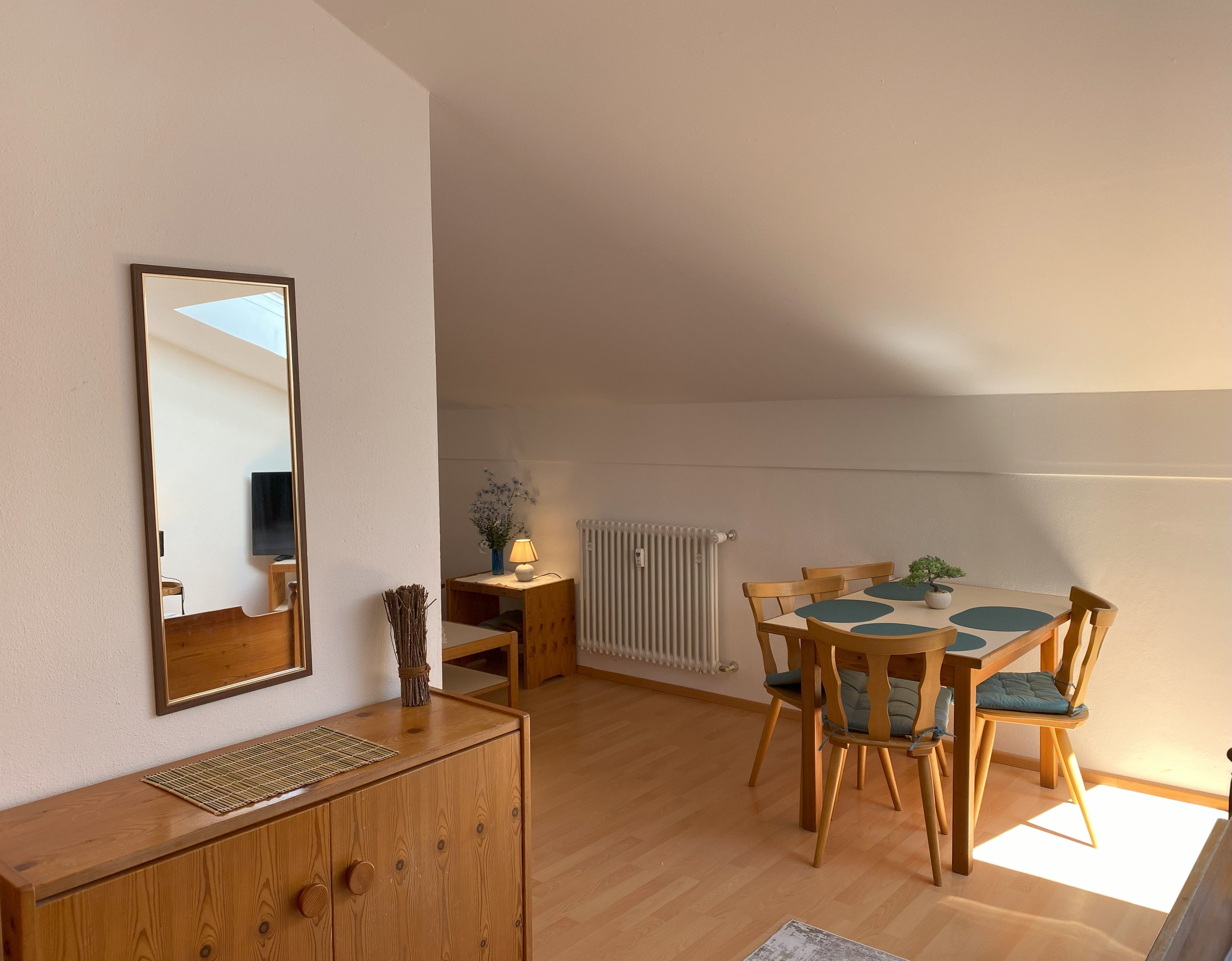 Gemütliche Ferienwohnung für bis zu 3 Personen – Ihr perfektes Zuhause auf Zeit! Willkommen in unserer liebevoll eingerichteten Ein-Zimmer-Ferienwohnung mit 35 qm Wohnfläche – ideal für 1 bis 3 Personen! Die stilvolle Ausstattung mit Vinyl-Bodenfliesen sorgt für eine angenehme Atmosphäre, während Sie sich im freundlich eingerichteten Wohn- und Schlafbereich mit Doppelbett und ausziehbarer Schlafcouch entspannen können. Ein Essplatz im Wohnraum bietet genügend Platz, um gemeinsame Mahlzeiten zu genießen – sei es ein gemütliches Frühstück oder ein entspannter Abend mit leckerem Essen. Für Unterhaltung ist bestens gesorgt: Ein TV und kostenloses WLAN stehen Ihnen zur Verfügung. Die Kochnische mit Einbauküche, 2-Zonen-Kochfeld, Kaffeemaschine, Kühlschrank und Wasserkocher bietet alles, was Sie für die Zubereitung Ihrer Lieblingsgerichte brauchen. Das Badezimmer verfügt über eine Dusch-/Badewanne, ein WC und Fön, damit Sie sich nach einem erlebnisreichen Tag erfrischen können. Haustierliebhaber aufgepasst: Ein Hund darf gegen Aufpreis gerne mitgebracht werden!