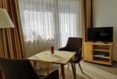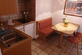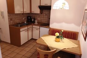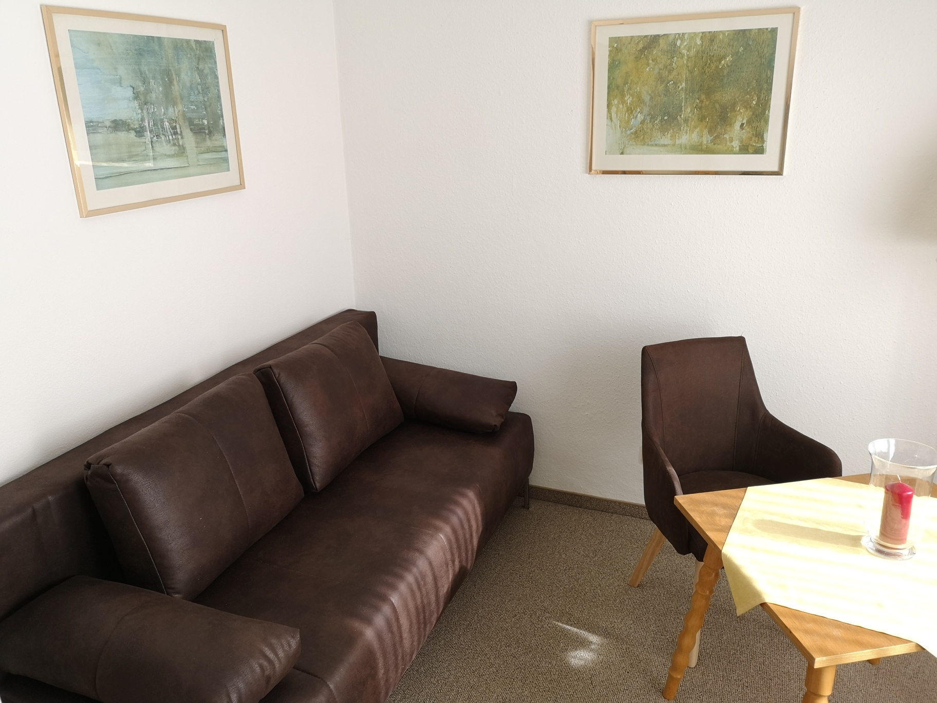 Die Ferienwohnung mit rd. 44 m² Wohnfläche im Erdgeschoss besteht aus einem Schlafzimmer mit Doppelbett und einem hellen Wohnraum (zusätzliche Schlafmöglichkeit für 2 Personen), Ausziehcouch, einer Kochnische mit Küchenausstattung, einer Dusche mit WC, einer separaten Toilette und einem großen Südbalkon. Sie ist für maximal 4 Personen geeignet.