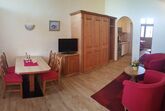 Wohn/Schlafraum, 2 separate Schlafzimmer (Doppelbett, 2 Betten hintereinander), Schrankbett, Essecke, komplett eingerichtete Kochnische, Kühlschrank, Tiefkühlfach, 2-Platten-Herd, Mikrowelle, Geschirrspülmaschine, Dusche/WC, Föhn, Balkon, Zimmersafe, Telefon, SAT-TV, kostenloses W-Lan, Radiowecker, Stereoanlage