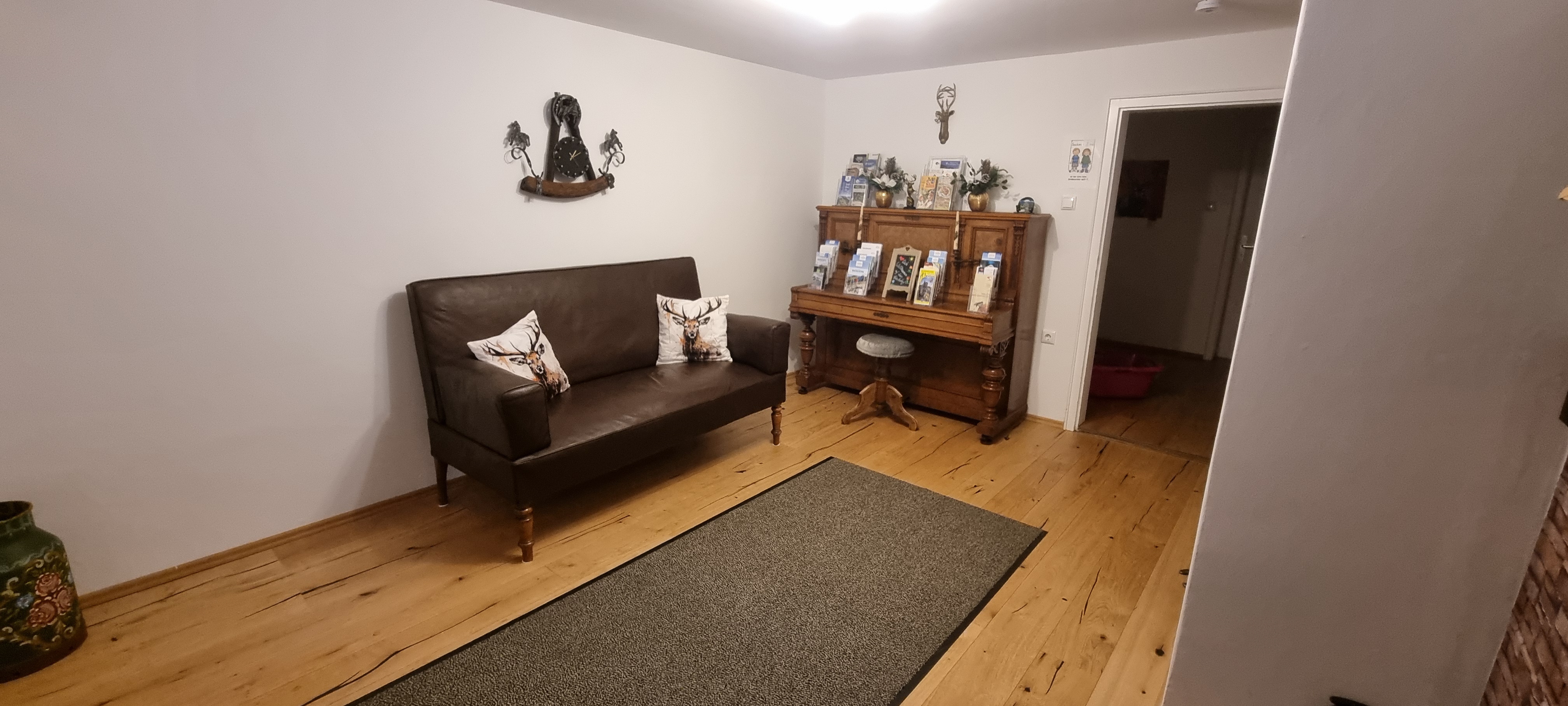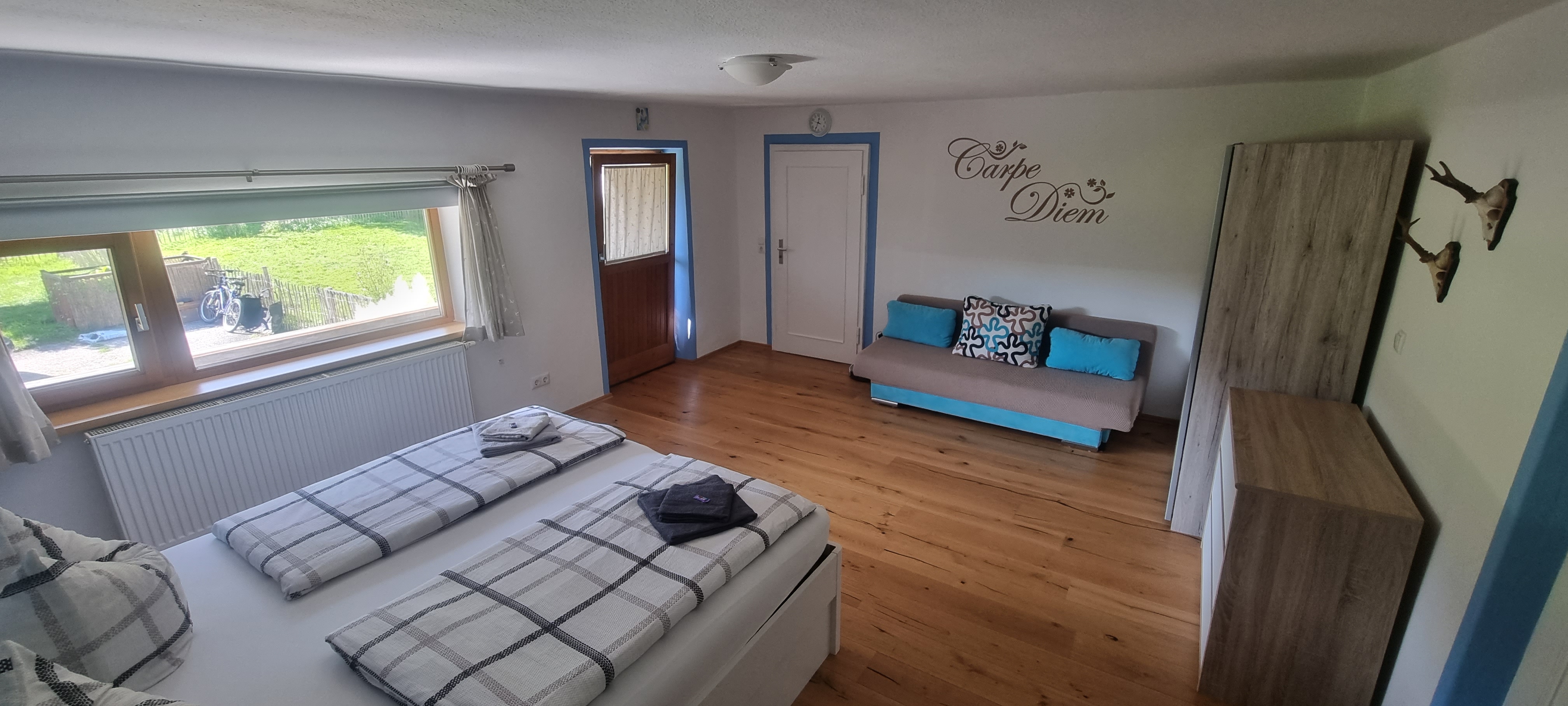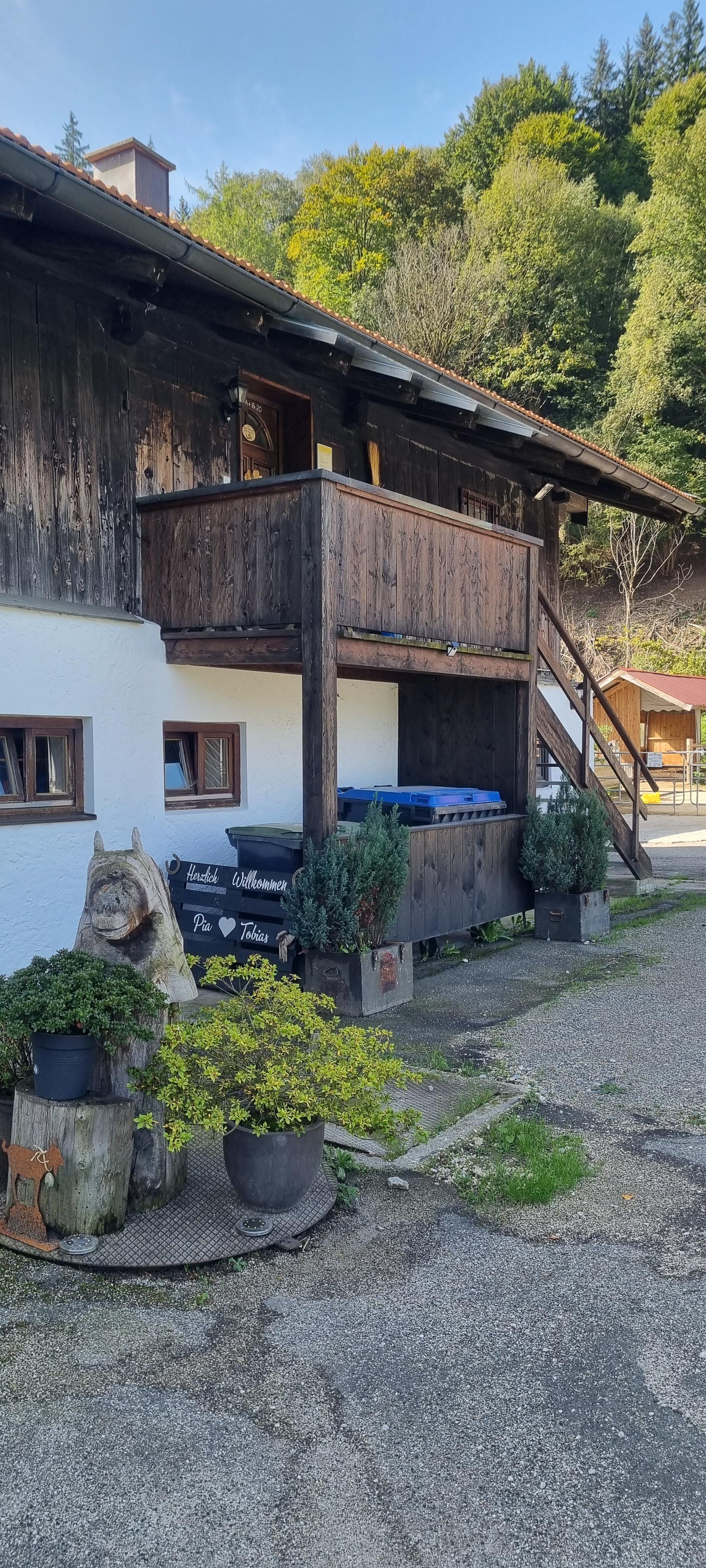 Die Ferienwohnung mit gehobener Ausstattung und separatem Eingang erstreckt sich über 130 qm und befindet sich im OG eines ca. 500 Jahre alten Bauernhauses (Denkmalschutz) in idyllischer Alleinlage (Einödhof) in der Gemeinde Flintsbach Ortsteil Fischbach. Für die ganz kleinen Gäste stehen zwei Kinderbetten (gegen Aufpreis) sowie ein Hochstuhl bereit. Und damit es nicht langweilig wird, haben wir auch eine kleine Spielecke eingerichtet. Auf Wunsch finden in zwei der drei Schlafzimmer noch Zustellbetten für je zwei Personen Platz. So können maximal 10 Personen untergebracht werden. Auf unserem Hof, umgeben von Obstgärten, wohnen Hunde, Katzen, Schafe, Ziegen und Pferde.
