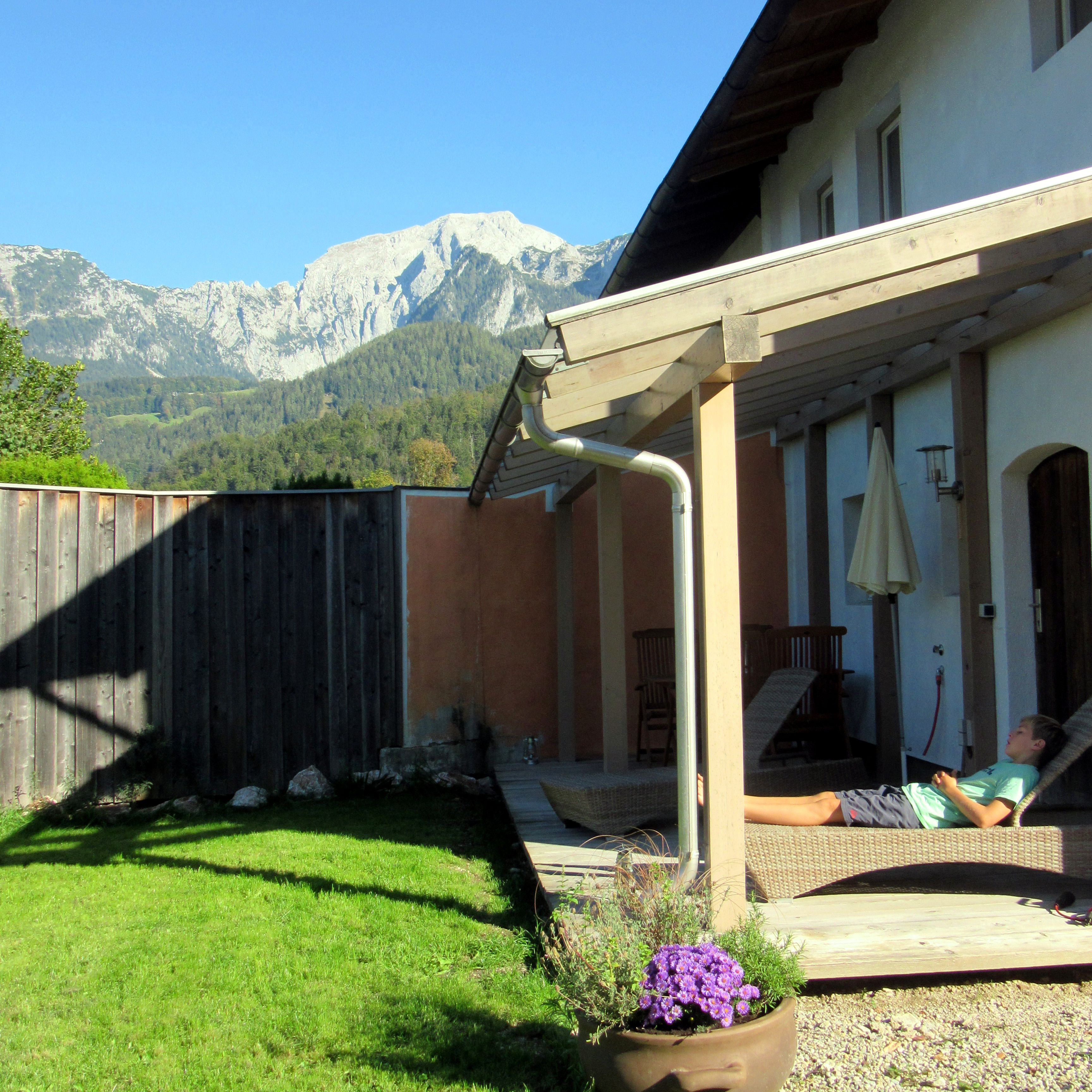 Ferienhaus Kaffeesatz – Geschmackvoller Urlaub am KönigsseeMitten in Schönau am Königssee, zentral im Tal und gleichzeitig in einer ruhigen Umgebung, findet sich dieses besondere Ferienhaus. Absoluter Pluspunkt: Die glasüberdachte Terrasse und davor eine eigene Liegewiese. Hochwertig, auf einander abgestimmt und gemütlich ist die Inneneinrichtung des Ferienhauses Kaffeesatz. Das Wohnzimmer besticht mit einem großen Panoramafenster, Ledersofa, Fernseher, Musikanlage und Holzparkettboden. Gegessen wird an einem großen Eichentisch. Die Küche ist vollständig ausgestattet mit Herd, Backofen, Spülmaschine, Kaffeemaschine, Mikrowelle, Rührgerät, Toaster und Saftpresse. Einen Akzent setzt der moderne Kühlschrank im Stil der Sixties.Die drei Schlafzimmer sind jeweils mit einem Schrank sowie zweimal mit Doppelbett und einmal mit zwei Einzelbetten eingerichtet. Im modernen Bad mit reichlich Platz für Utensilien steht eine Waschmaschine. Im ersten Stock befinden sich eine gemütliche Leseecke und ein Schreibtisch, ein separater Raum im Erdgeschoß eignet sich zum Unterstellen von Fahrrädern oder Kinderwagen. Der Königssee ist zu Fuß in ca. 20 Minuten erreichbar. In die andere Richtung führt ein Fußweg immer am Fluss entlang bis zum Bahnhof Berchtesgaden. Die Hochebene der Oberschönau lädt zu ausgiebigen Spaziergängen ein. Radtouren beginnen direkt ab der Haustür. Zum Bäcker, ins bairische Gasthaus oder zur Pizzeria sind es nur wenige Meter. In unmittelbarer Nähe des Ferienhauses ist ein öffentliches Freibad. Zum Königssee - und damit auch zum Nationalpark Berchtesgaden sind es 2,6 km, ins historische Ortszentrum von Berchtesgaden 6 km, zur Jennerbahn 2,7 km. Die Mozartstadt Salzburg erreichen Sie mit dem Auto in 30 Minuten. Das Ferienhaus ist idealer Ausgangspunkt für Wanderungen, Bergtouren, Radtouren oder zum Skifahren.