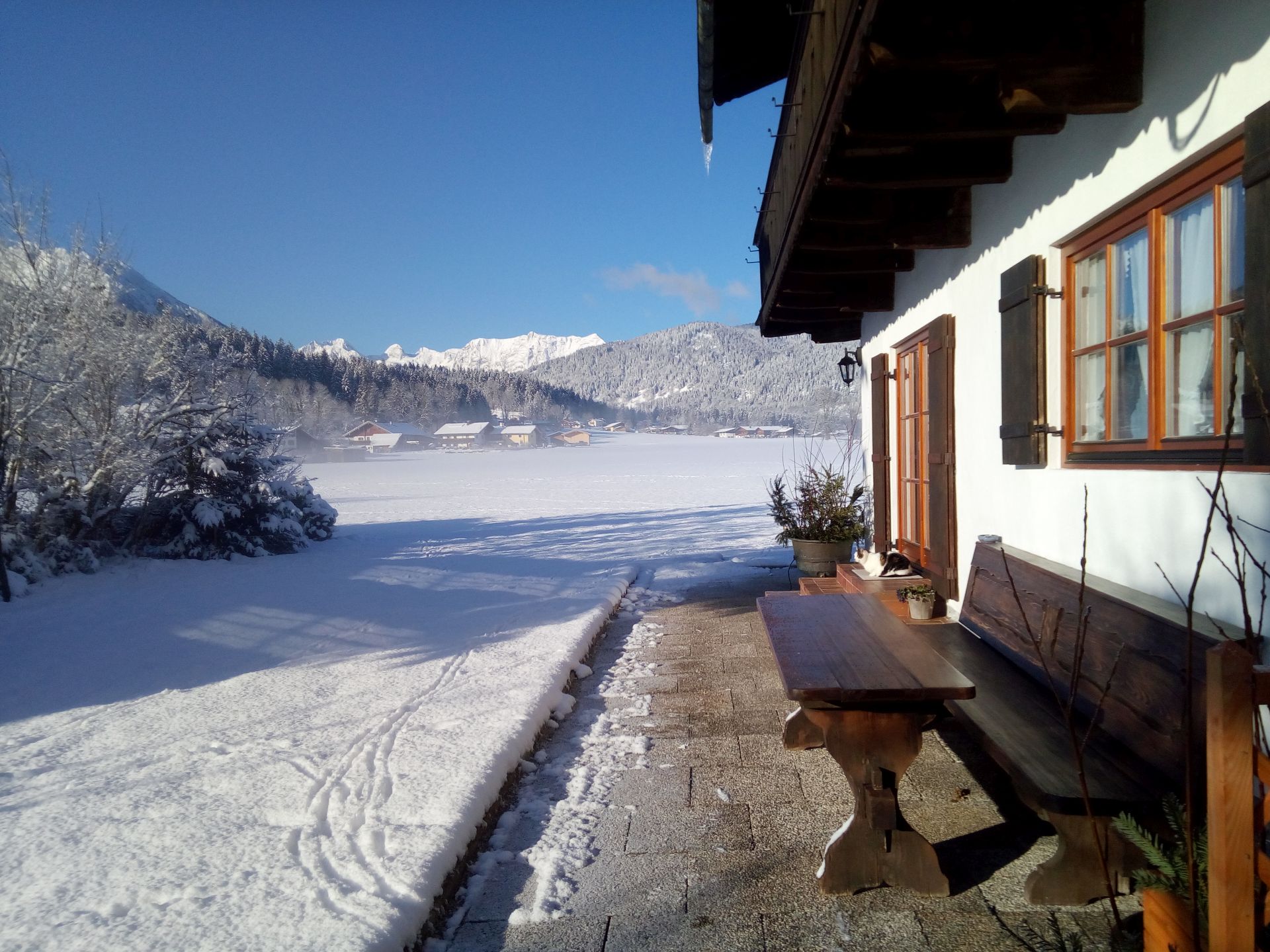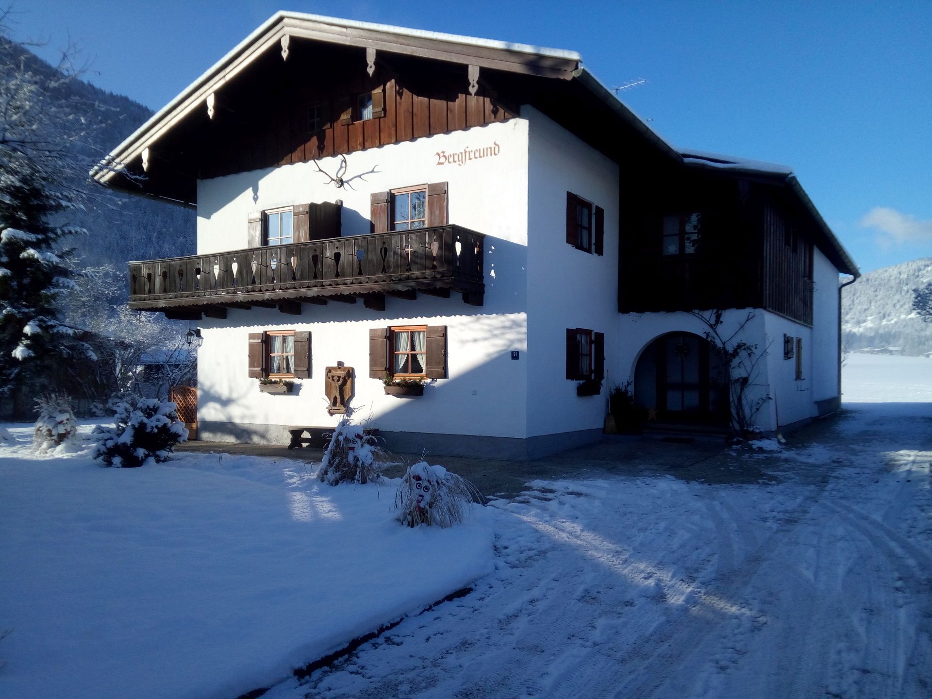 Herzlich Willkommen in Schönau a. Königssee! Das Haus Bergfreund befindet sich in ruhiger, sonniger Lage im Herzen von Schönau. Genießen Sie von der Terrasse aus den herrlichen Panoramablick auf die Berchtesgadener Berge.In wenigen Minuten erreichen Sie beliebte Ausflugsziele wie den Königssee mit der Schifffahrt und die Talstation der Jennerbahn, welche im Sommer einen idealen Startpunkt für zahlreiche Wanderungen bietet. Ob für Jung oder Alt; von unserem Haus aus lassen sich auch wunderschöne Spaziergänge beginnen. Im Winter verläuft die Langlaufloipe direkt hinter dem Haus.In unmittelbarer Nähe befindet sich eine Bäckerei, weitere Einkaufsmöglichkeiten sind in wenigen Autominuten zu erreichen. Unseren Gästen steht kostenloses WLAN zur Verfügung.