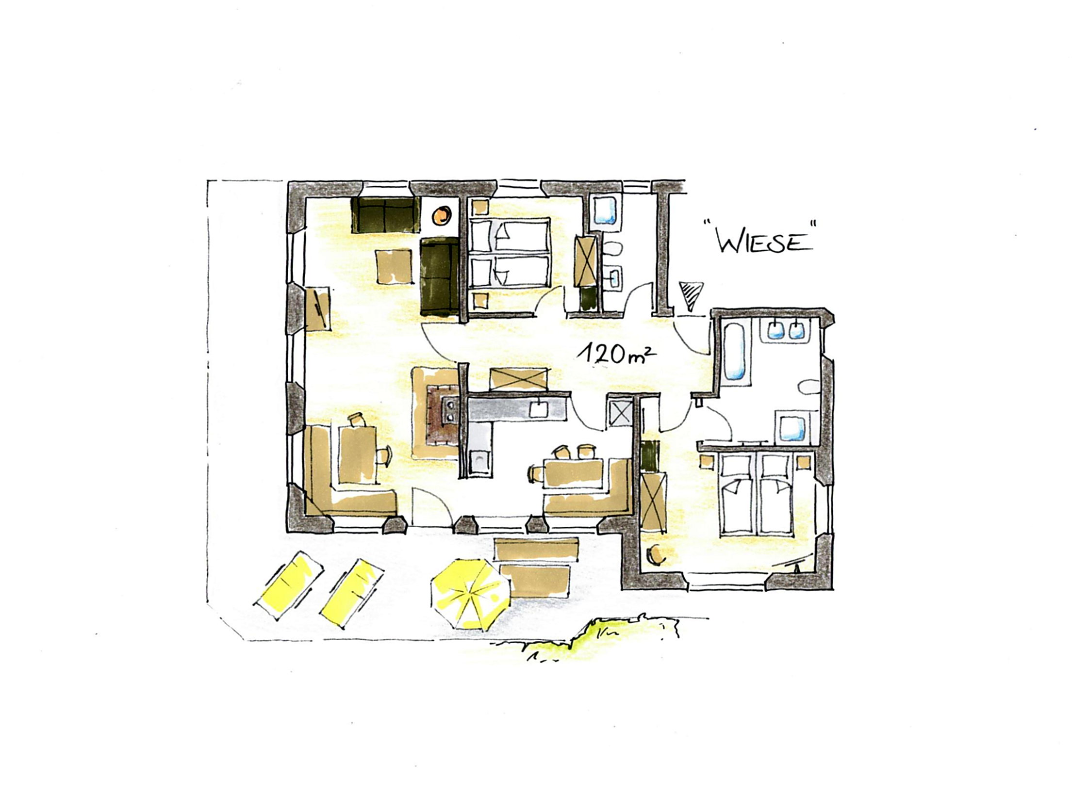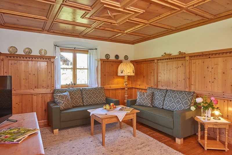 Das Chalet Menkenhof ist Teil des historischen Menkenhofes und befindet sich in direkter Nachbarschaft. Bereits vor 140 Jahren stand an derselben Stelle das Altenteil-Haus vom Menkenhof-Bauern. Es liegt wunderbar romantisch in einen Bauerngarten eingebettet und bietet zwei exklusive Ferienwohnungen auf zwei Etagen. Auf großzügig eingeteilten 120m² Wohnfläche befinden sich zwei Schlafzimmer mit Doppelbetten, zwei Badezimmer, eine vollausgestattete Küche mit Eckbank und ein Wohnbereich. In der 5-Sterne-Ferienwohnung Wiese erwartet sie eine gemütliche Bauernstube mit Kachelofen und Sitzbankerl und in der 5-Sterne-Ferienwohnung Sonne ein gemütliches Wohnzimmer mit gehacktem Sichtdachstuhl und einem Kachelofen mit Sitzbankerl für behagliche Stunden. Von dort gelangen sie auf die Terrasse bzw. den großzügig geschnittenen Balkon, die zum Frühstück am Morgen, zum Nachmittagstee oder einfach so zum Entspannen und Verweilen einladen. Genießen sie den herrlichen Blick auf weitläufige Wiesen und die wunderbare Bergwelt. Oder schnallen Sie sich ihre Langlaufski an und laufen einfach los! Wir haben beim Bau unseres Chalets besonders viel Wert auf gesundheitsbewusste Bauweise und natürliche Materialen gelegt. So sorgen u.a. Holzdielenböden und Ziegelwände mit Naturkalk für ein besonders angenehmes Wohnklima. Zur Abrundung eines erlebnisreichen Urlaubstages finden Sie im Untergeschoss eine finnische Sauna mit Ruhebereich(gegen Gebühr. Dort finden Sie auch eine Waschküche mit Waschmaschine, Trockner, Bügelbrett, Bügeleisen etc. In nur wenigen Schritten Entfernung befindet sich unser Blindauer Semmelhäuschen. Hier können Sie sich täglich mit frischem Gebäck und allem was Sie für Ihr Frühstück brauchen versorgen! Im Sommer ist unser Haus Ausgangspunkt vieler herrlicher Wanderungen und Bergtouren. Im Winter befinden sich romantische Winterwanderwege, Loipen, Naturrodelbahn, Sprungschanze, Snowtubing und Skilifte in unmittelbarer Nähe. Unser Haus bietet zu jeder Jahreszeit den idealen Ausgangspunkt für einen aktiven und erholsamen Urlaub. Haustiere sind nicht gestattet.