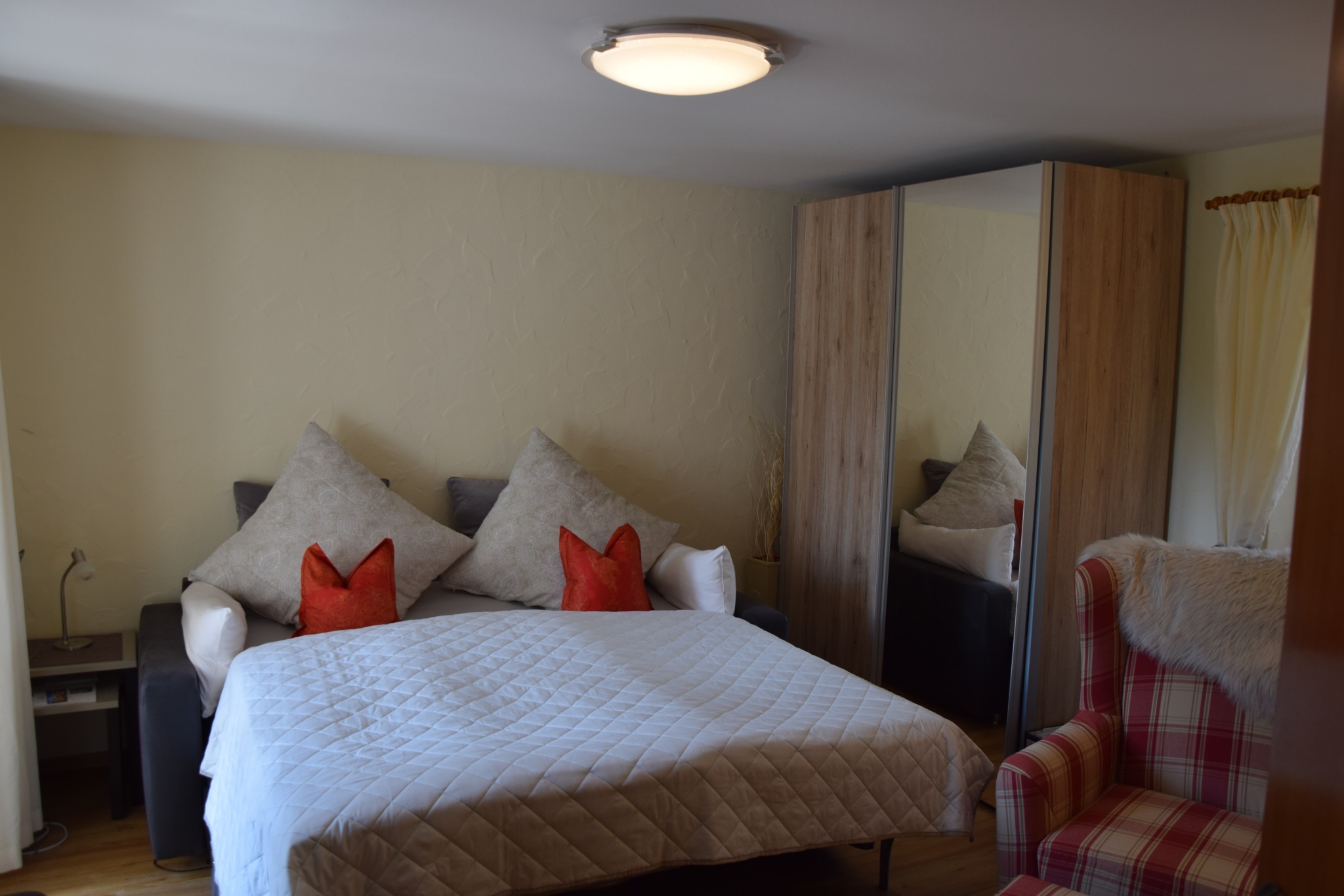 Die Ferienwohnung ist modern-gemütlich eingerichtet. Sie besteht aus einer voll ausgestatteten Küche mit Sitzecke, einem Wohnschlafzimmer, einem Sat-TV mit Teufel Soundanlage und WLAN, einem Badezimmer mit Dusche und WC, einem Balkon, einem eigenem Parkplatz. Eine gemütliche Sitzecke im Freien mit Sonnenschirm und Grillmöglichkeit (Holzkohle oder Gas).