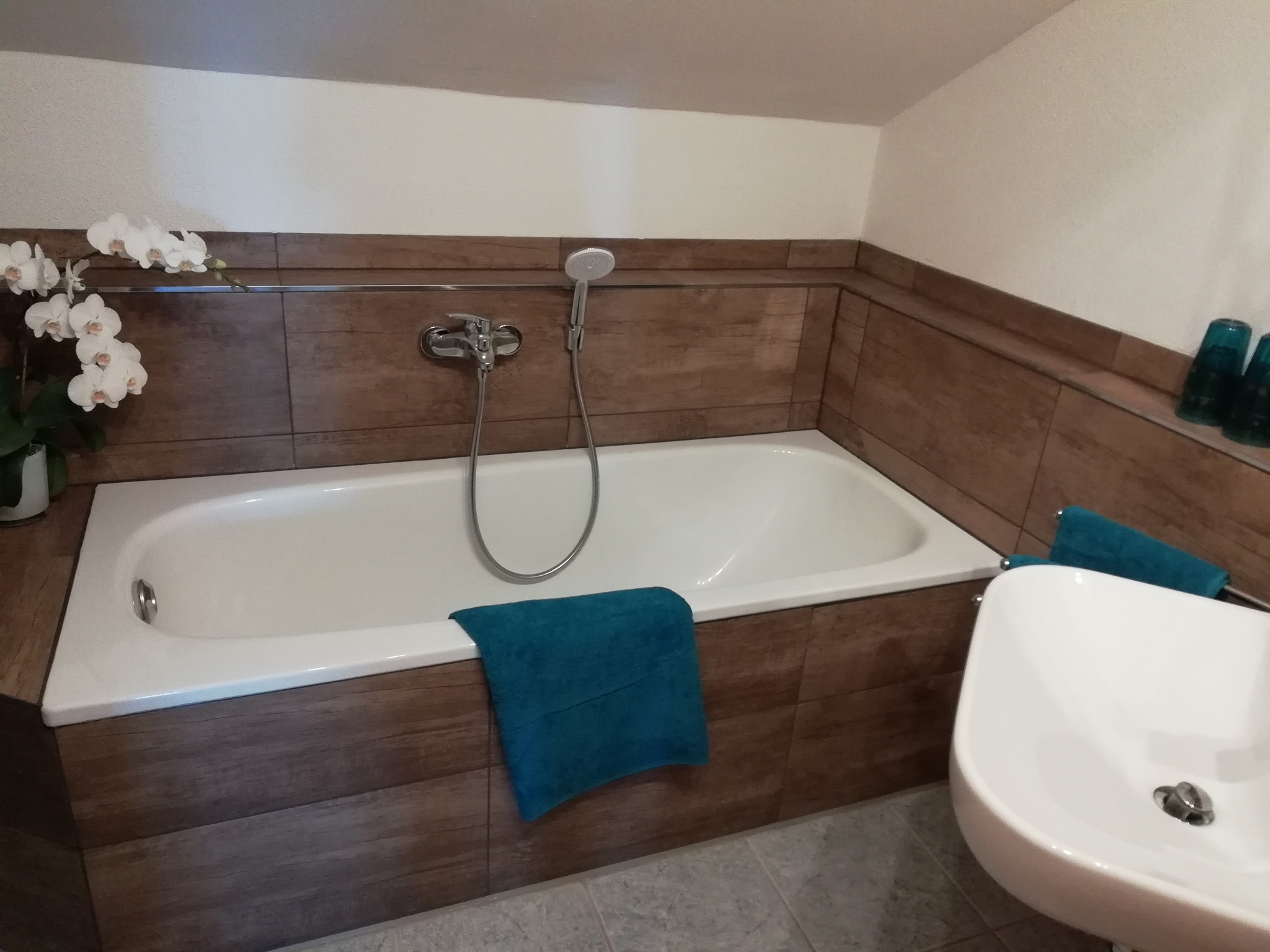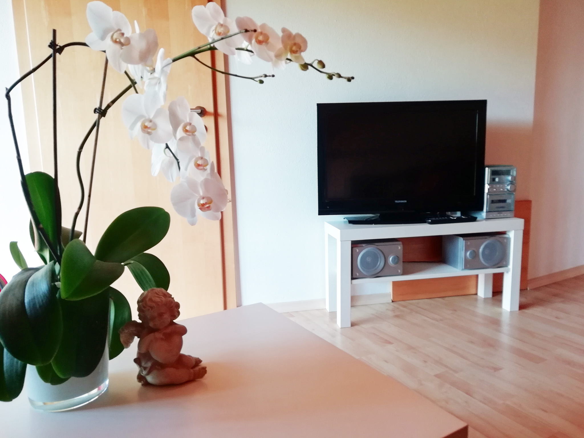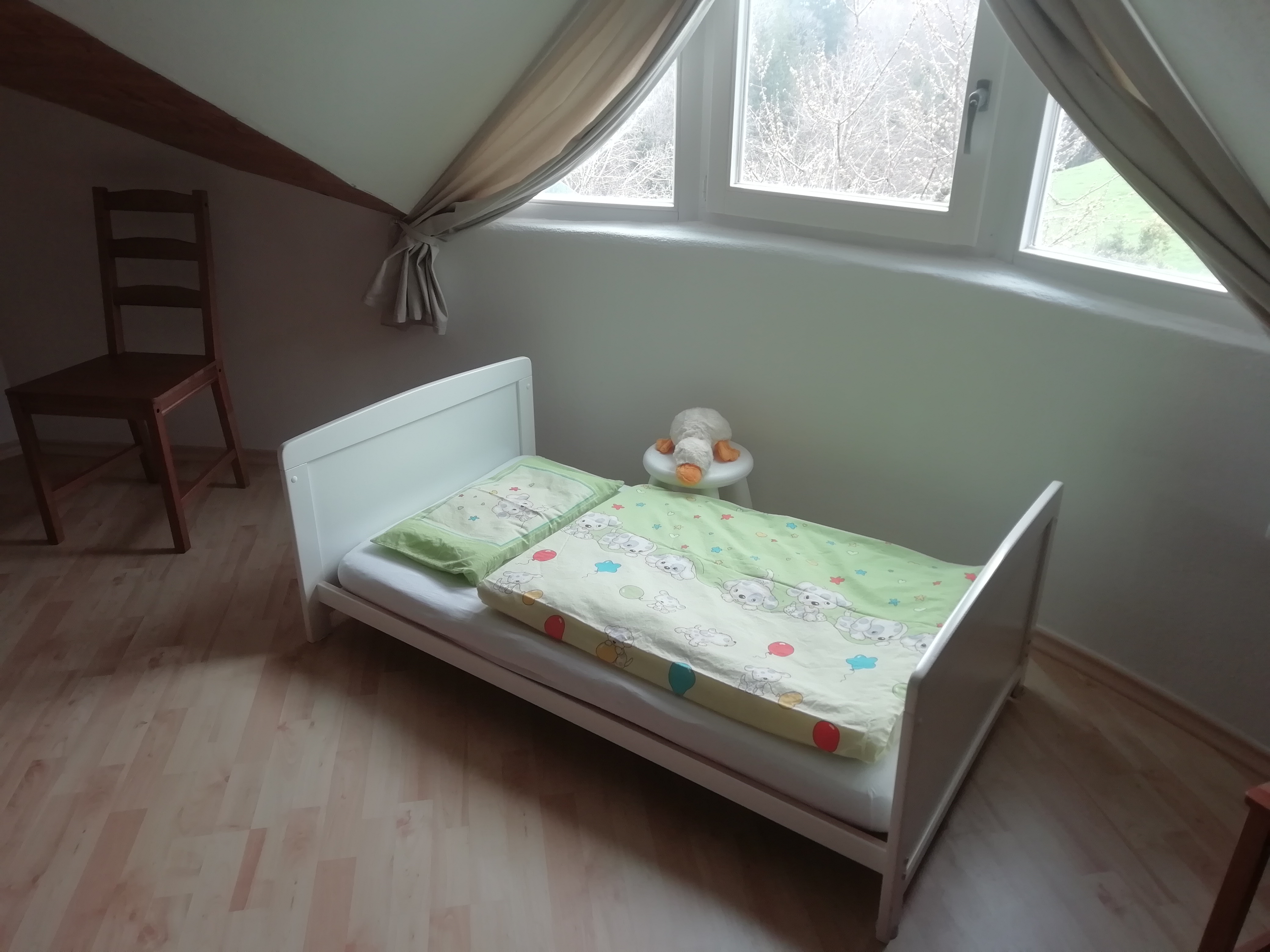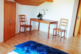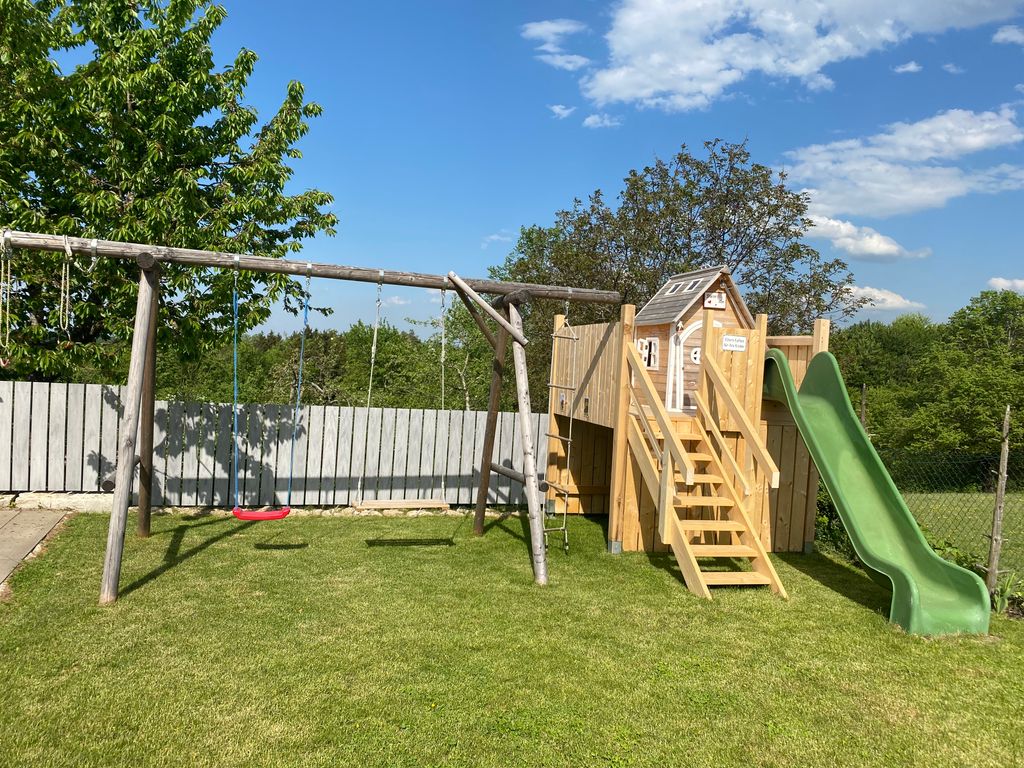 Zur neuen Ferienwohnung mit 95 qm gehört eine Küche, ein Wohnzimmer, zwei Schlafräume mit je einem Doppelbett, optional gibt es noch ein Kinderbett für Kinder bis 3 Jahren, Bad, extra WC, Abstellräume für Bügelutensilien und eine Waschmaschine, die kostenfrei für Sie zur Verfügung steht. Vom Balkon genießen Sie den unverbauten Blick ins Grüne. Im Außenbereich stehen Gartenmöbel mit Grillmöglichkeit extra für unsere Gäste sowie für die Kinder eine Schaukel, ein Sandkasten und ein Fußballtor. Ein Tischtennistisch, eine Einstellmöglichkeit für Fahrräder und ein Parkplatz direkt beim Haus sind ebenfalls vorhanden. Das Wlan nutzen Sie während Ihres Aufenthaltes natürlich kostenfrei. Wir freuen uns auf Sie!