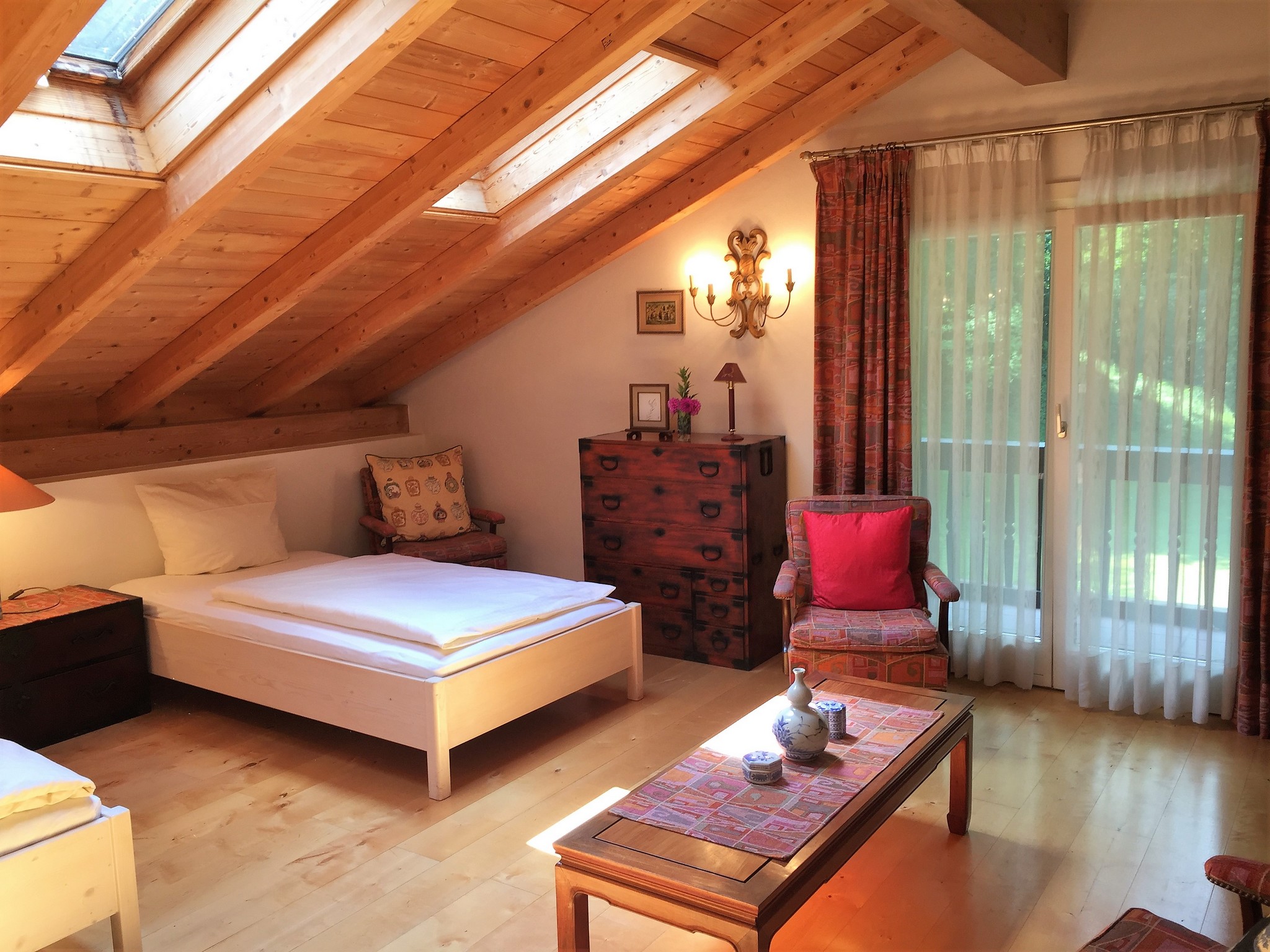 In dem Doppelzimmer Salome finden Sie Ruhe, Gemütlichkeit und natürlich einzigartiges Wohlfühlambiente. Das Zimmer verfügt über zwei Einzelbetten, bequeme Sitzmöglichkeiten und ein großes Marmorbad, das Profesoor Sawallisch ganz nach seinem Geschmack gestalten ließ. Ein herrlicher Blick in das idyllische Parkgelände lässt Sie auf dem Balkon zur Ruhe kommen. Die Teeküche kann jederzeit benutzt werden.