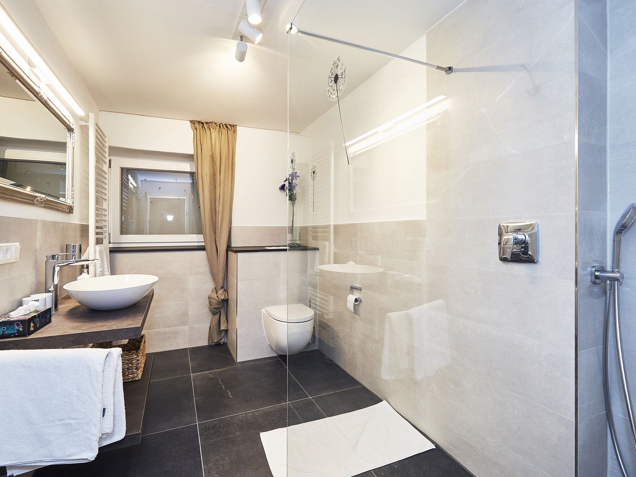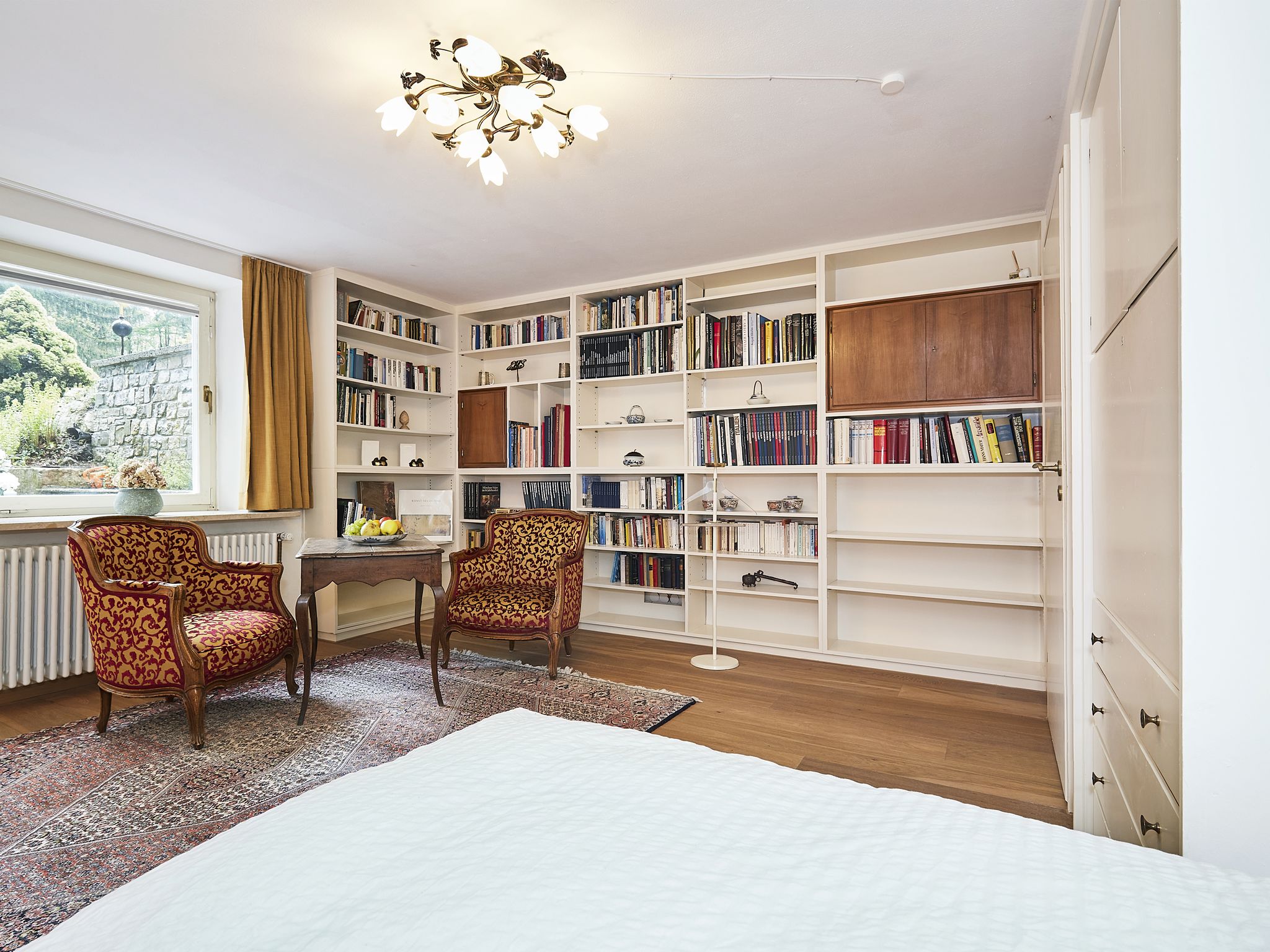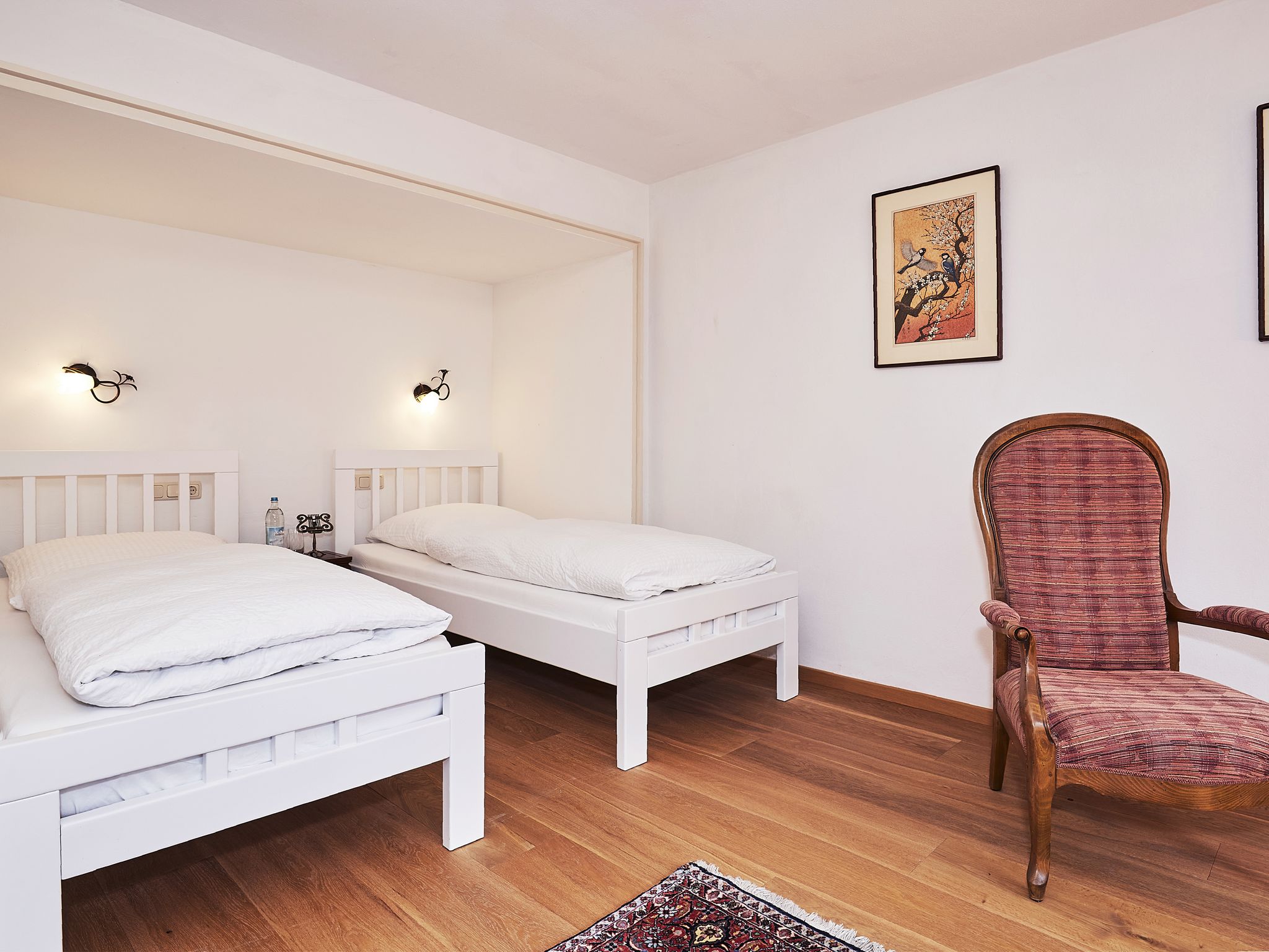 In einzigartiger Lage, inmitten eines großen Parks mit altem Baumbestand, schlafen Sie in einem großzügigen Zimmer, nachdem Sie abends auf der großen Terrasse den Abend bei Vogelgesang haben ausklingen lassen. Das Zimmer hat einen eigenen Eingang, ein großes Bad mit Badewanne und liegt südseitig, sodass sie hell und lichtdurchflutet ist.