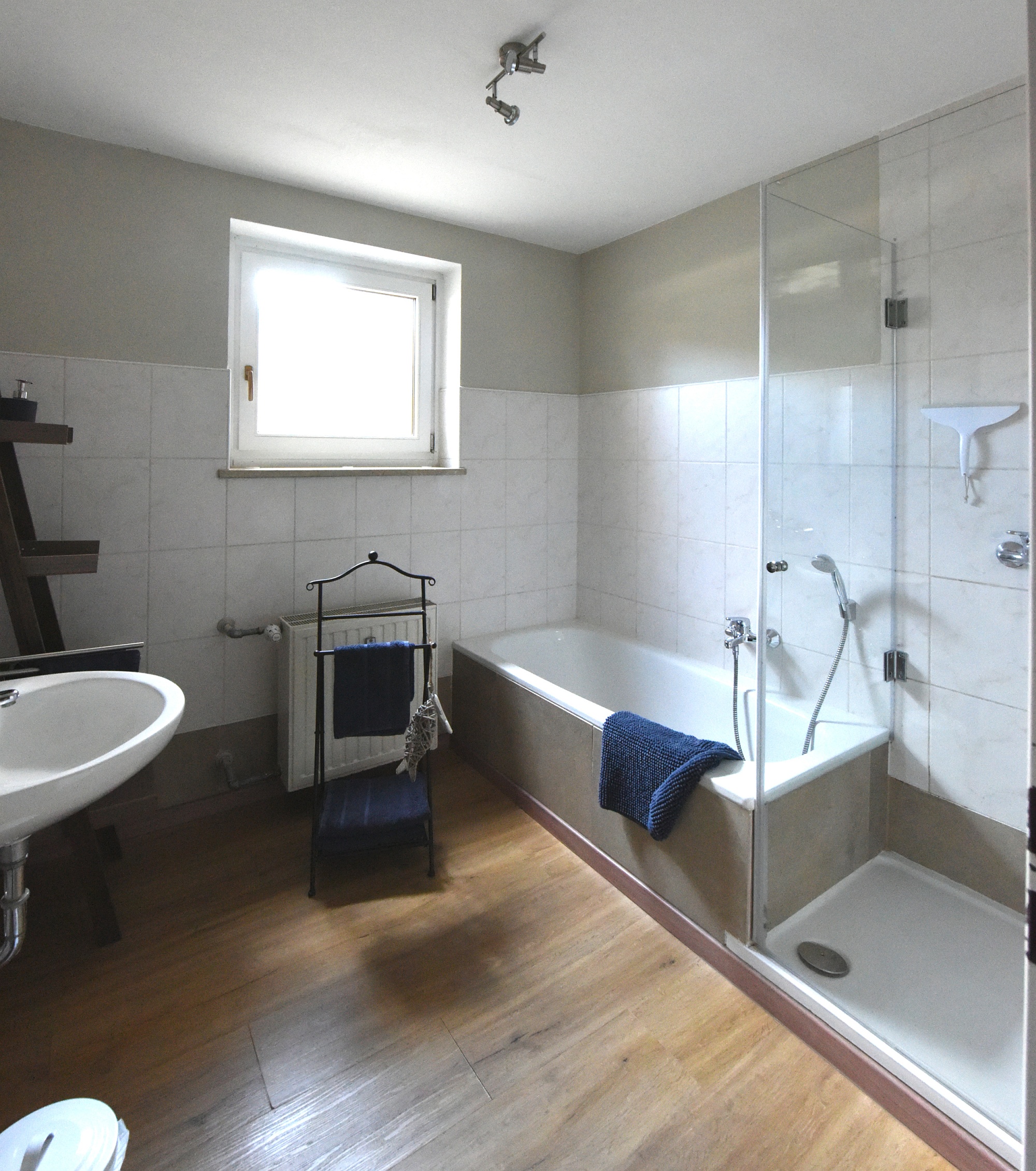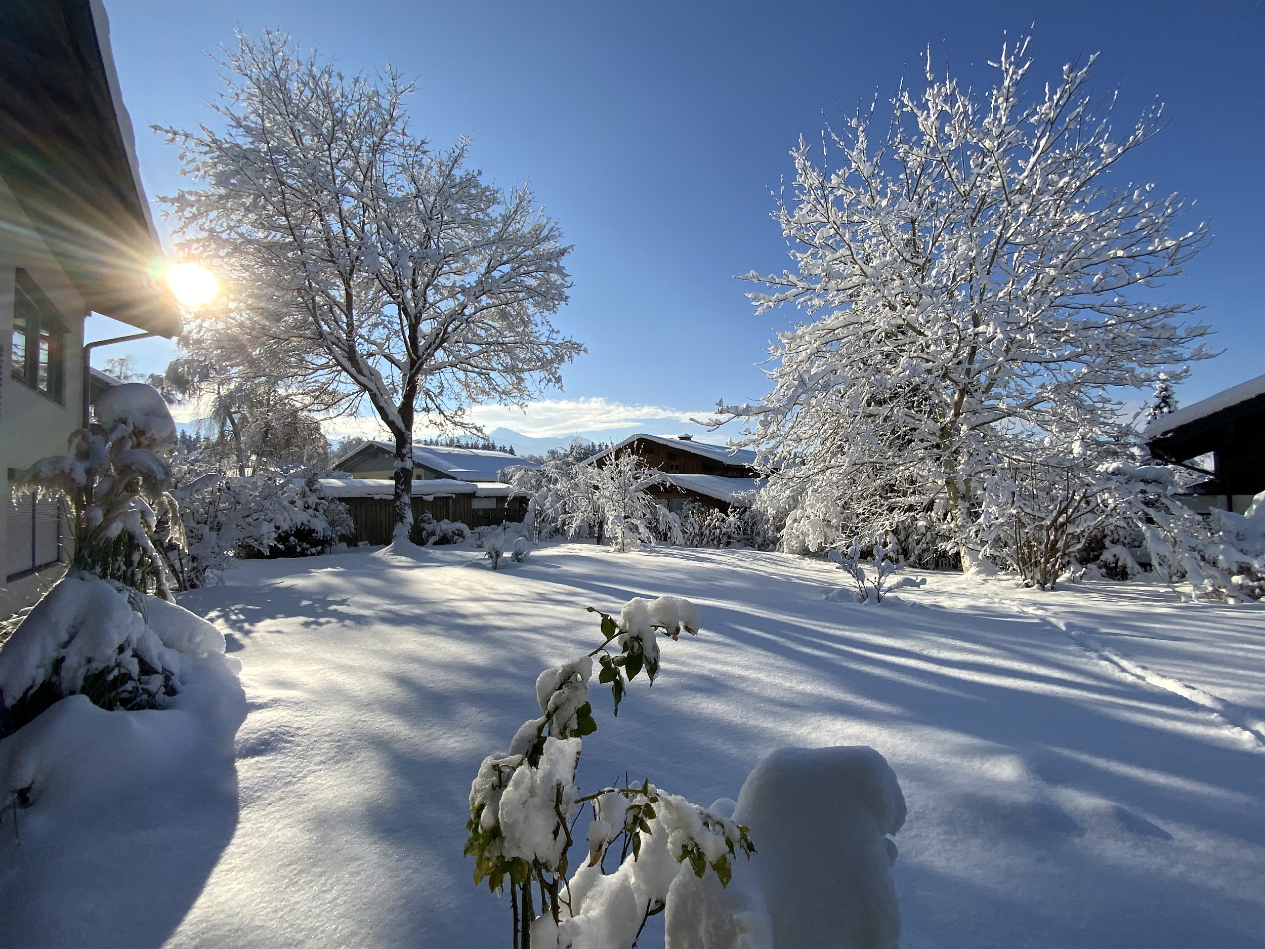 Herzlich willkommen in unserer schönen neuen Ferienwohnung! Die Wohnung wurde im Zuge der Gesamtsanierung des Hauses im Jahr 2018 neu renoviert und mit viel Liebe zum Detail ausgestattet. Sie befindet sich im Souterrain unseres privaten Wohnhauses mit direktem Zugang zum zauberhaften Garten. Von hier kann man auch einen Blick auf die Kampenwand und die umliegenden Berge erhaschen. Die Wohnung verfügt über zwei separate Schlafzimmer mit insgesamt 4 Betten, davon 1 Bett 1,40 m breit, ein Wohnzimmer mit TV, eine Küche mit komplett ausgestatteter Einbauküche und Essplatz, einem Bad mit Wanne und Dusche sowie einem separaten WC. Gerne stellen wir Bettwäsche und Handtücher sowie einen Fön und ein Bügeleisen zur Verfügung. Selbstverständlich gibt es auch einen WLAN-Anschluss mit kostenfreiem Gästezugang im Haus.