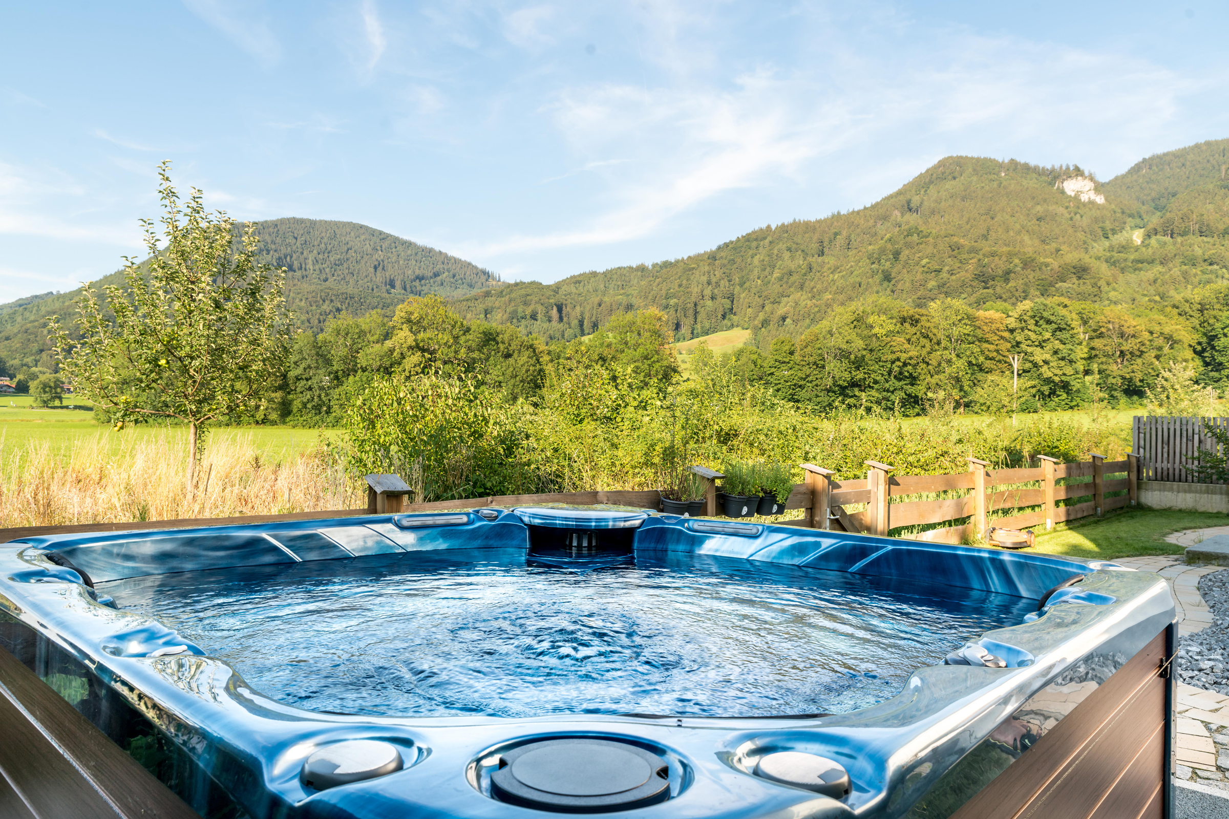 Freistehendes Luxus Ferienhaus (ca. 167 qm) in ruhiger Ortsrandlage, mit herrlichem Blick auf die umliegenden Berge. Es erwarten Sie drei bis vier Schlafzimmer, für 6-8 Personen und zwei Badezimmer, um Ihre Urlaubstage in einem großen, modernen und komfortablen Ferienhaus mit Kamin genießen zu können. Nach dem Wandern oder Skifahren lädt die Sauna mit Dusche für 4-5 Personen oder der beheizte Außenwhirlpool im Garten zum Entspannen ein. Der Treffpunkt im Keller ist auf jeden Fall unser Billardzimmer mit Darts, Smart-TV und Sound-System, Ledercouch, ein Sessel und zwei Hocker. Kurze Fußwege zur Talstation der Kampenwandbahn, zum Schloss Hohenaschau, zu den Gaststätten, zum Festhalle Hohenaschau und zur Bushaltestelle. Hunde und Haustiere dürfen nicht mitgebracht werden.