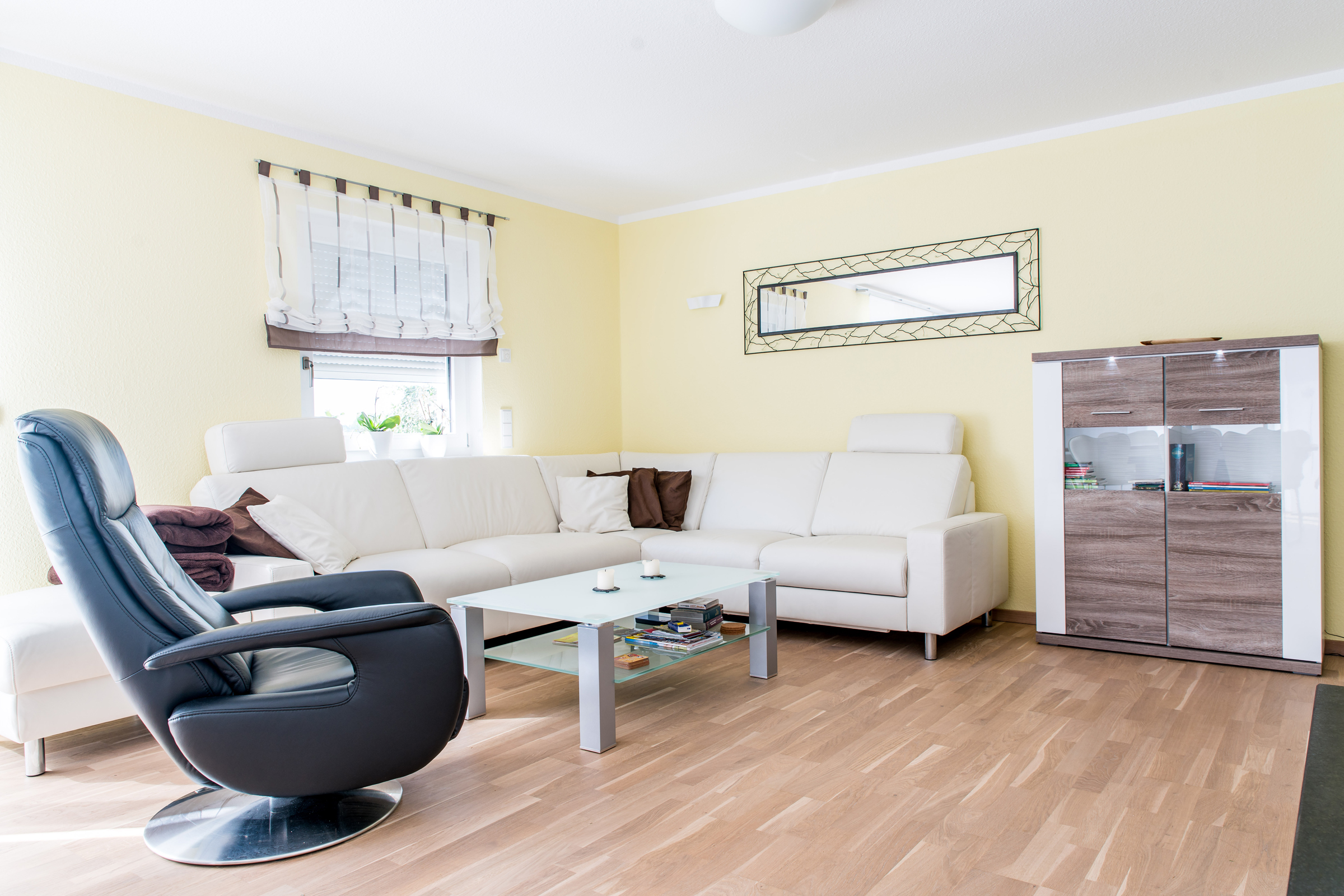 Freistehendes Luxus Nichtraucher Ferienhaus (ca. 165 qm) mit schöner großer Terrasse. Drei bis vier Schlafzimmer, für 6-8 Personen, drei Schlafzimmer mit Doppelbett und ein Arbeitszimmer mit Schlafsofa im Obergeschoss. Zwei Badezimmer: 1 x mit Dusch-/Badewanne/WC und 1 x mit Dusche/WC. Großer, modern und komfortabel eingerichteter Wohn-/Essbereich mit Kamin und einer offenen modernen, hellen Küche. Sauna für 4-5 Personen mit zusätzlicher Dusche und Waschbecken. Beheizter Außenwhirlpool in ruhiger Ortsrandlage. Im Untergeschoss steht ein gemütlicher Raum mit Poolbillard, Darts, Fernseher und Sitzecke zur Verfügung. Hunde und Haustiere dürfen nicht mitgebracht werden.