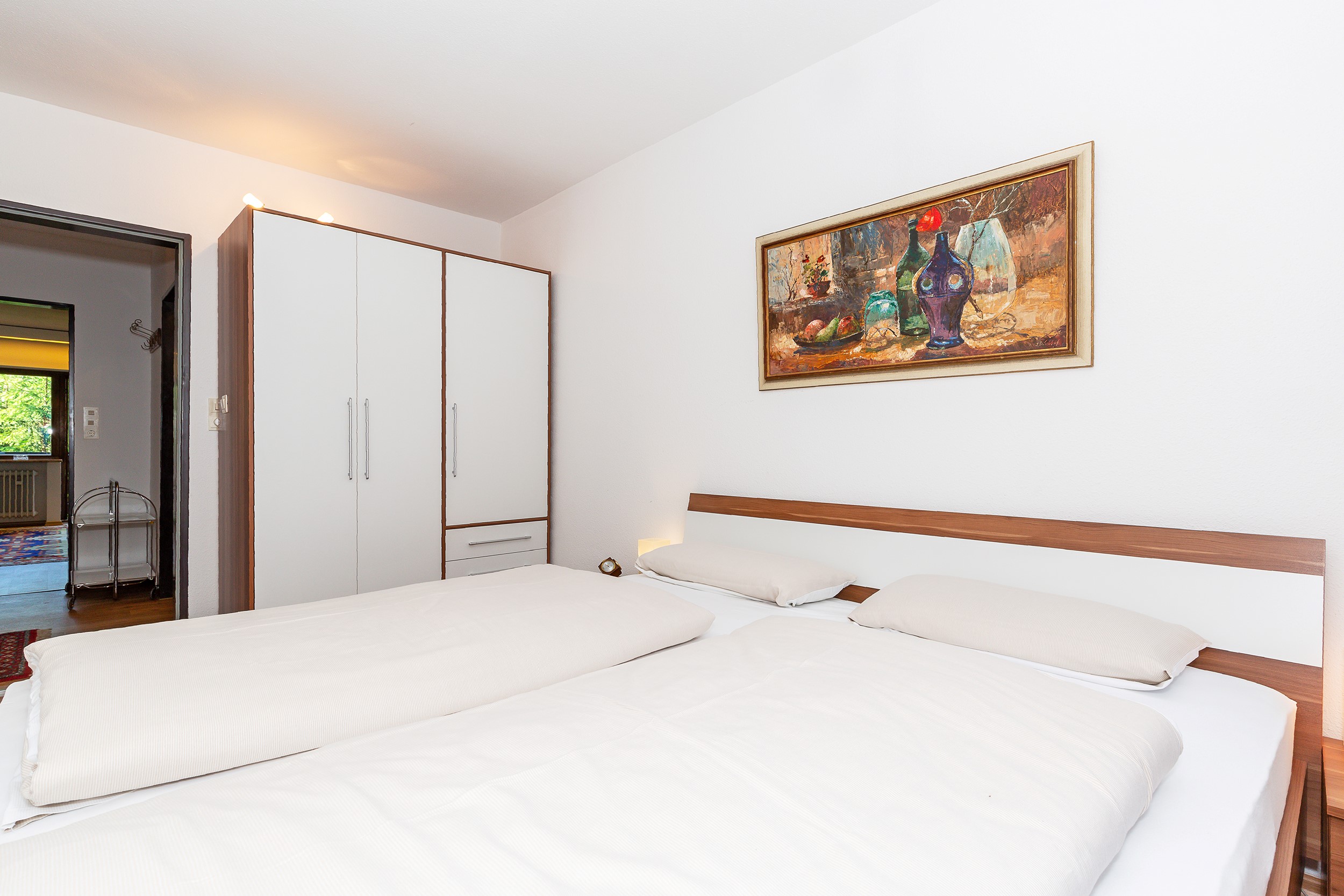 Die Wohnung bietet Ihnen zwei einladende Schlafzimmer, die jeweils mit einem komfortablen Doppelbett ausgestattet sind und einem großen Schrank, der ausreichend Stauraum für Ihr Gepäck und Ihre persönlichen Dinge bietet. Der großzügige Wohn- und Essbereich lädt zum Entspannen ein und ist lichtdurchflutet dank der großen Fenster und dem Zugang zum privaten Balkon. Im Wohnzimmer finden Sie eine große, moderne Couchgarnitur, die auch als Schlafcouch genutzt werden kann. Genießen Sie gesellige Abende am Glastisch oder am Esstisch, oder verweilen auf dem möblierten Balkon mit wunderschönem Blick in die Chiemgauer Bergwelt. Die Küche ist ausgestattet mit einem Kühlschrank mit Tiefkühlfach, 4-Plattenherd, Backofen, Kaffeemaschine, Wasserkocher, Toaster und alle notwendigen Kochutensilien, die man braucht. Das Badezimmer verfügt über eine Dusche, WC, Waschbecken, Spiegel und Fön.